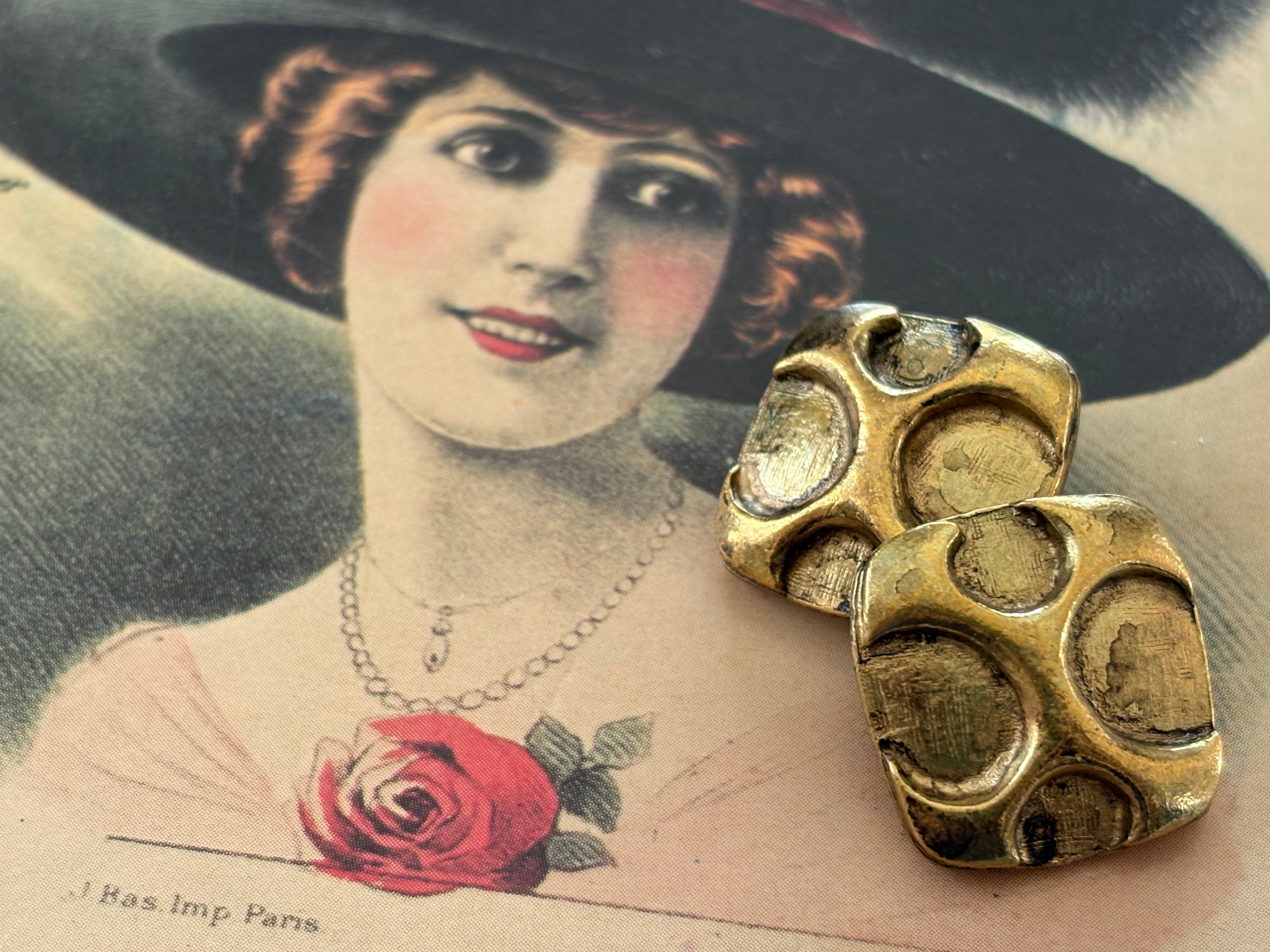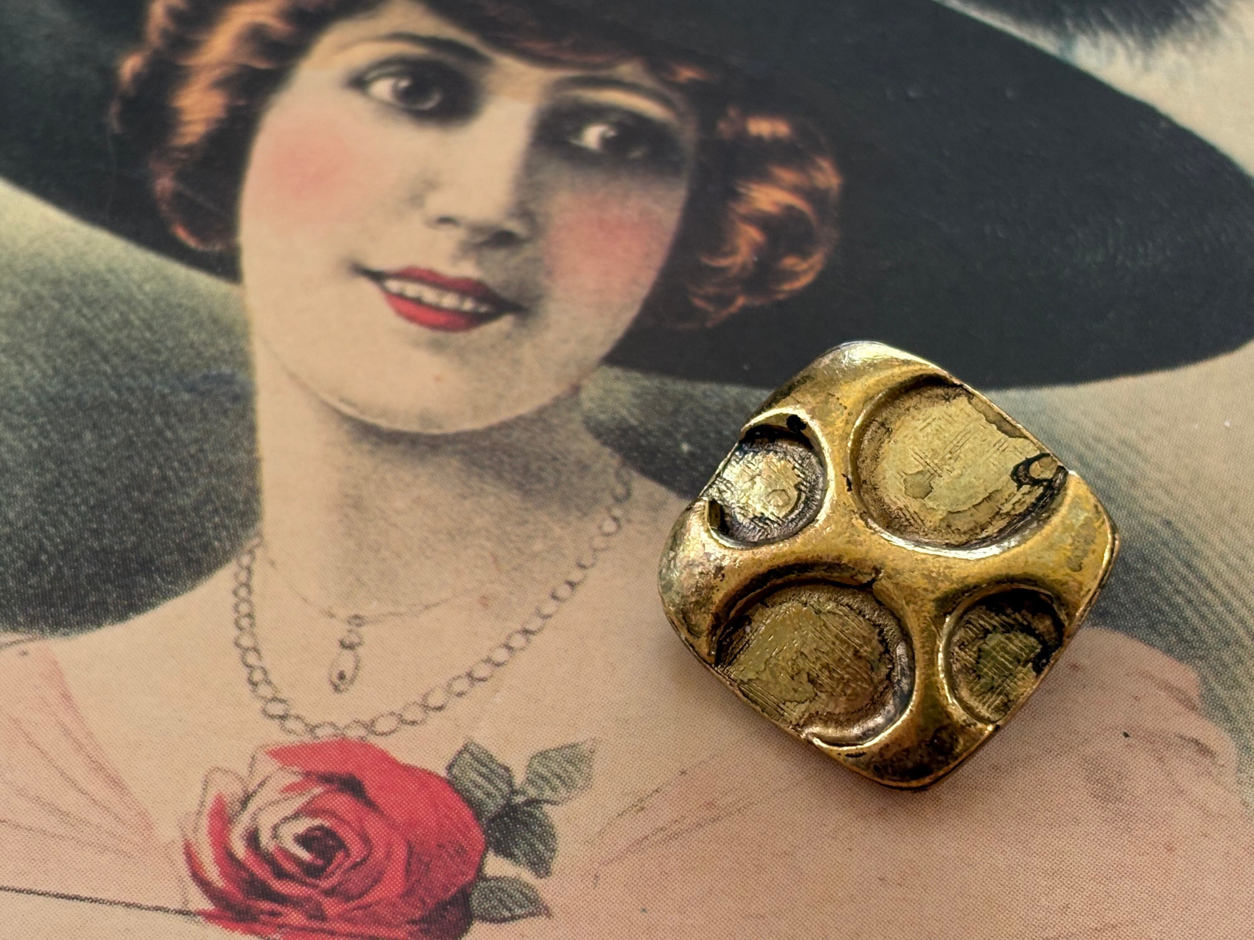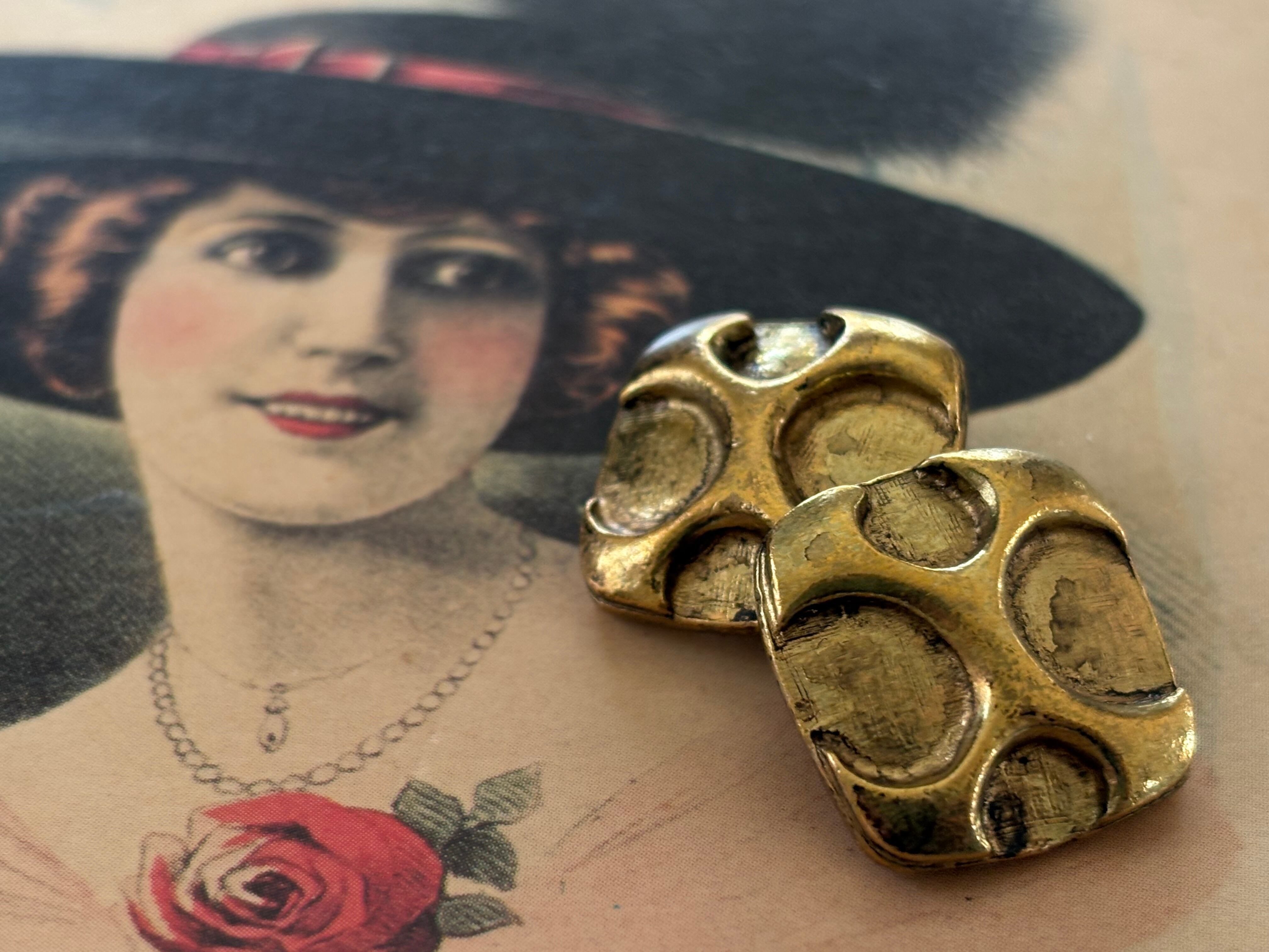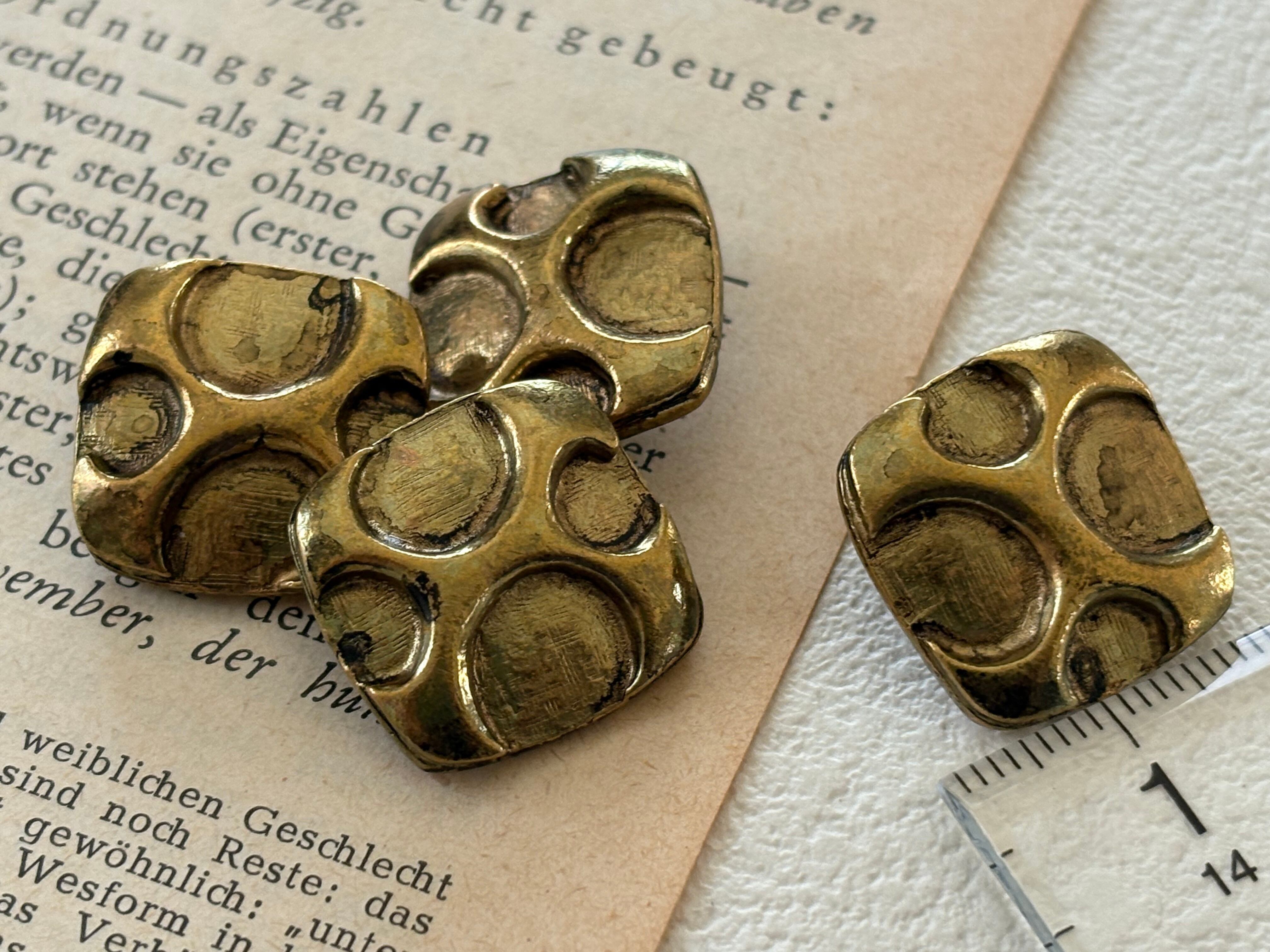 18mm Japanese ヴィンテージボタン スクウェア 変形ドット メタルボタン ゴールド アクセサリーパーツ