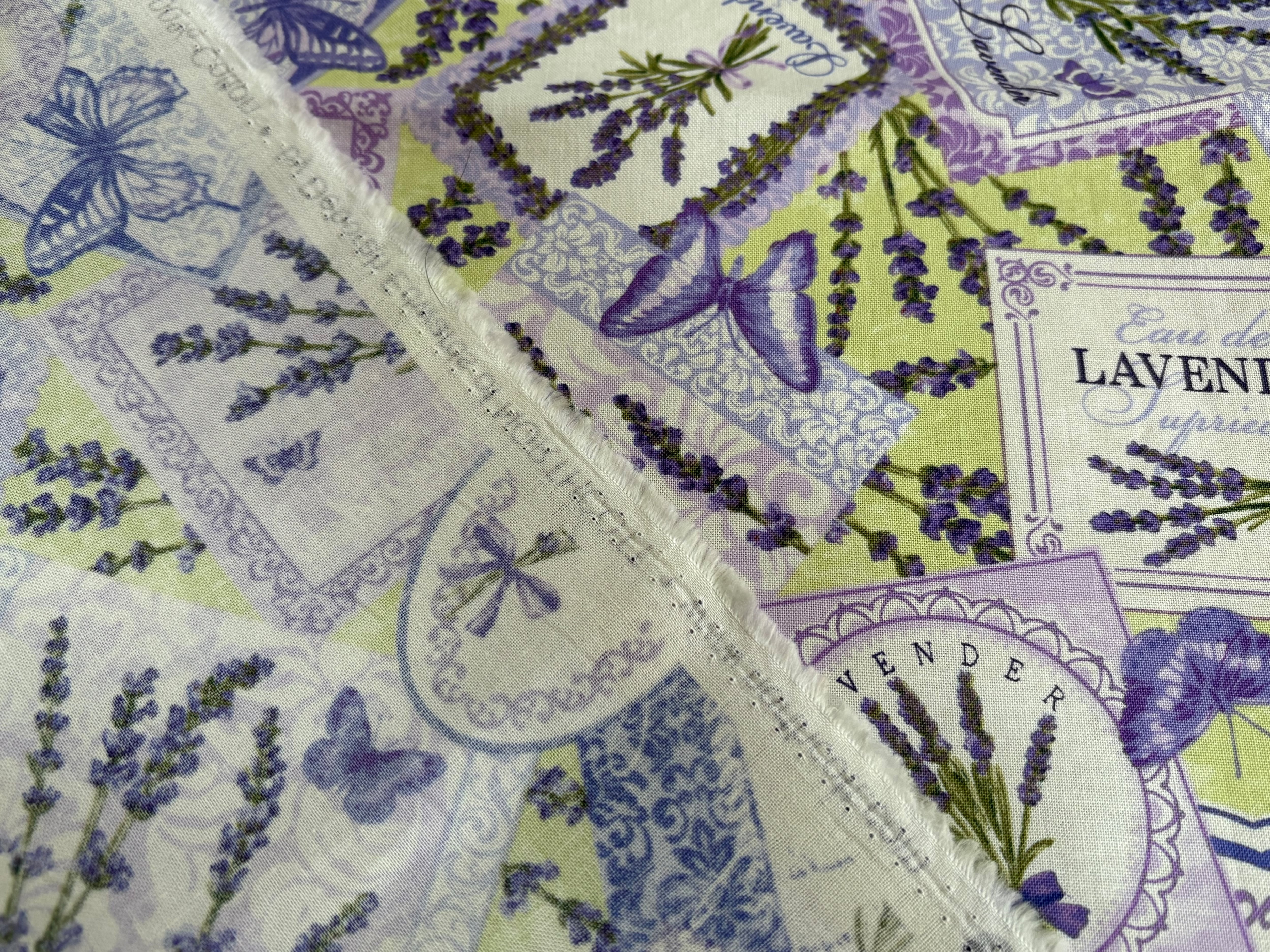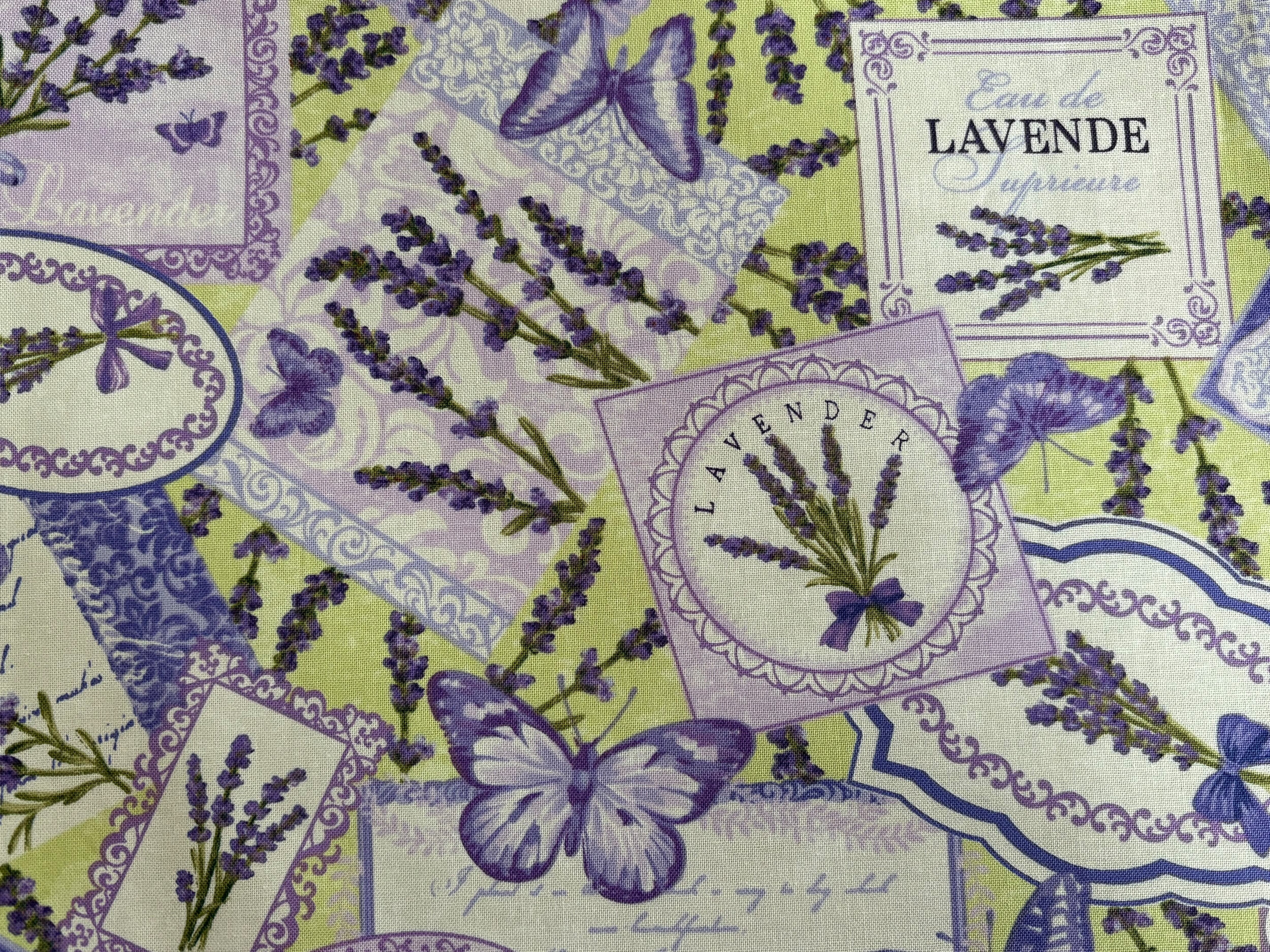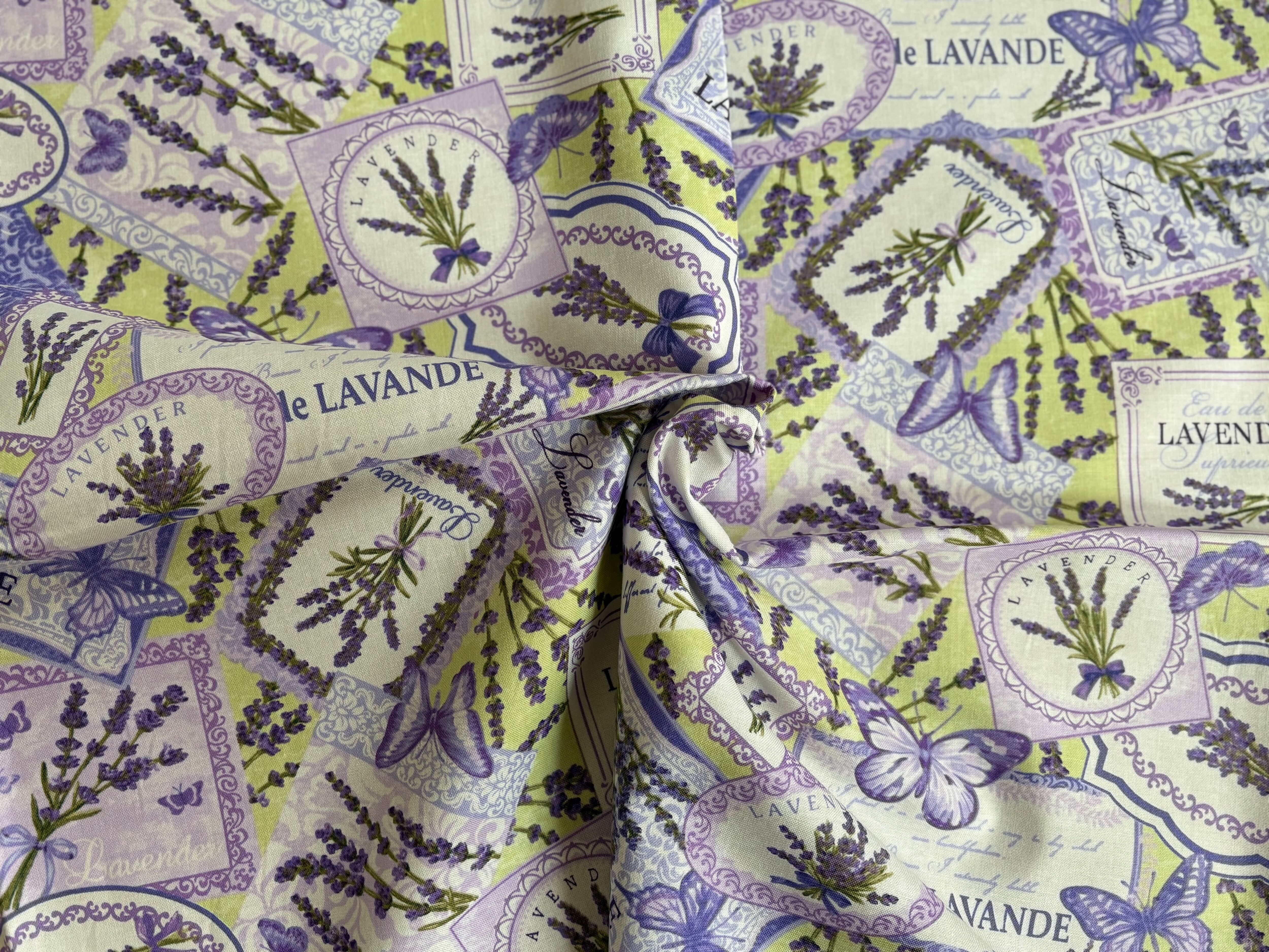 輸入コットンファブリック USA Lavender Market ラベンダーマーケット パピヨン 蝶々 コットン 薄手 カルトナージュ