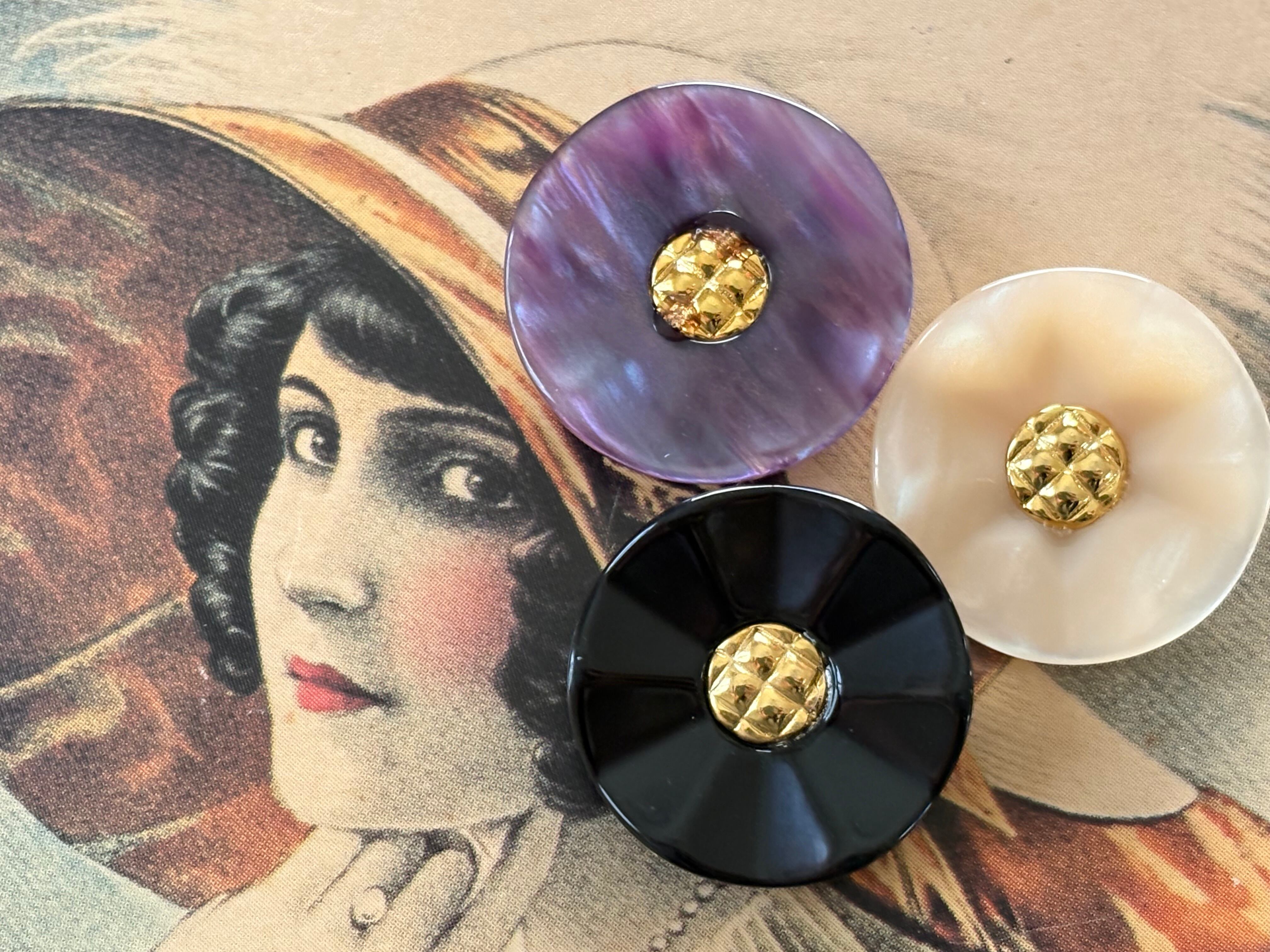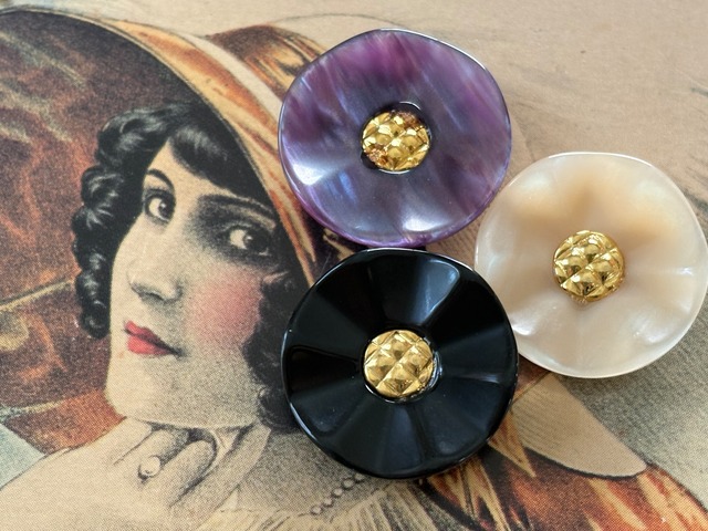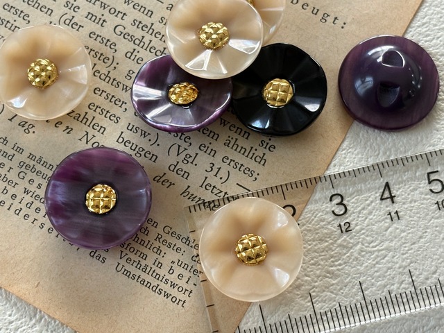 Japanese Vintage ヴィンテージボタン ベージュ/パープル/ブラック ×ゴールド 20mm アクセサリーパーツ 装飾材 カルトナージュ