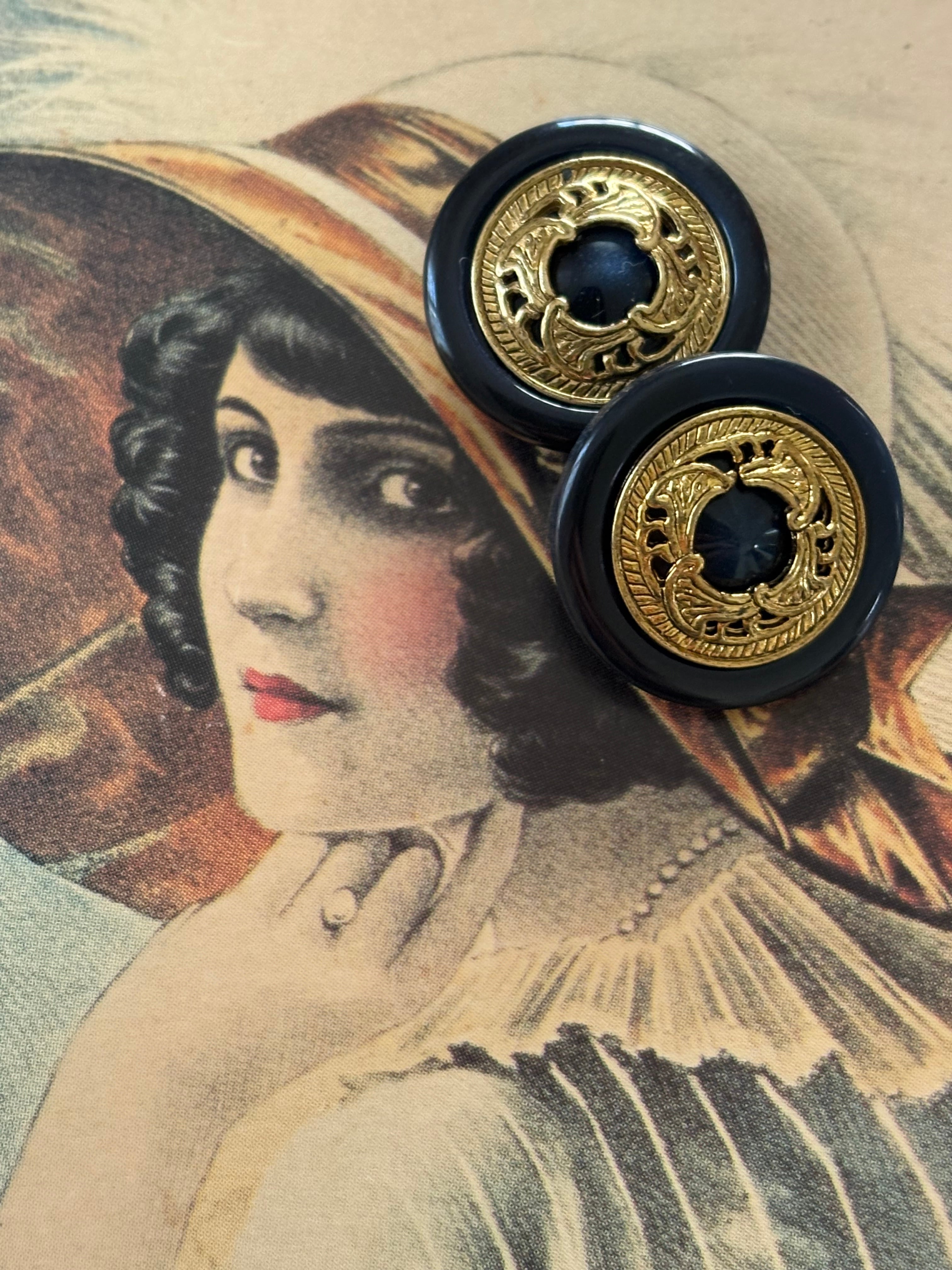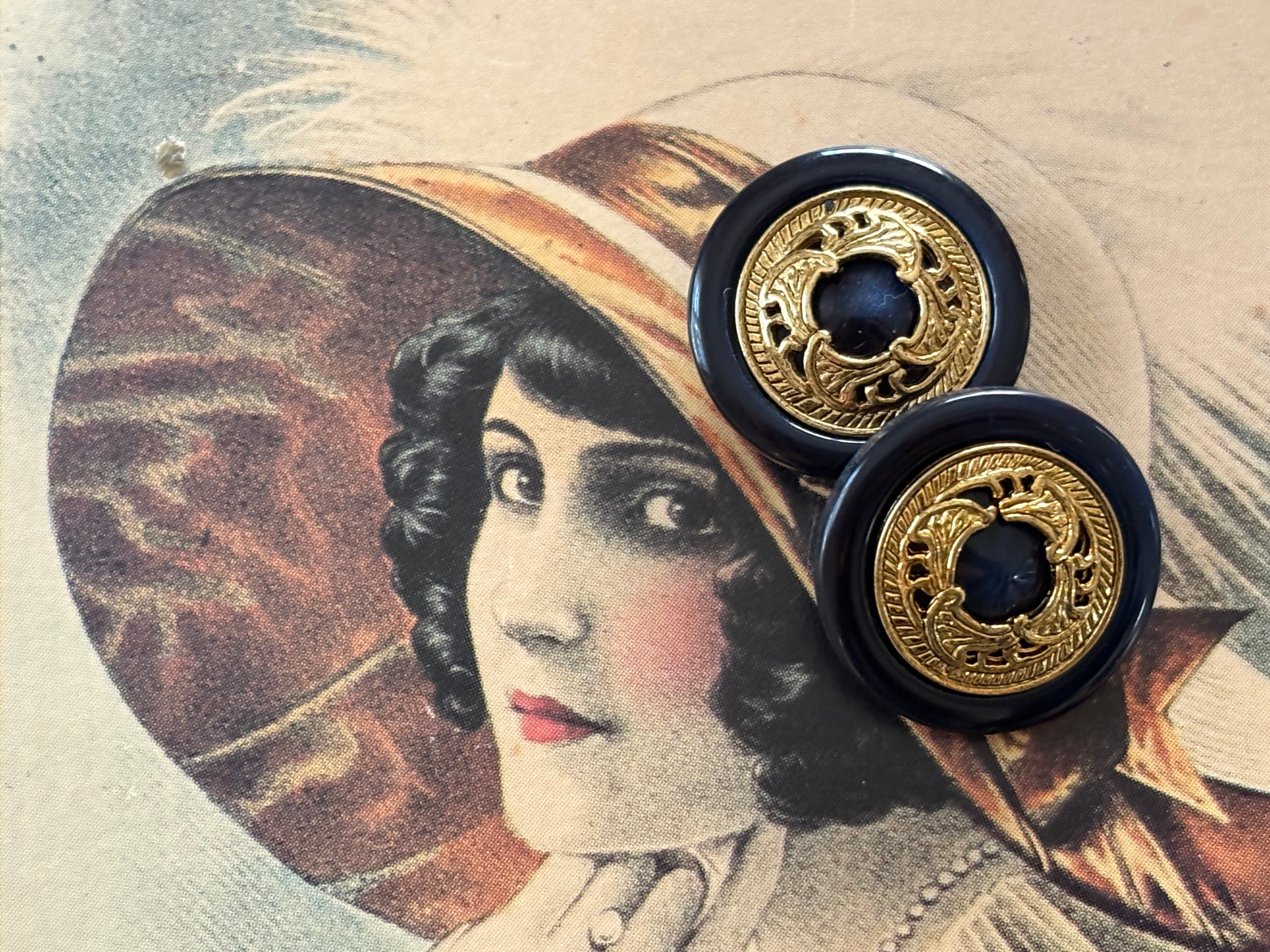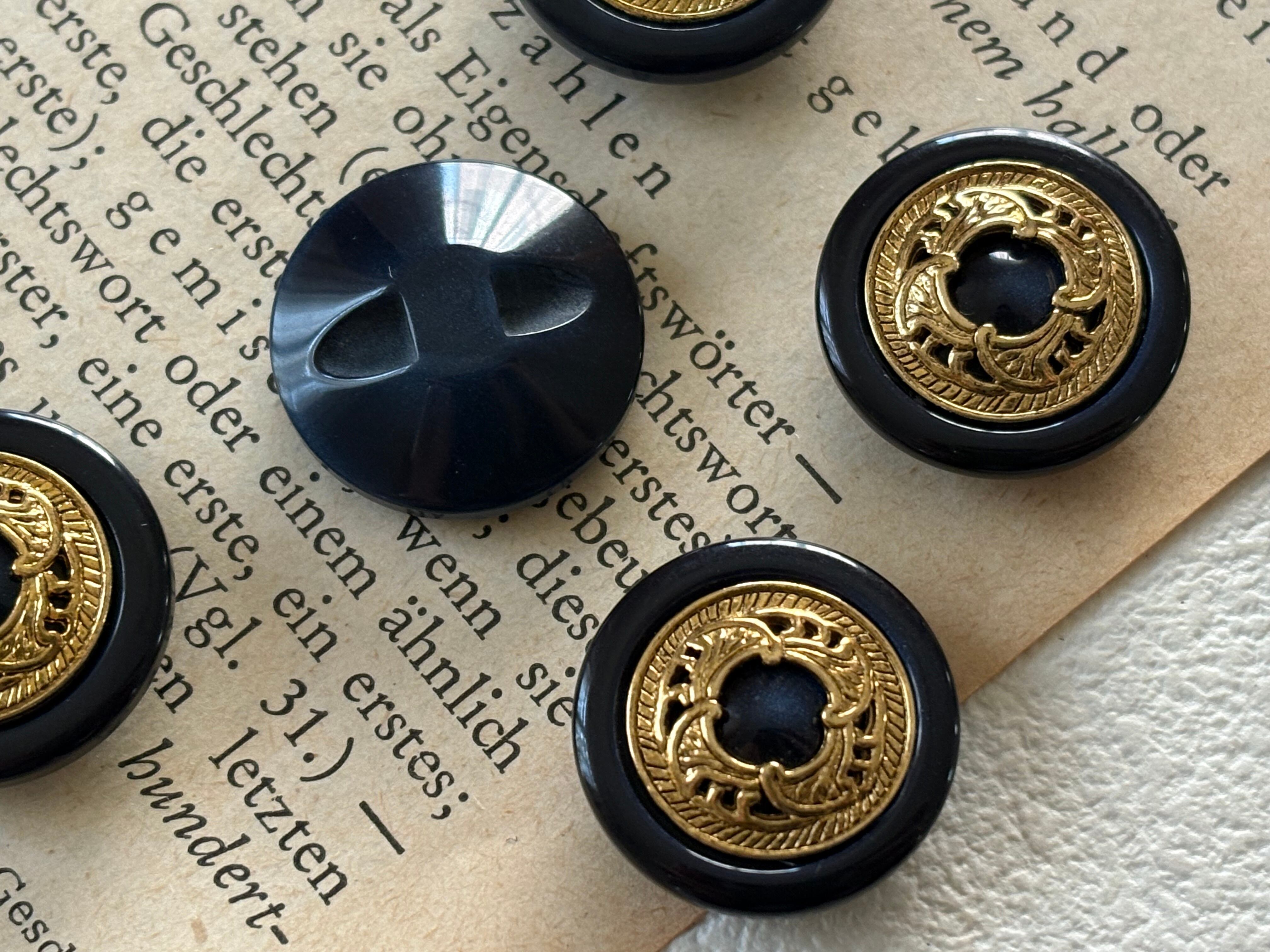 18mm Japanese Vintage ボタン ネイビー×ゴールド メダリオン レトロ アクセサリーパーツ カルトナージュ デコレーション