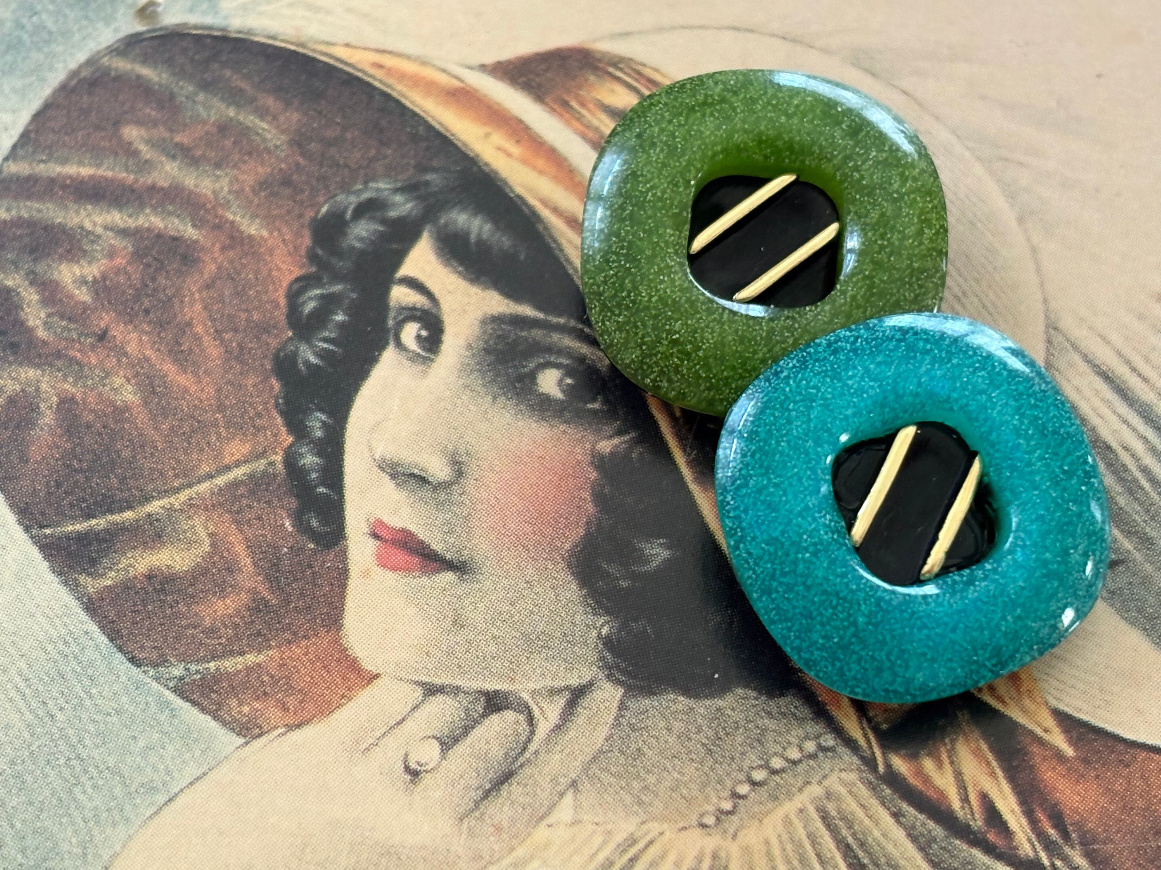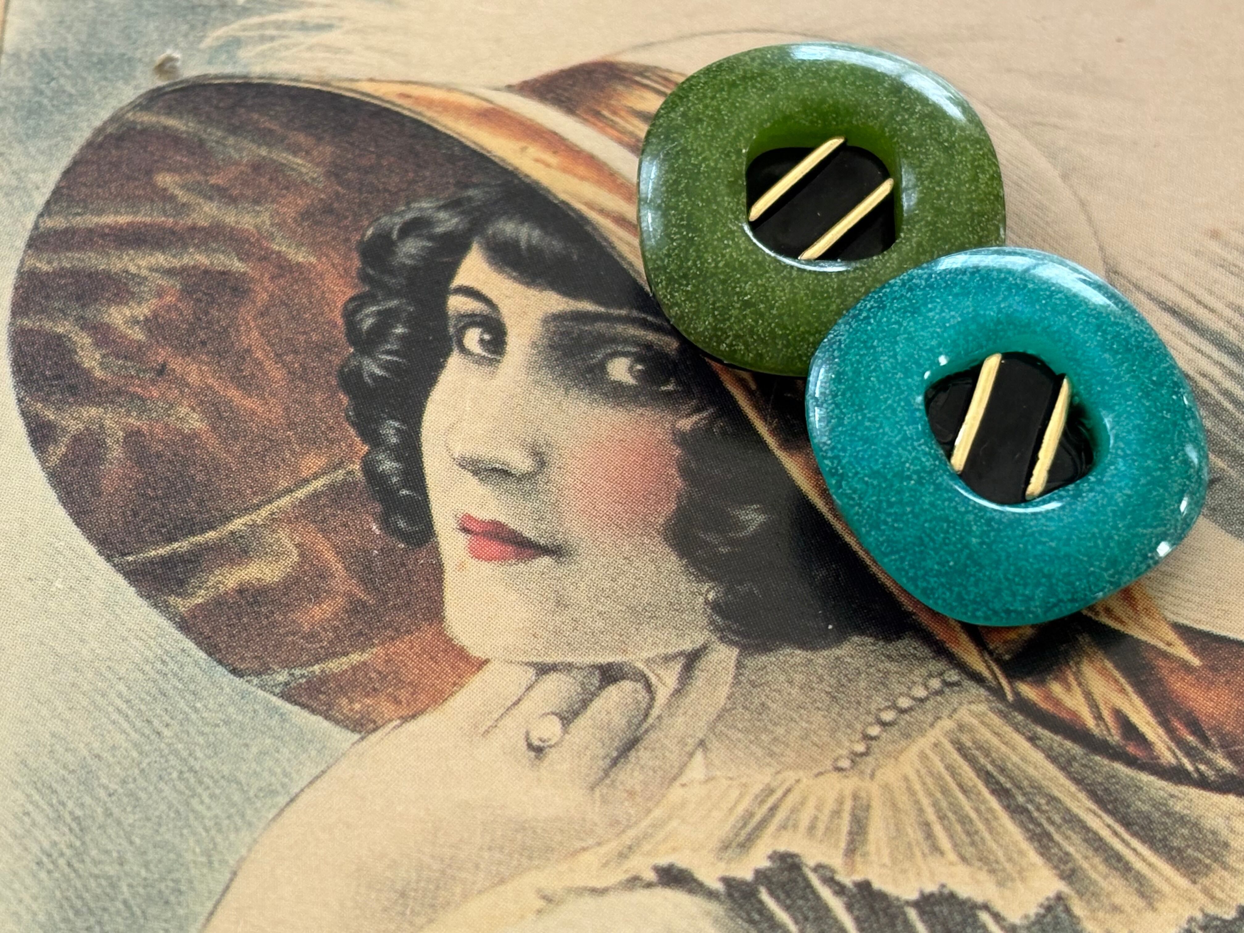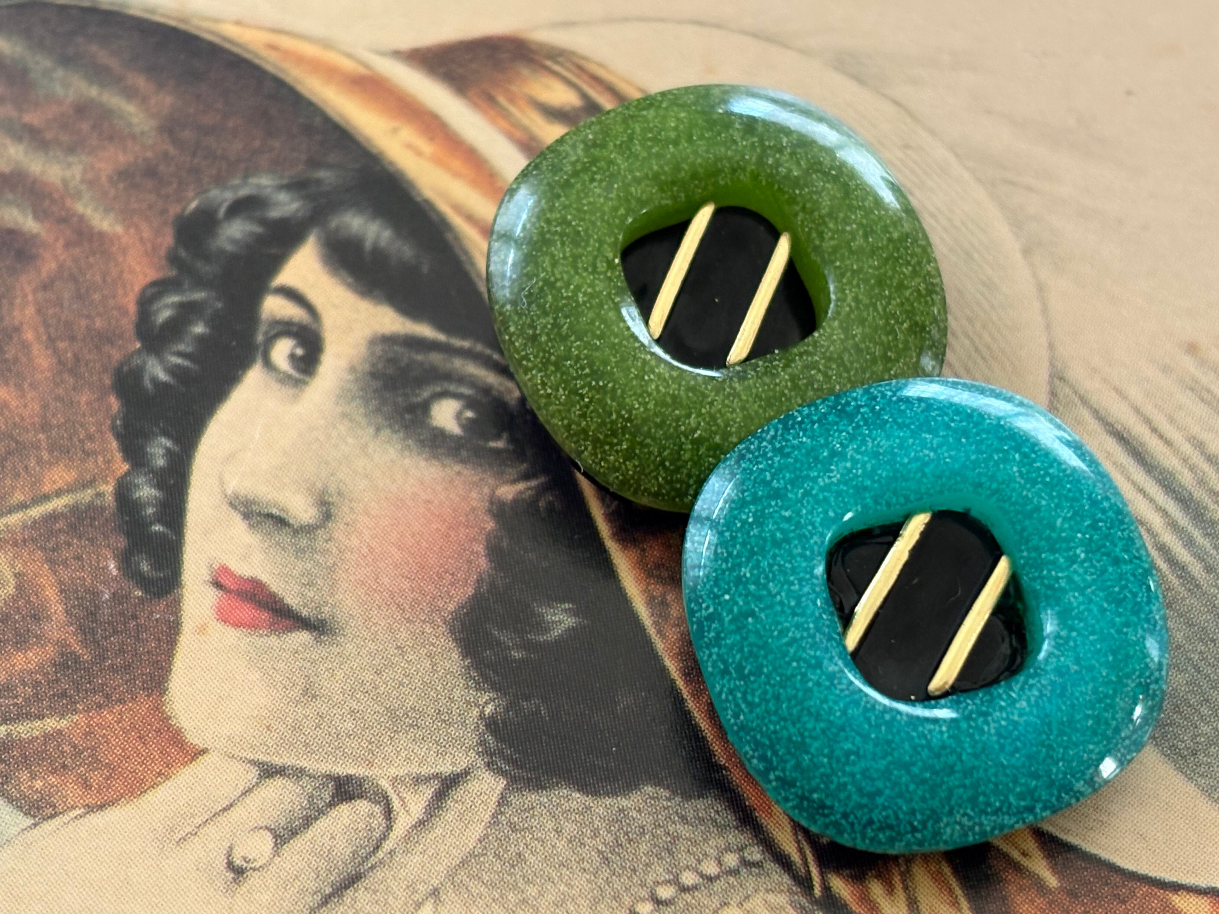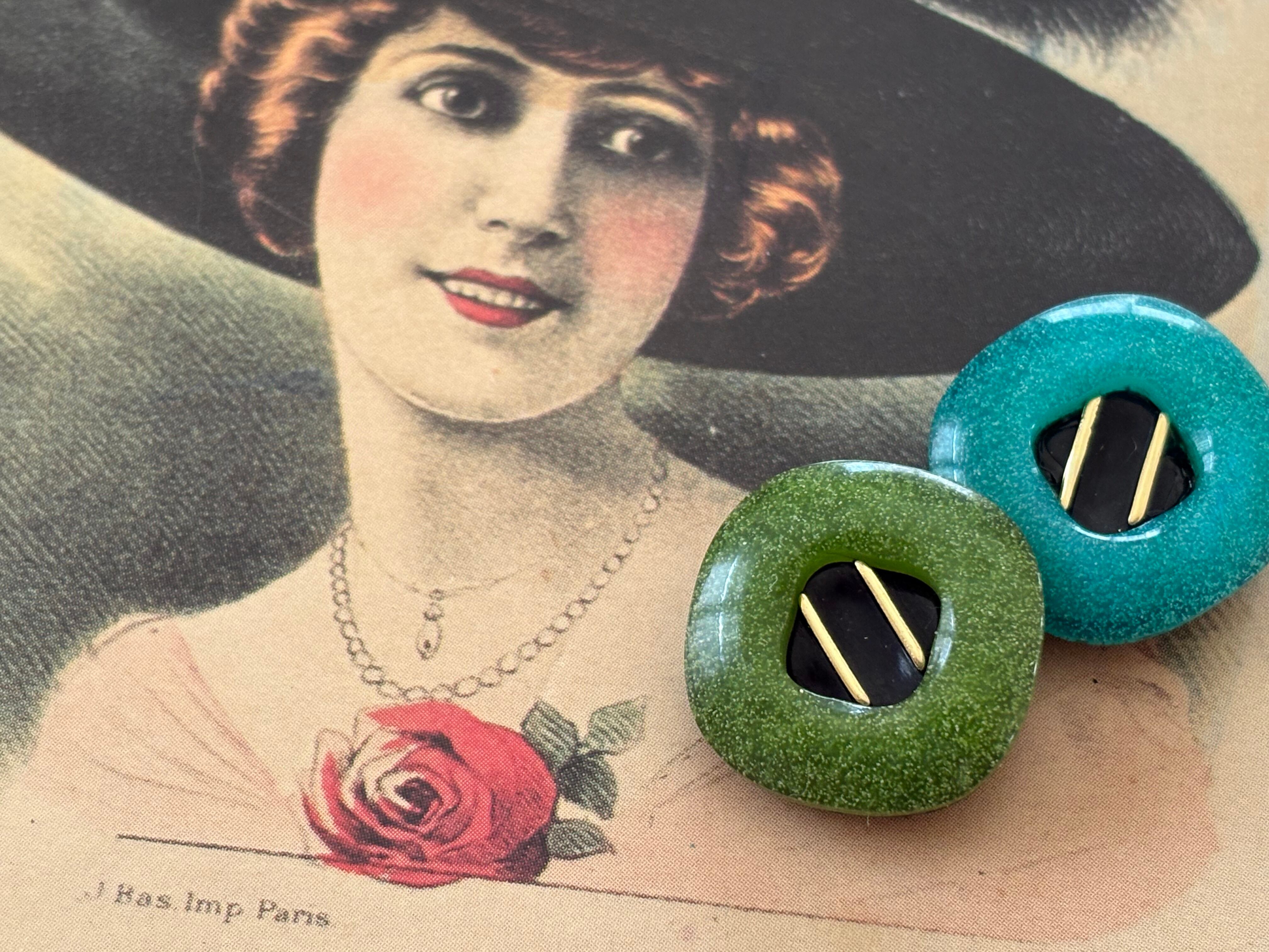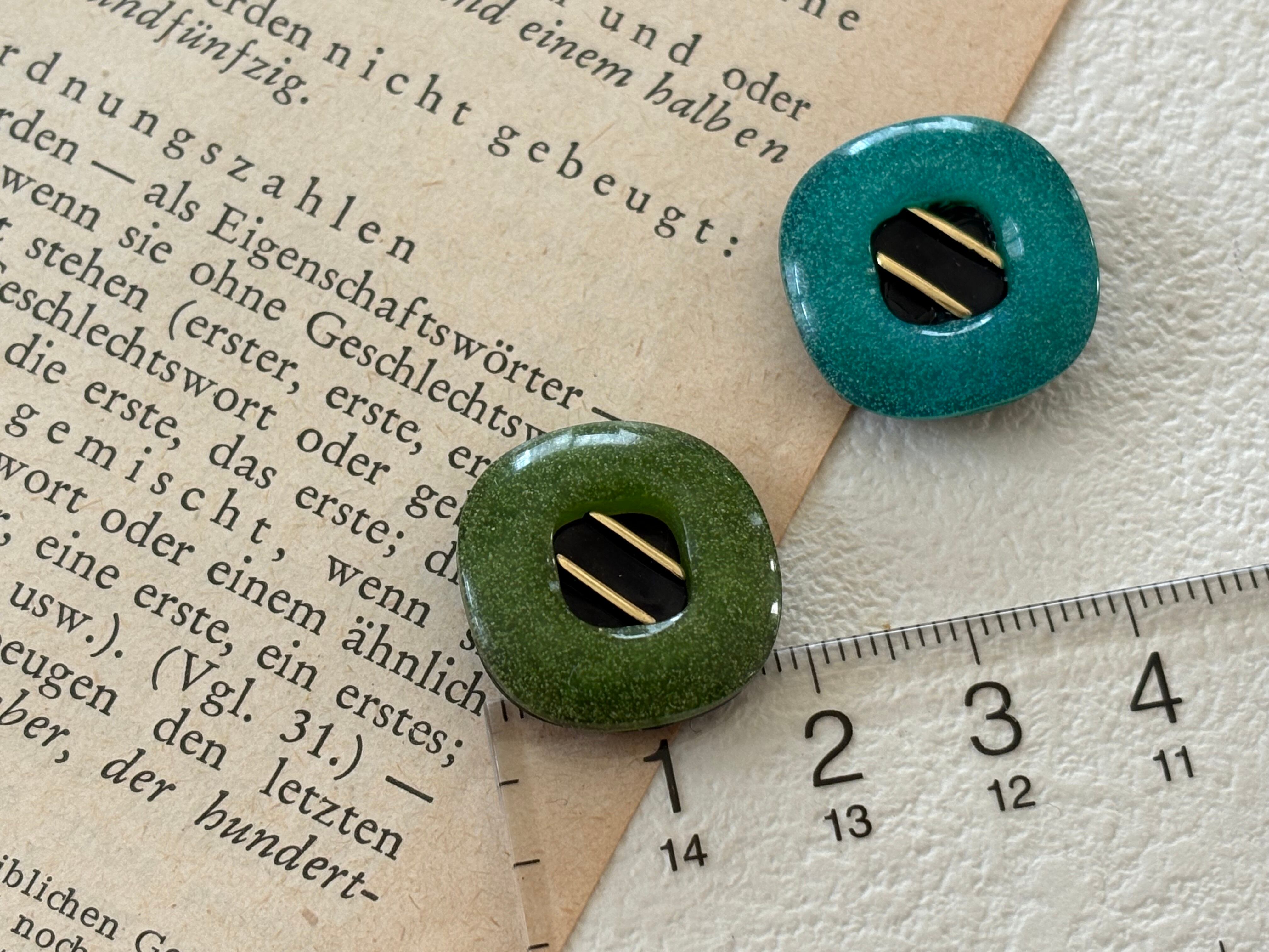 19mm Japanese Vintage ボタン 角なしスクウェア グリーン/イエローグリーン レトロ アクセサリーパーツ 装飾材 カルトナージュ
