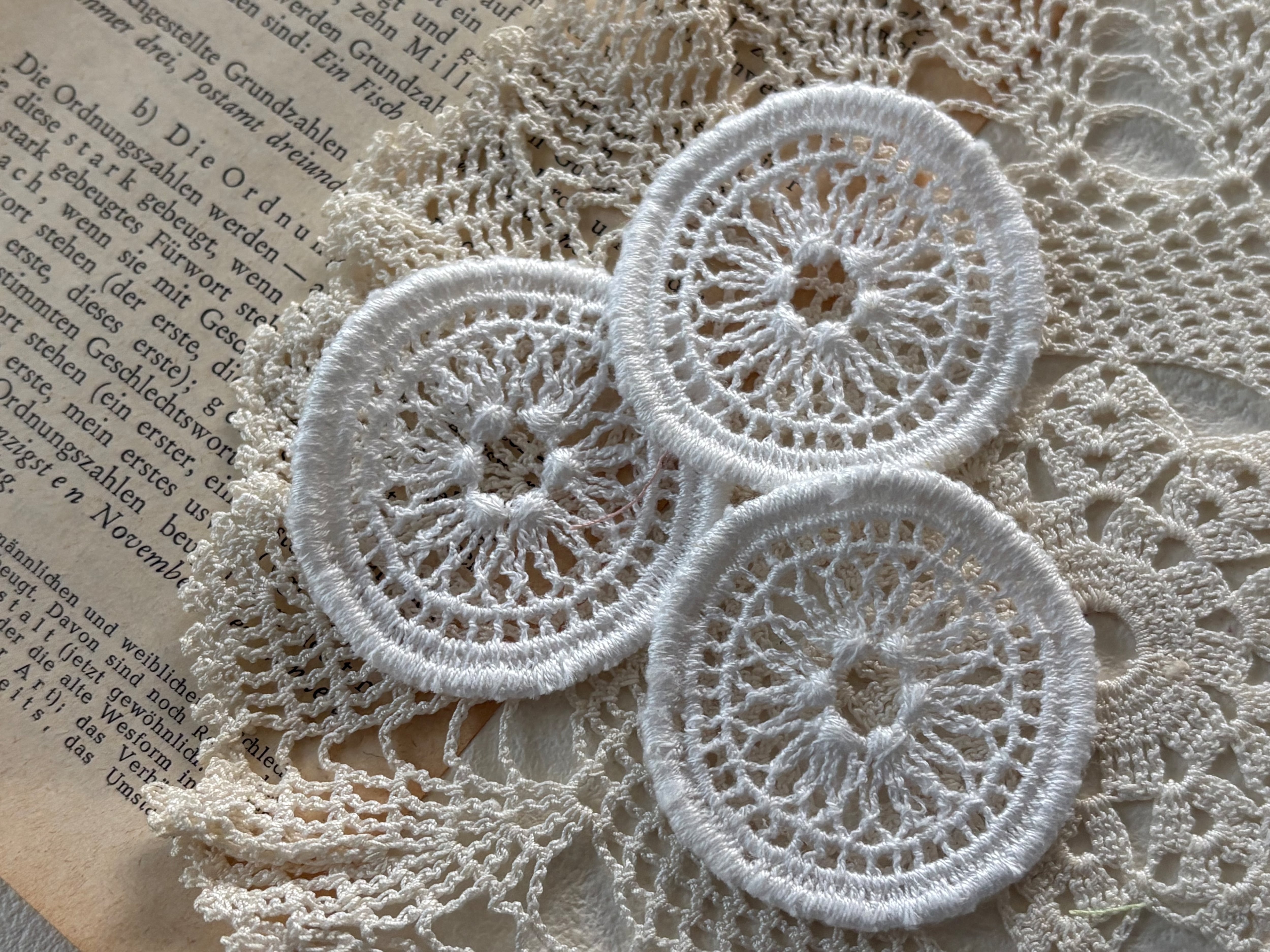 フランス Vintage ヴィンテージ レースモチーフ 48mm前後 レース デコレーション材 カルトナージュ