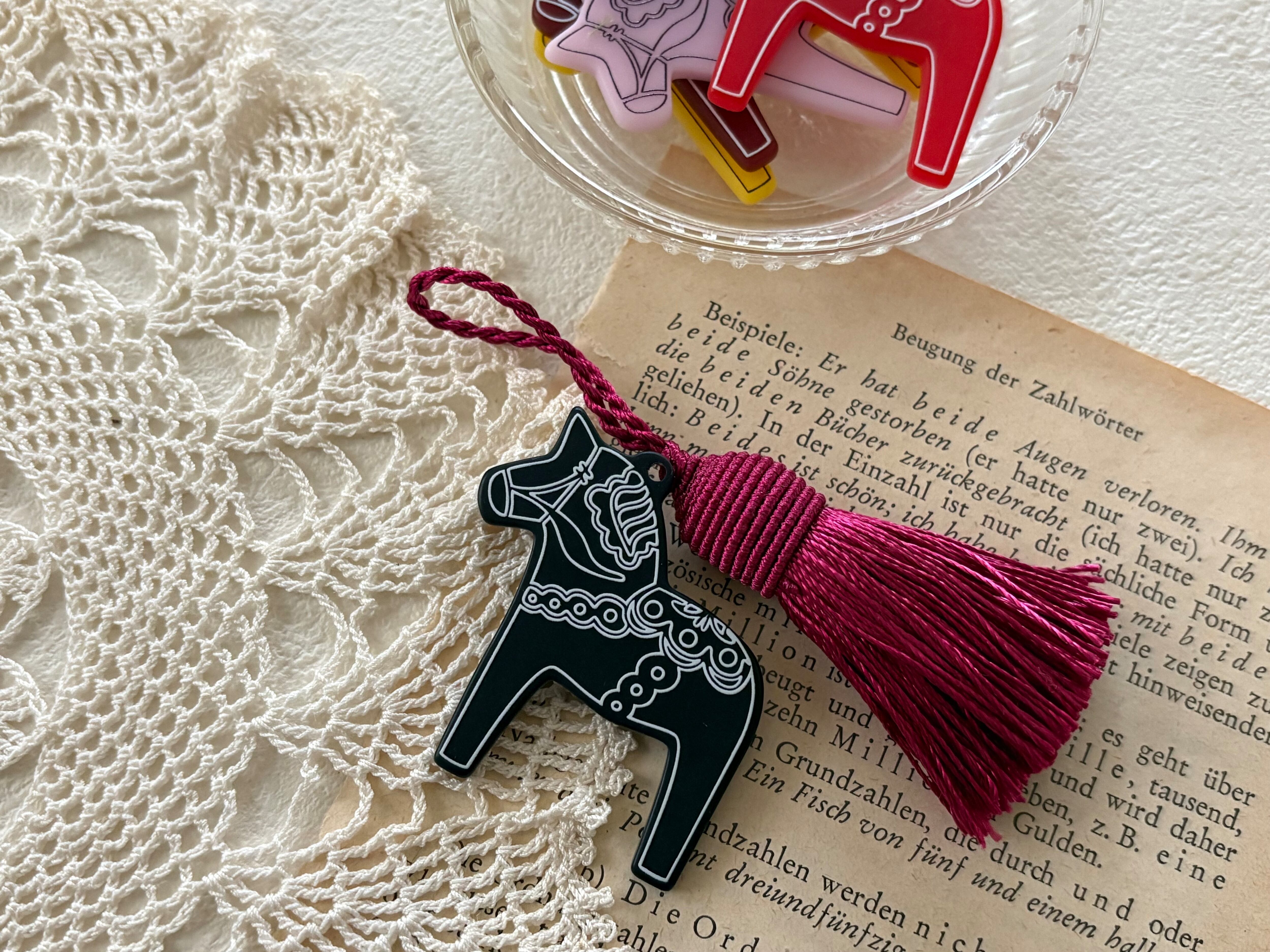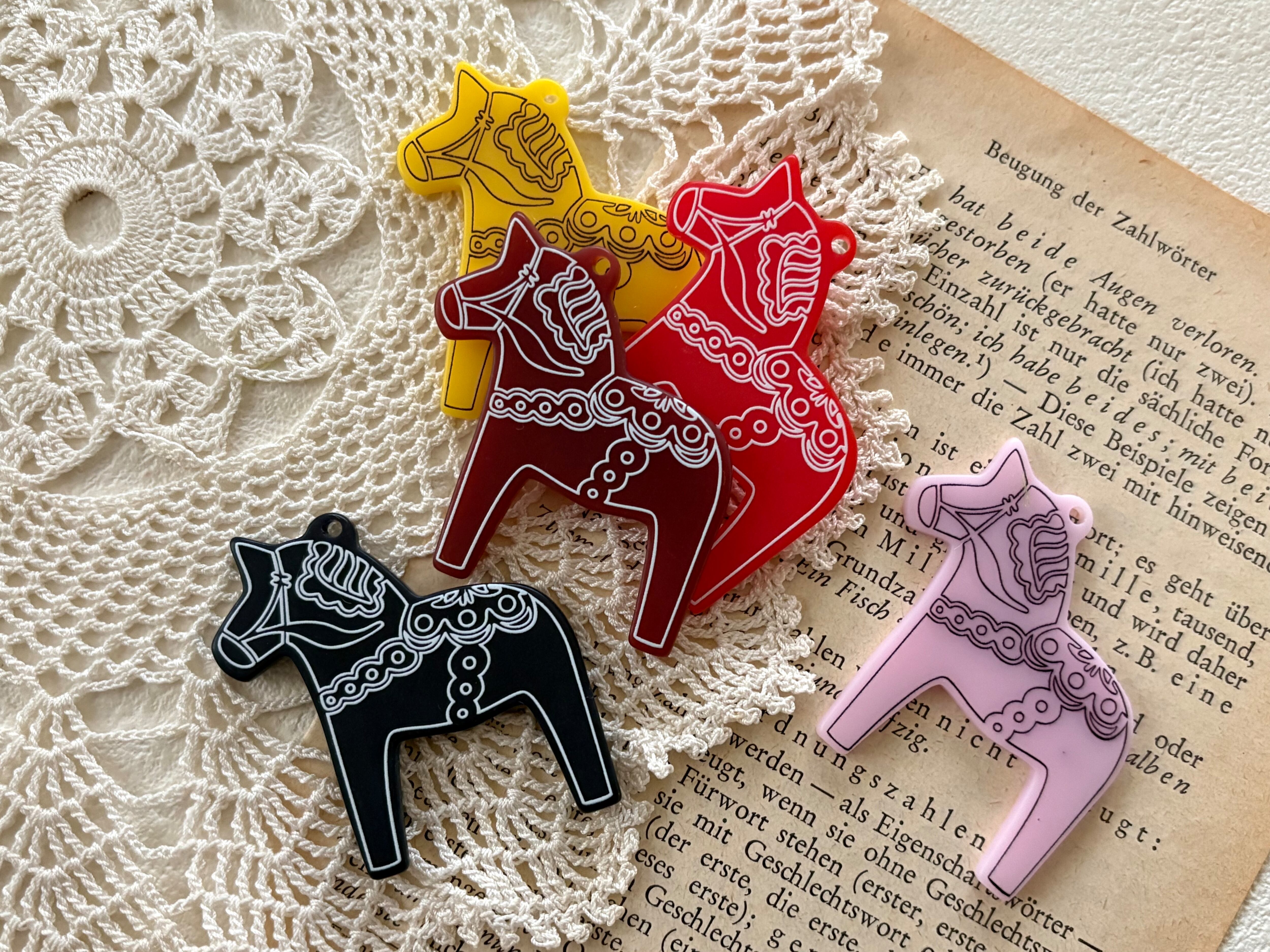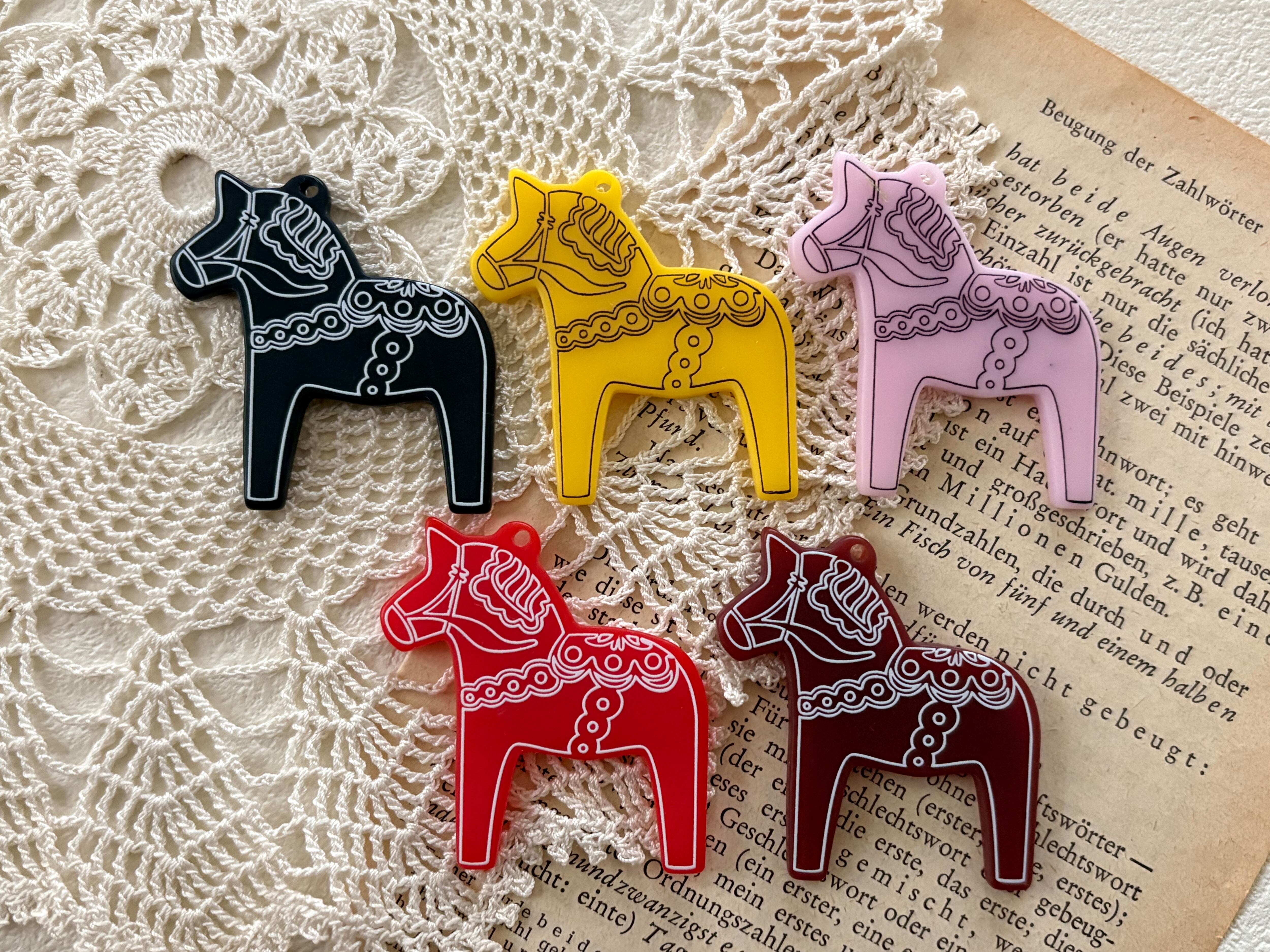 北欧で幸せを運んでくるとされるダーラナホースのアクリル製チャームです。
