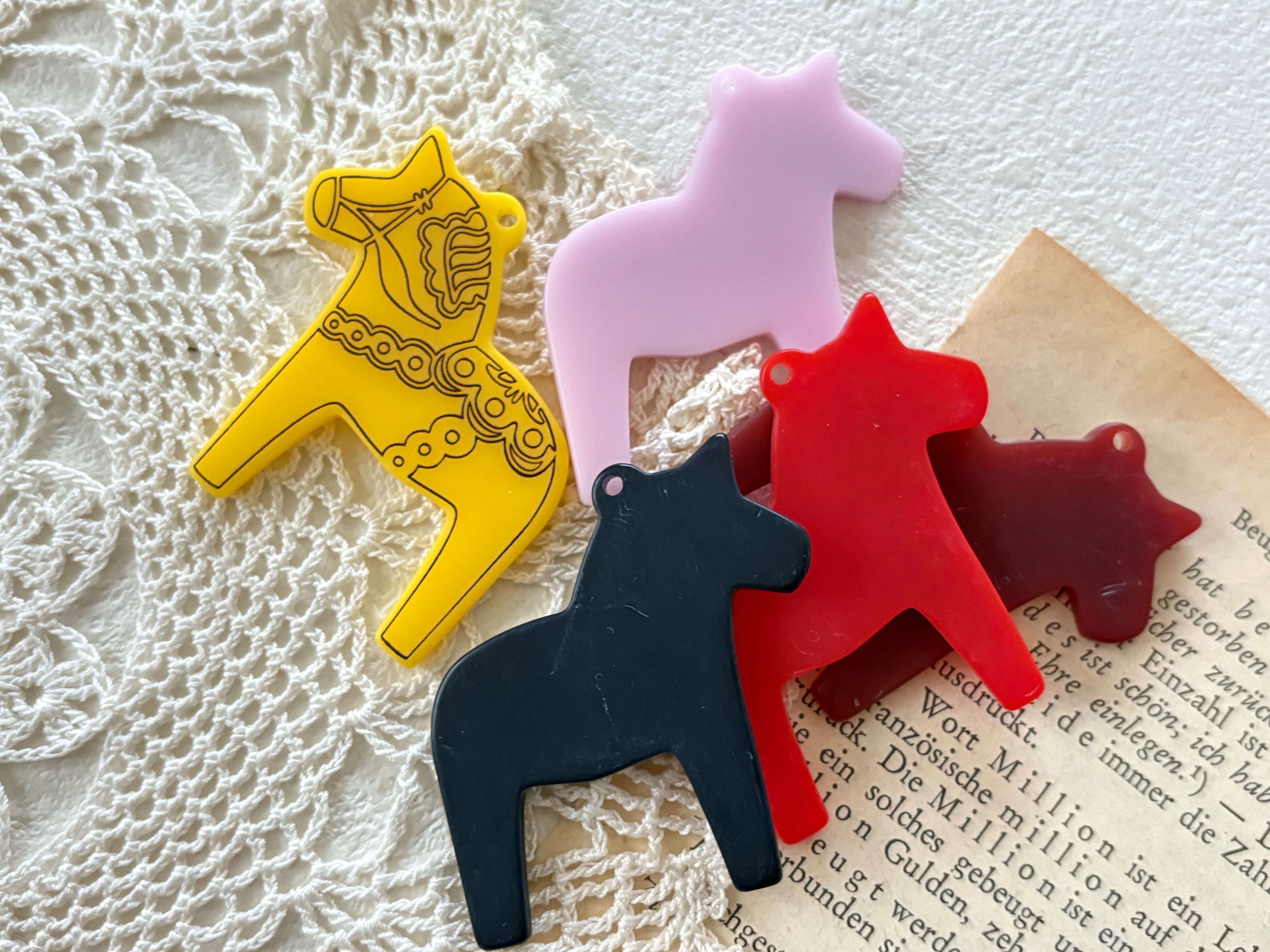 輸入デザインパーツ ダーラナホース 馬 レッド/イエロー/ブラック/ブラウン/ピンク チャーム アクセサリーパーツ デコレーション材