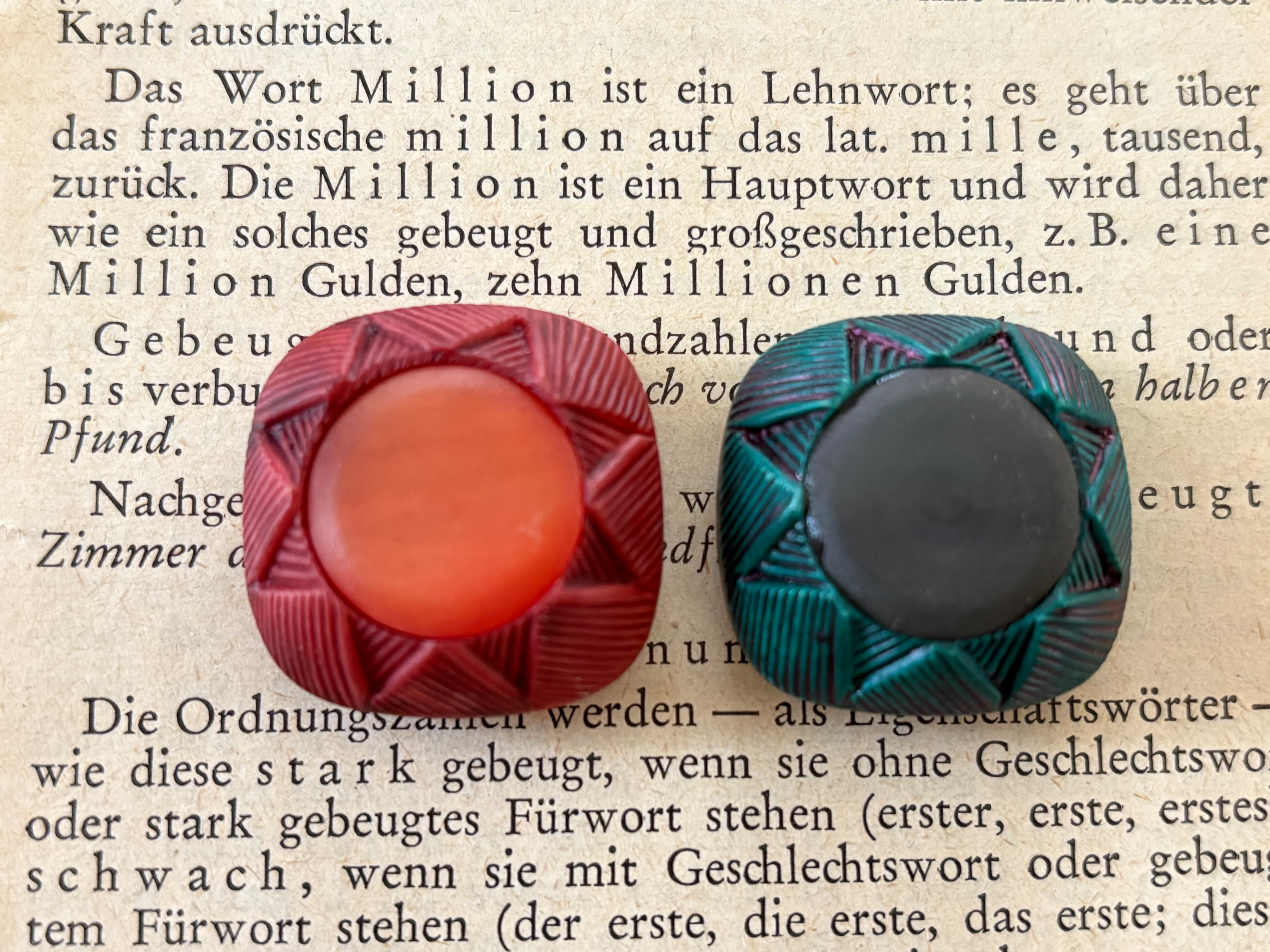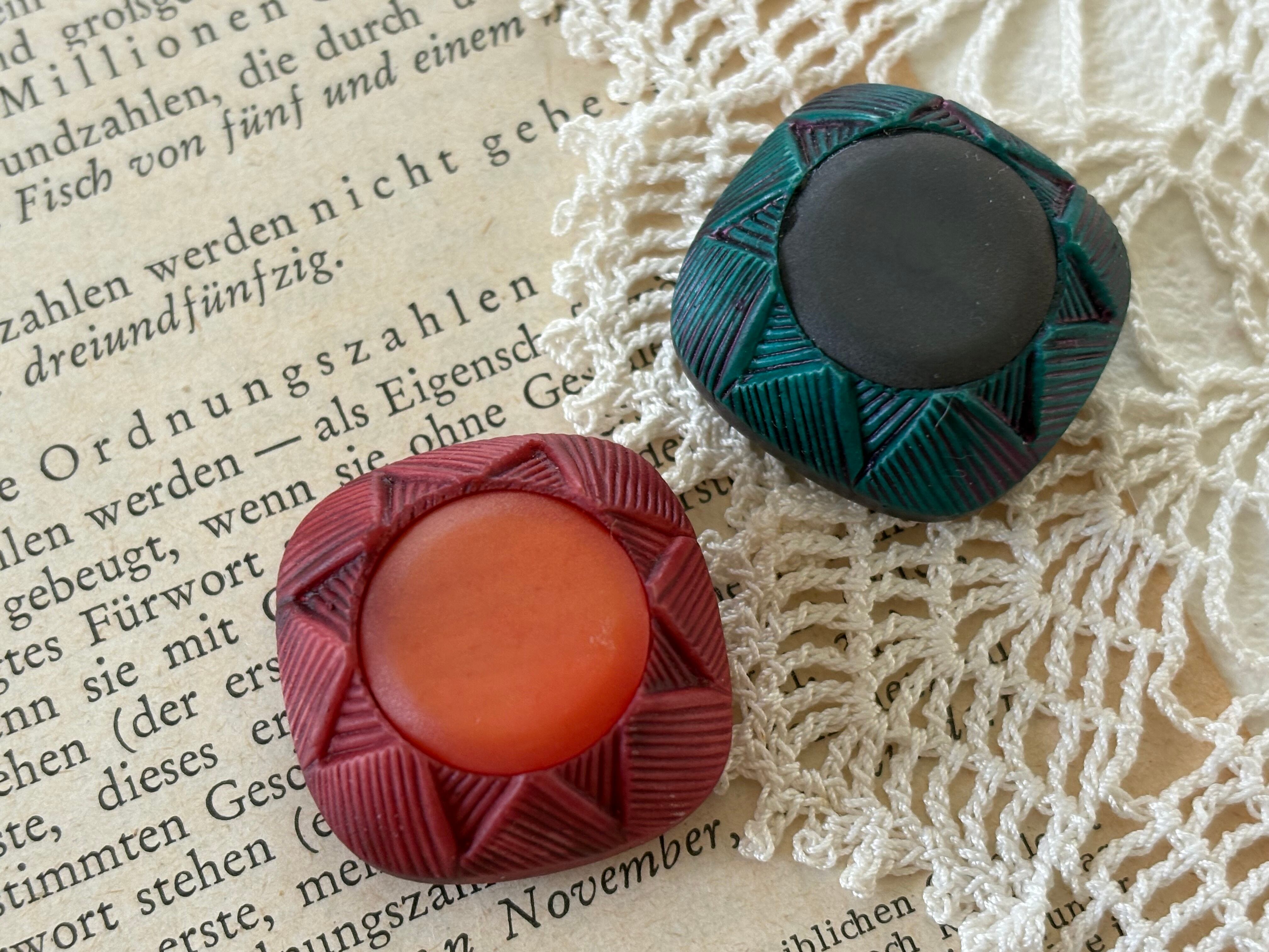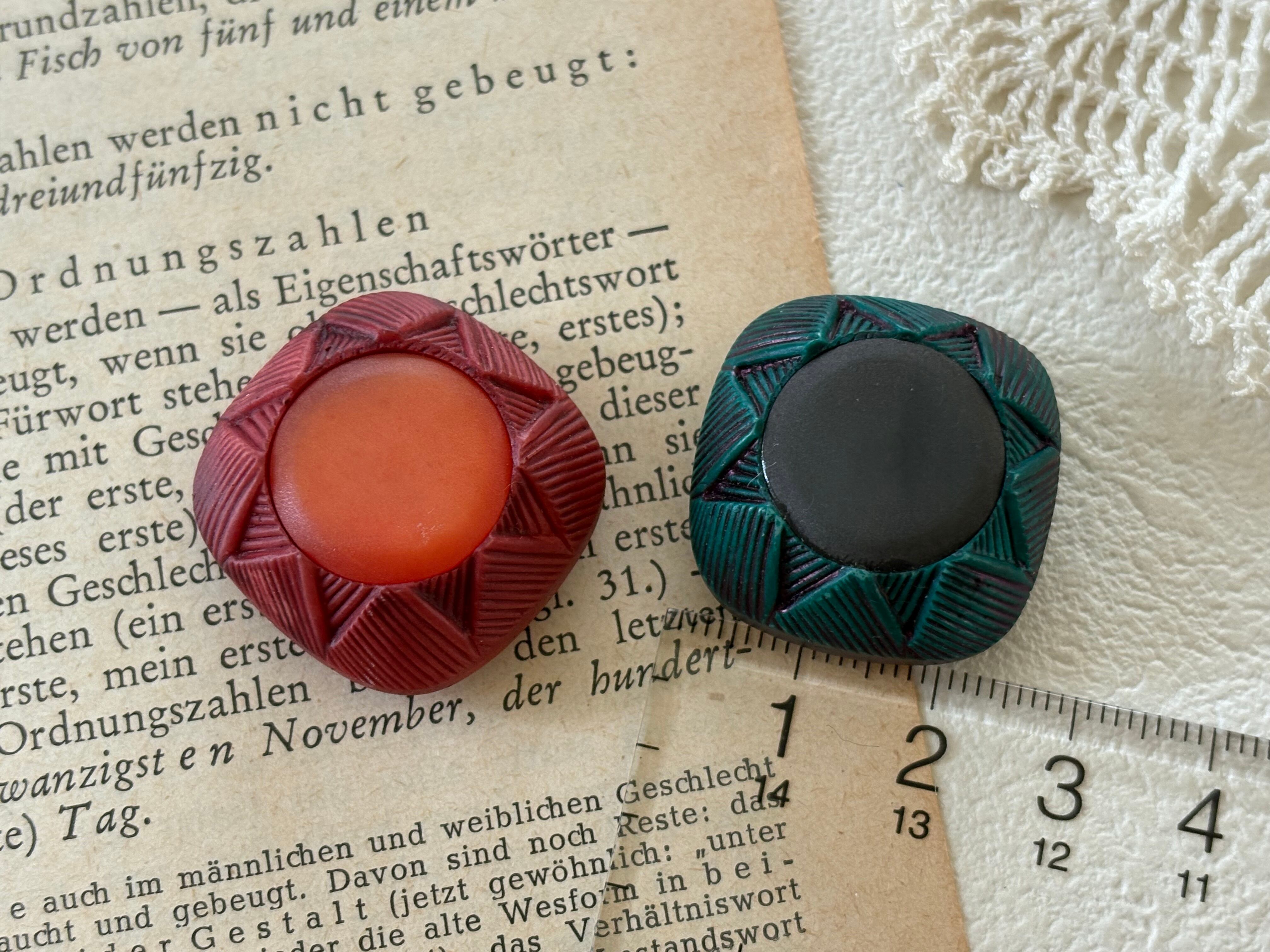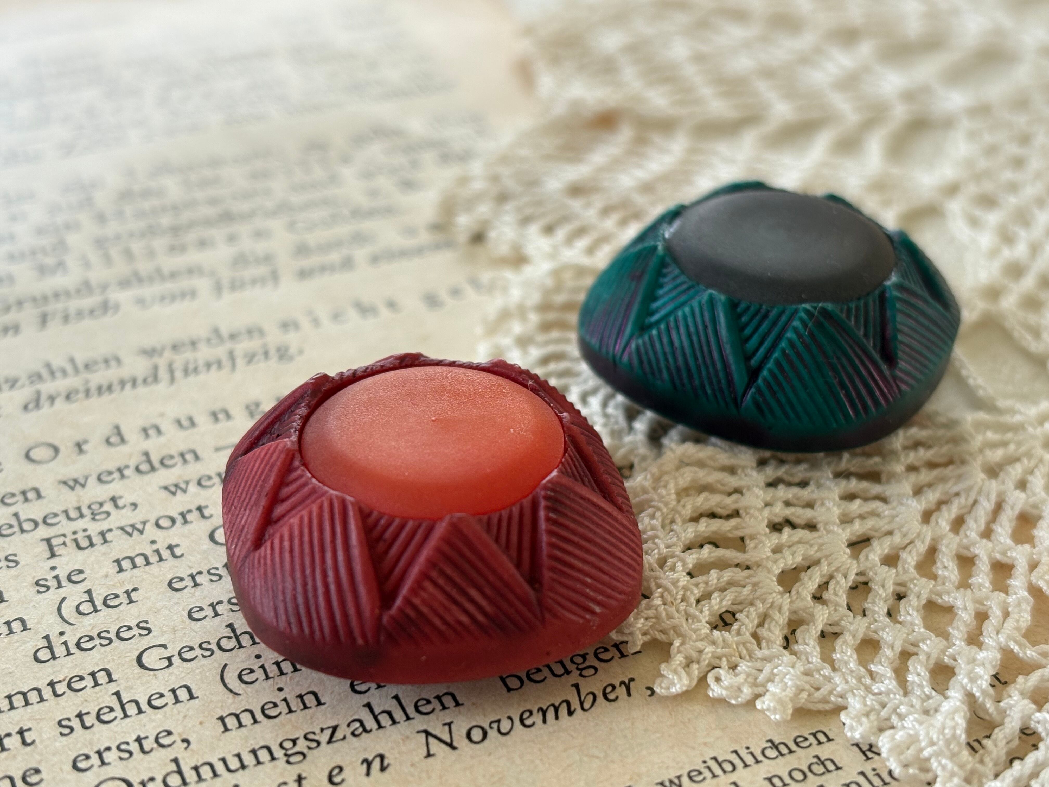 26mm Japanese ヴィンテージボタン ドーム型 レッド/グリーン アクセサリーパーツ デコレーション材 カルトナージュ