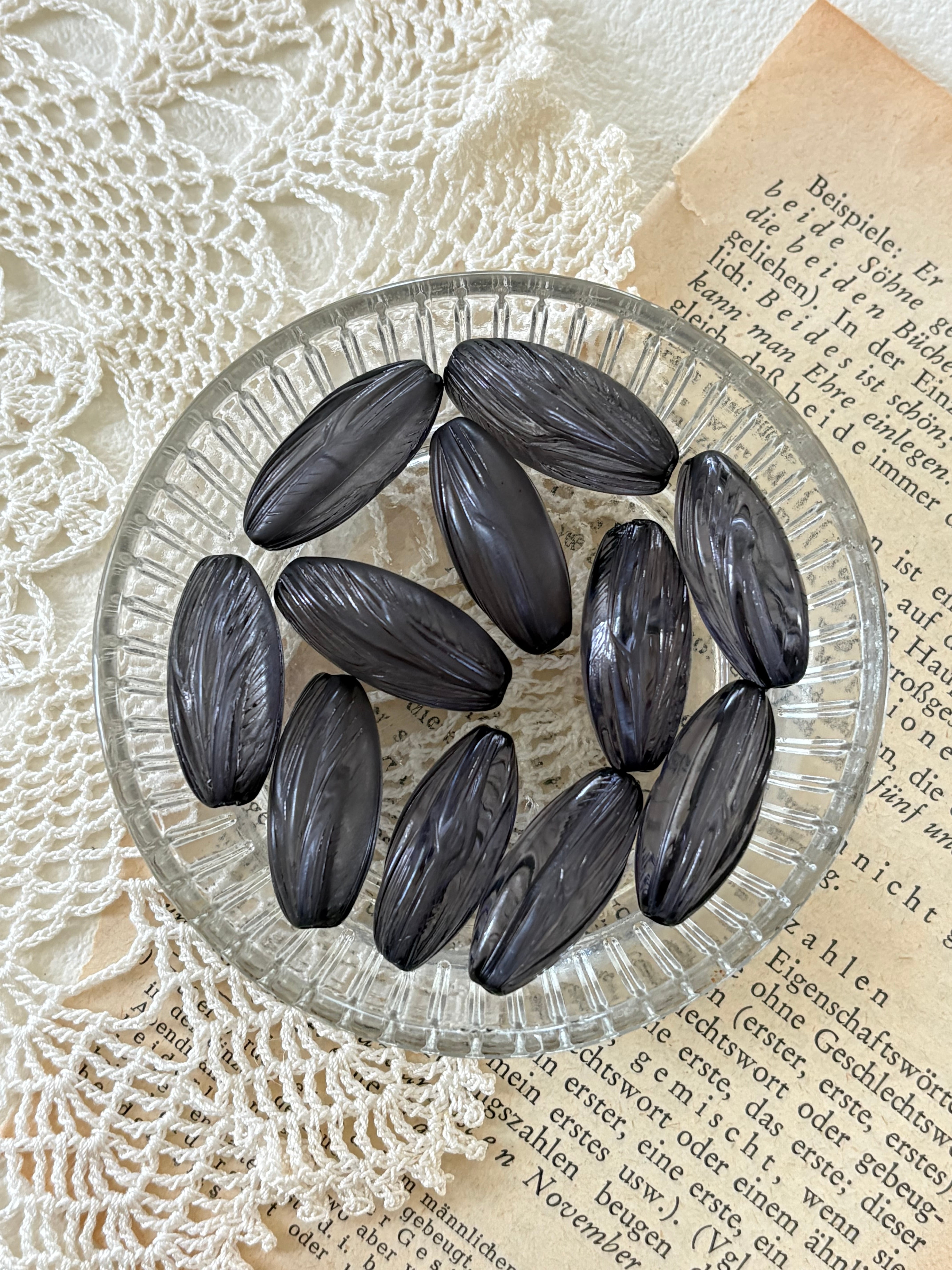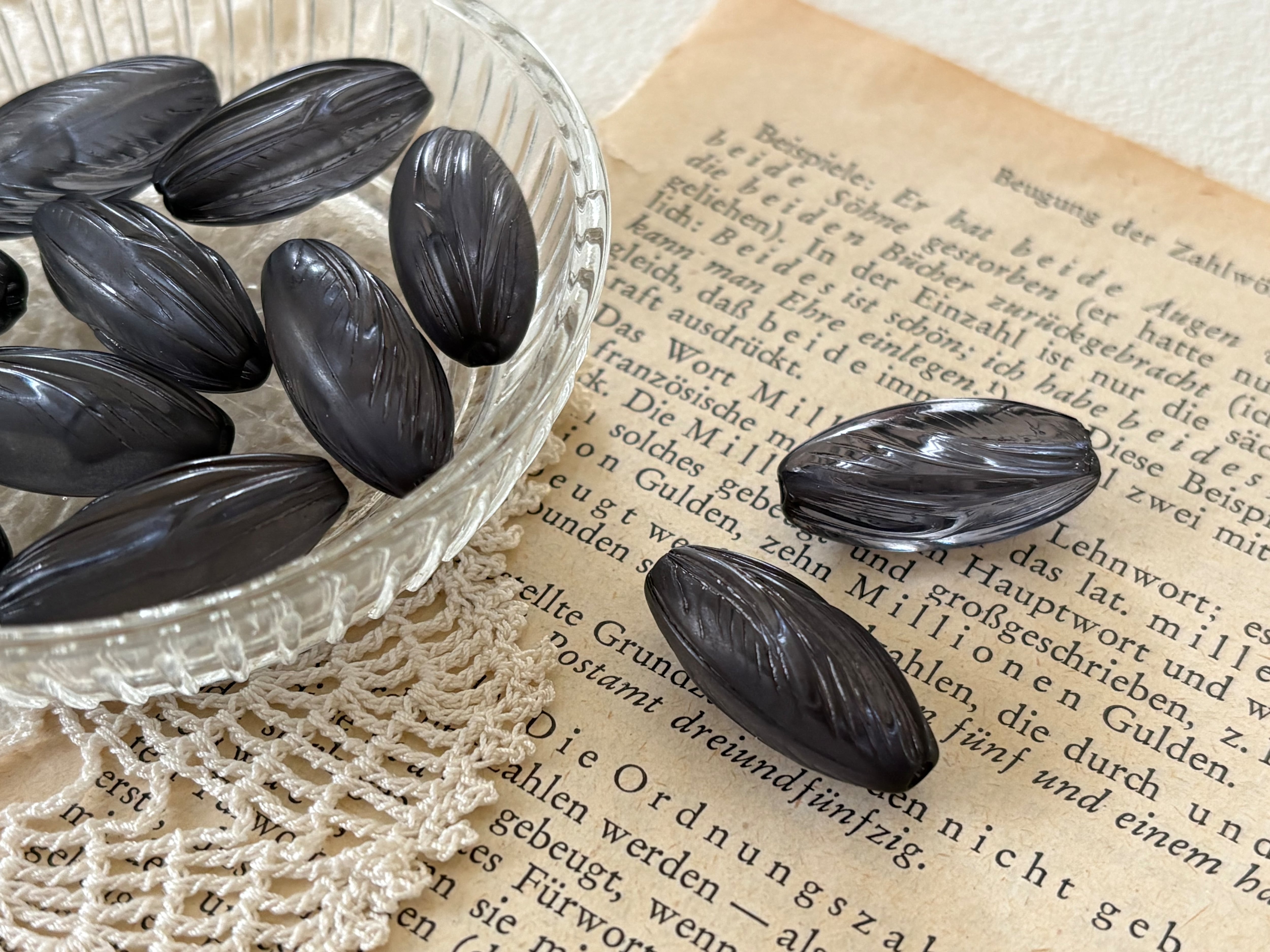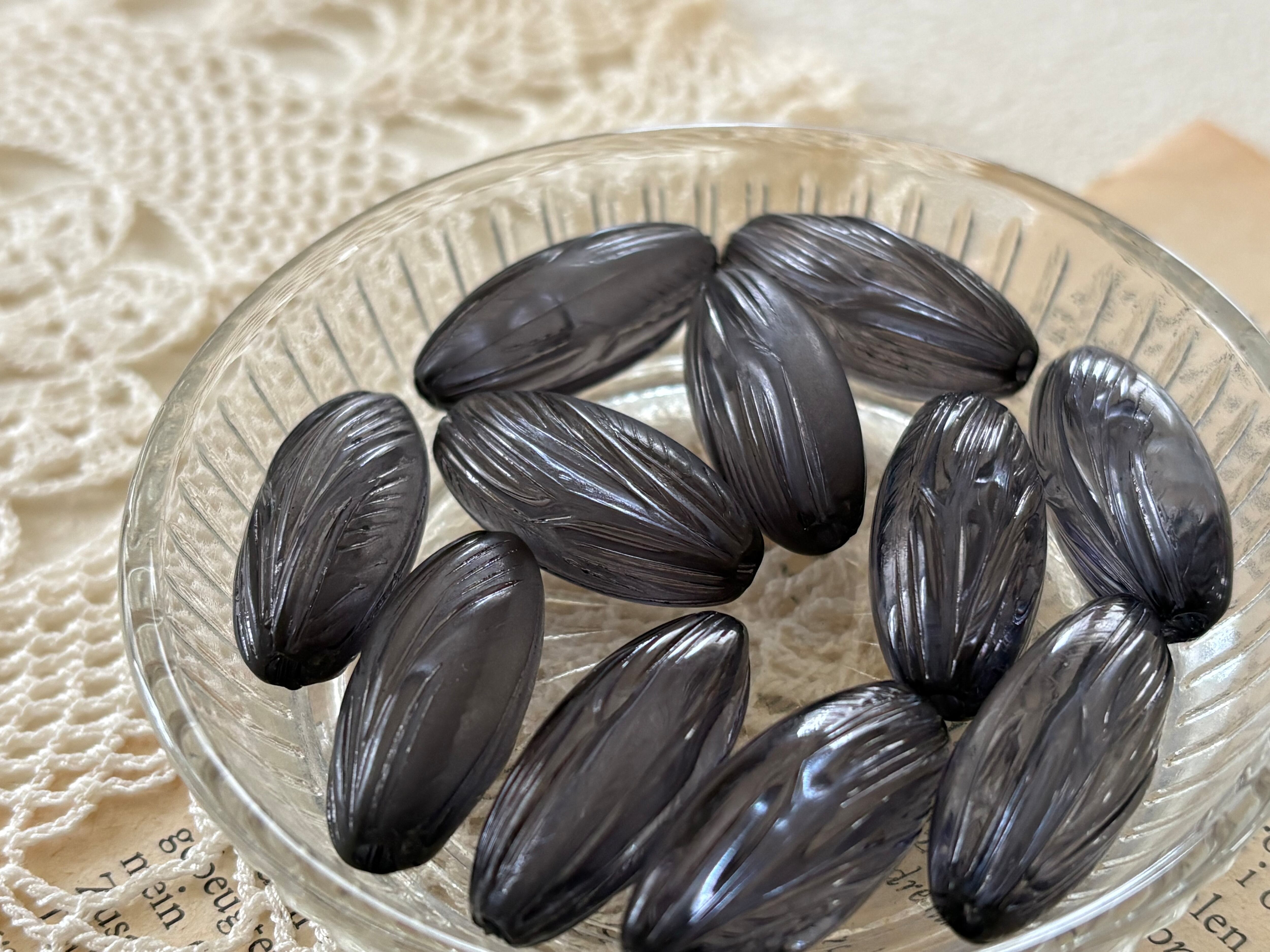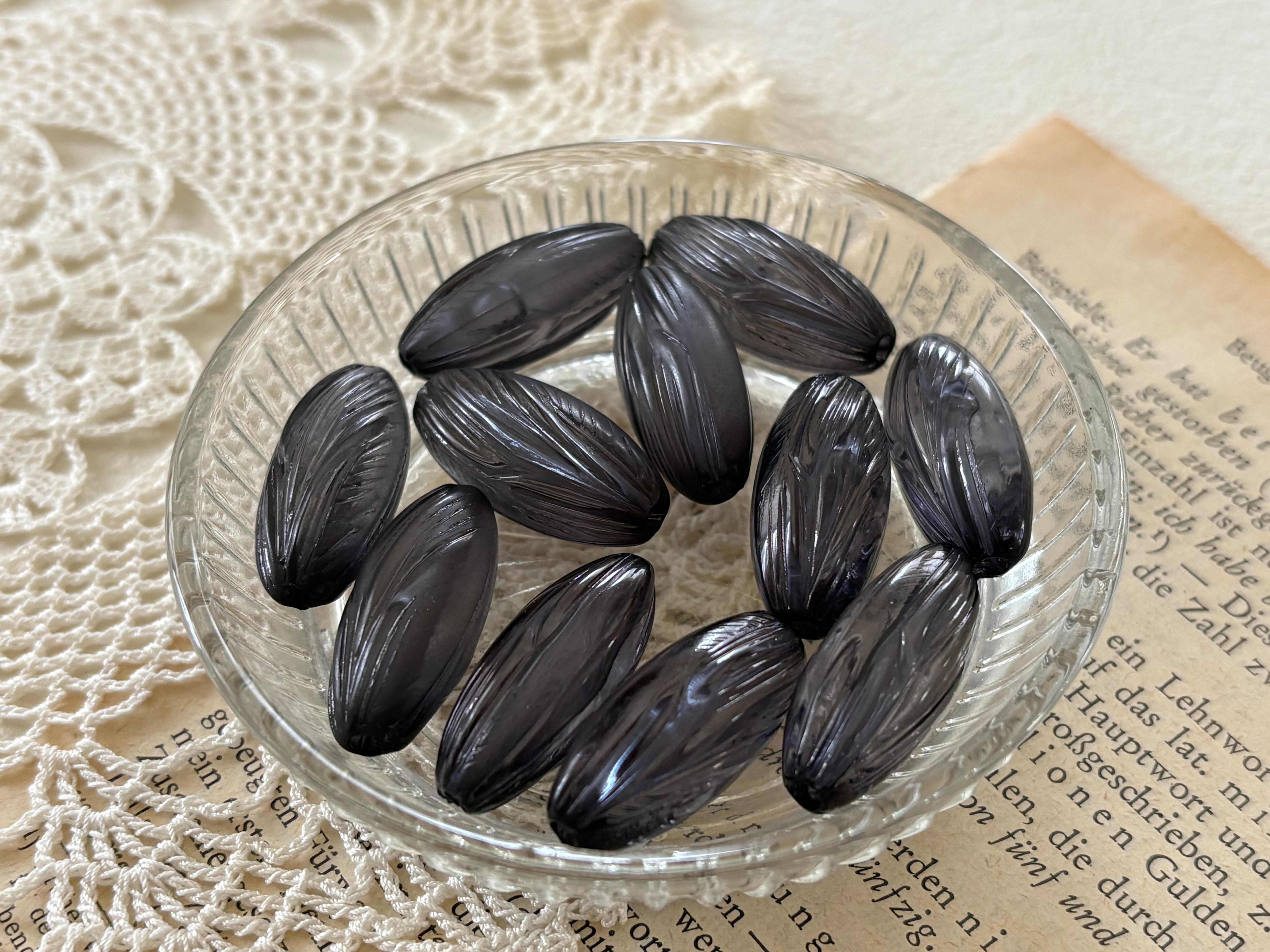 透け感のあるレトロなブラックカラーのビーズです。