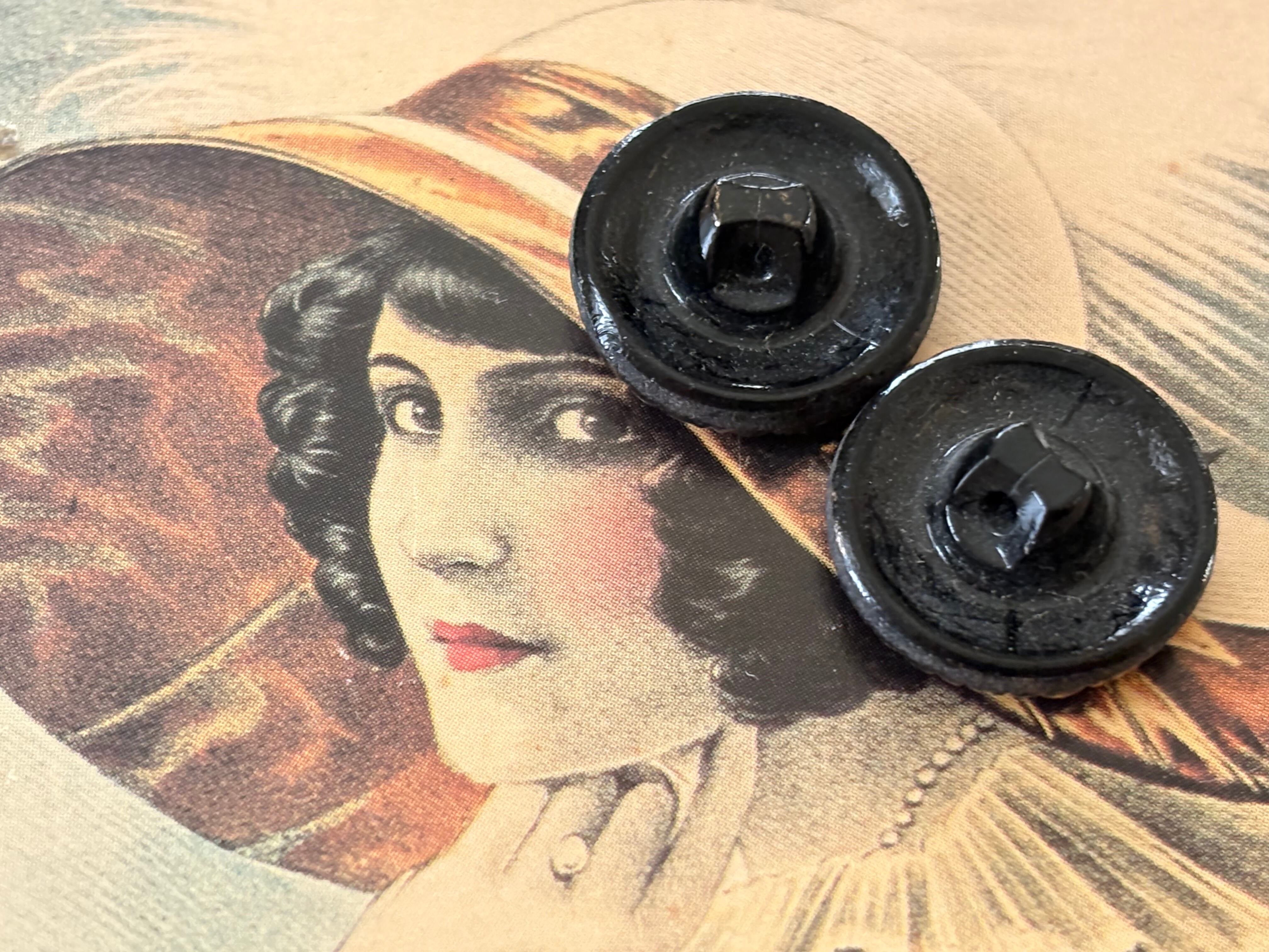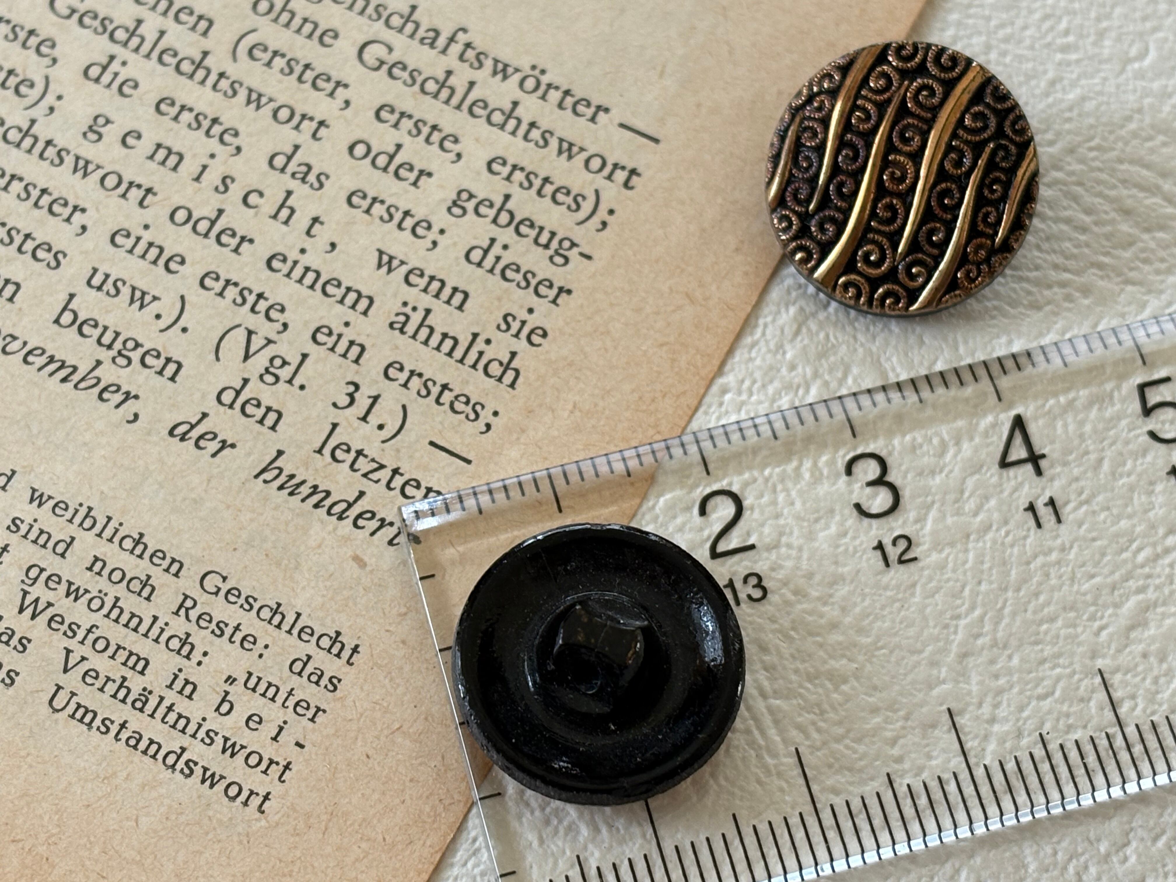 18mm チェコ Vintageボタン ガラスボタン ブラック×ブロンズ アクセサリーパーツ デコレーション材