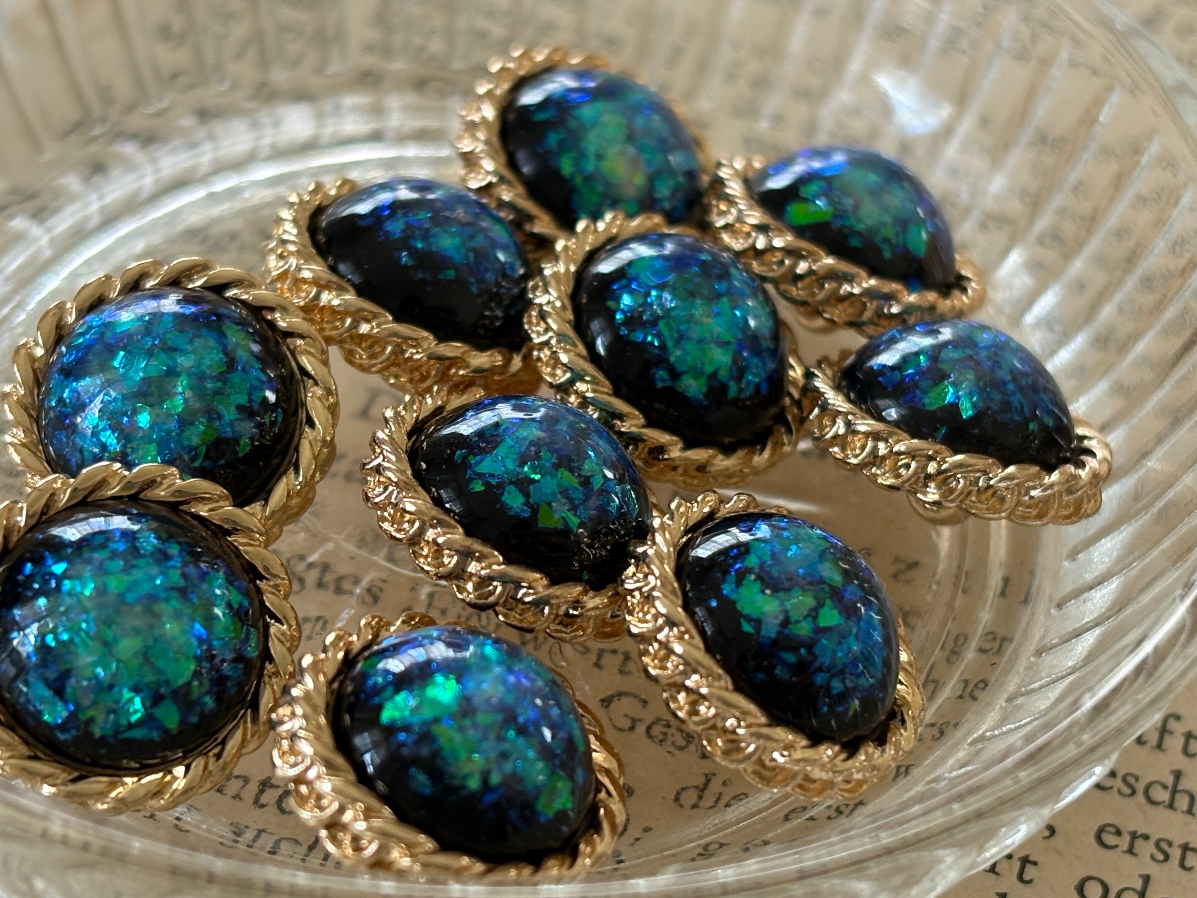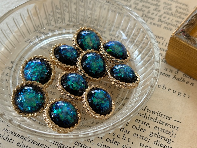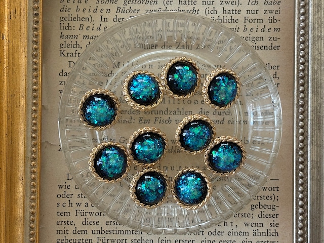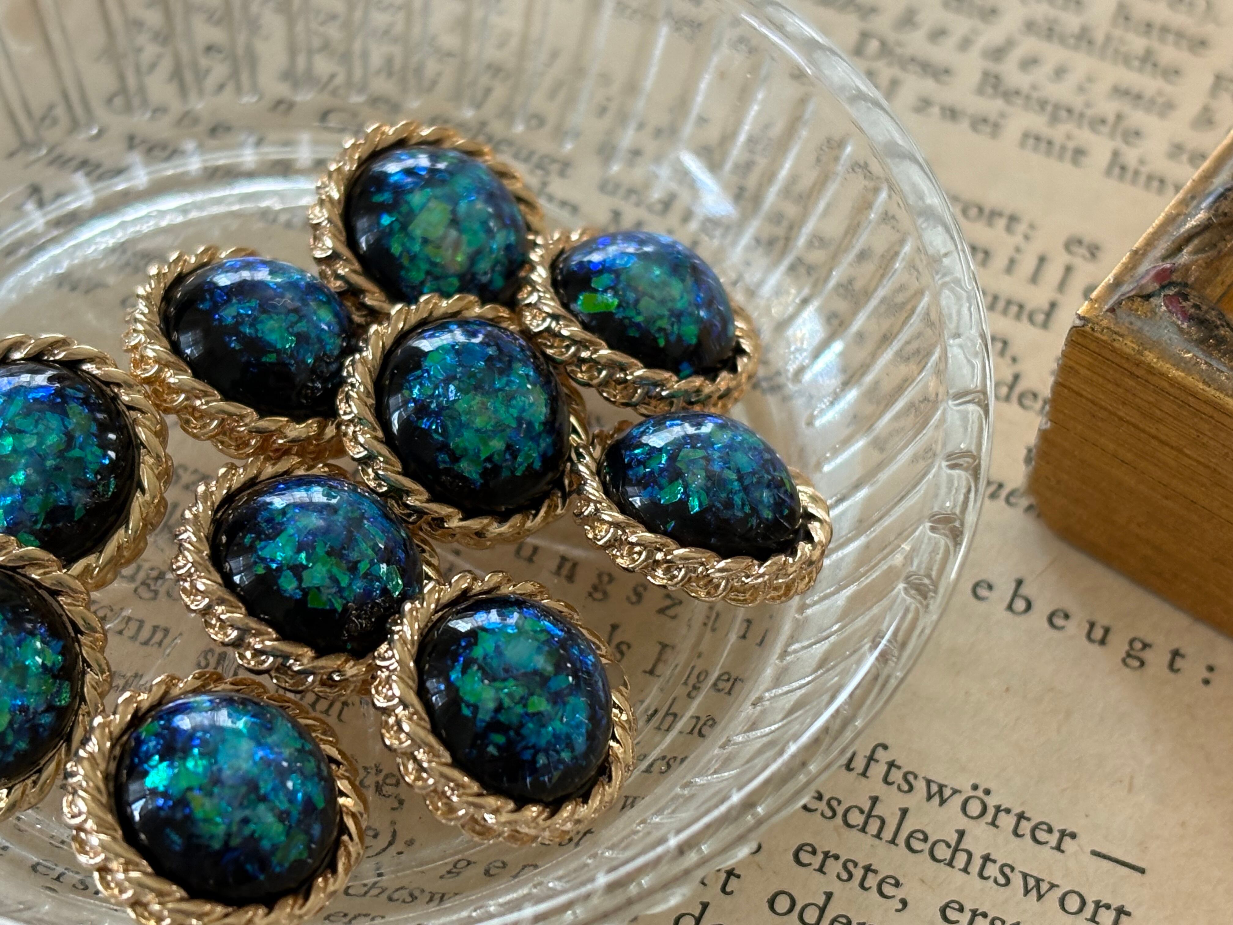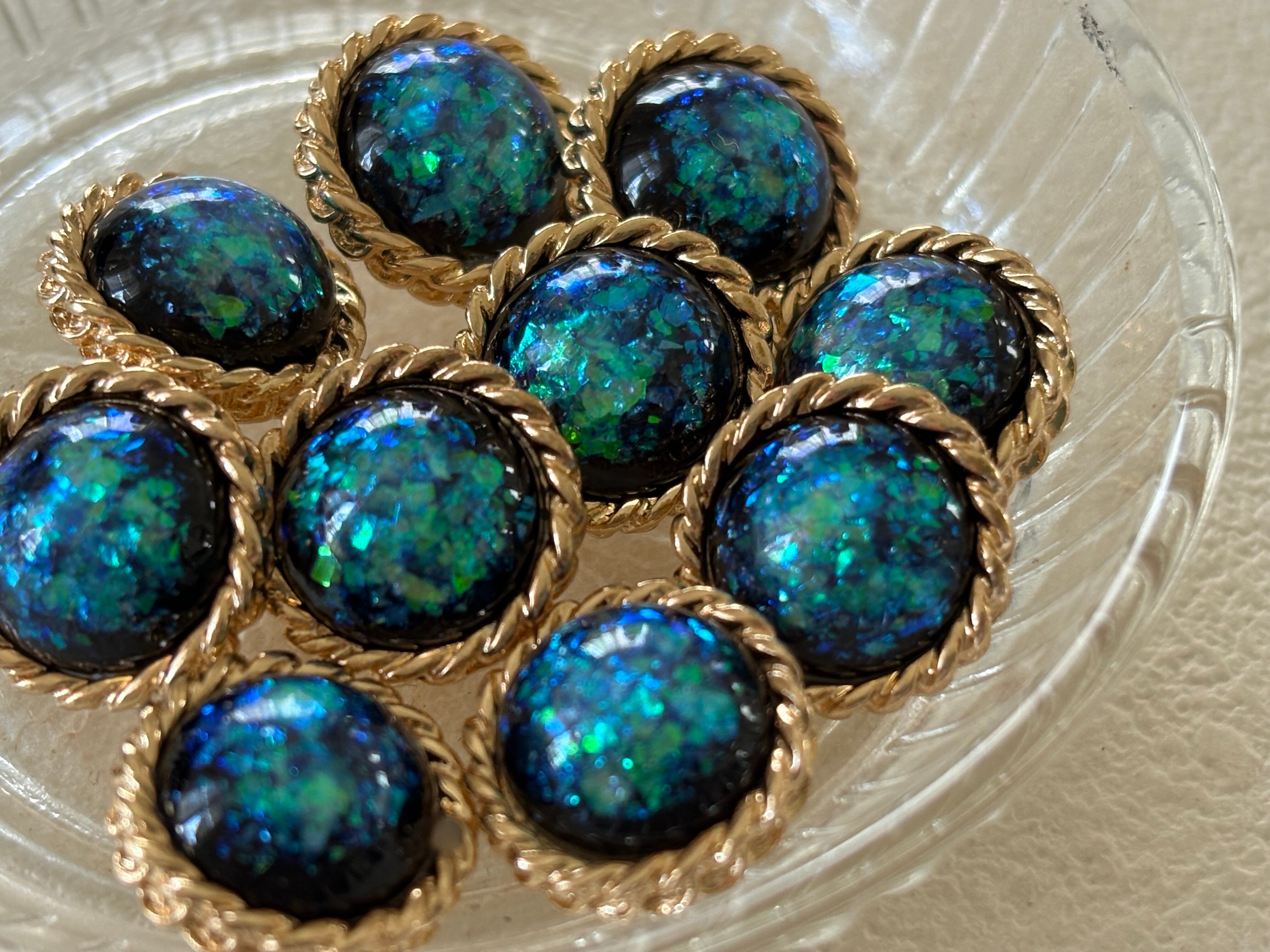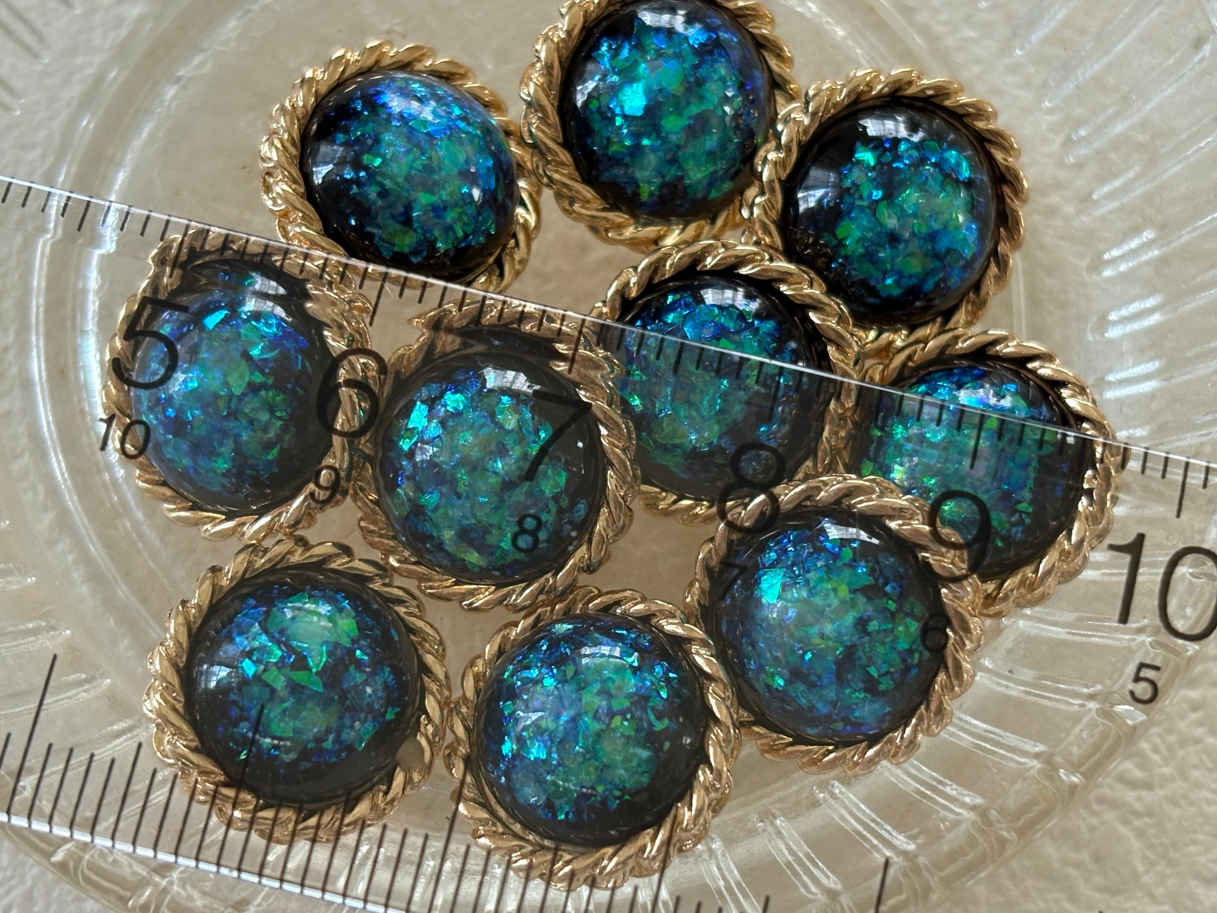 15mm 輸入デザインボタン ゴールド×ブルー系 ホログラム メタル×カボション アクセサリーパーツ デコレーションパーツ