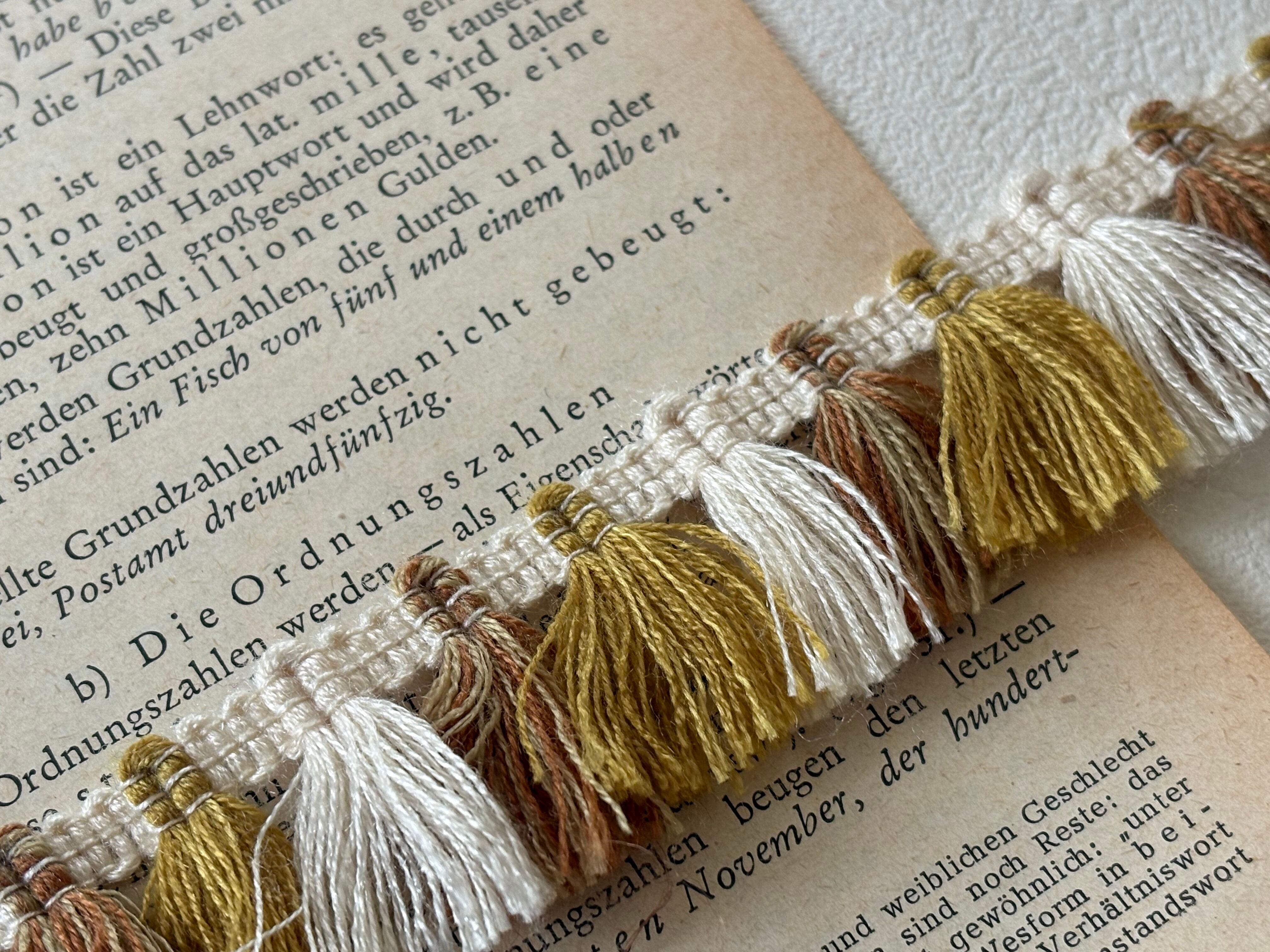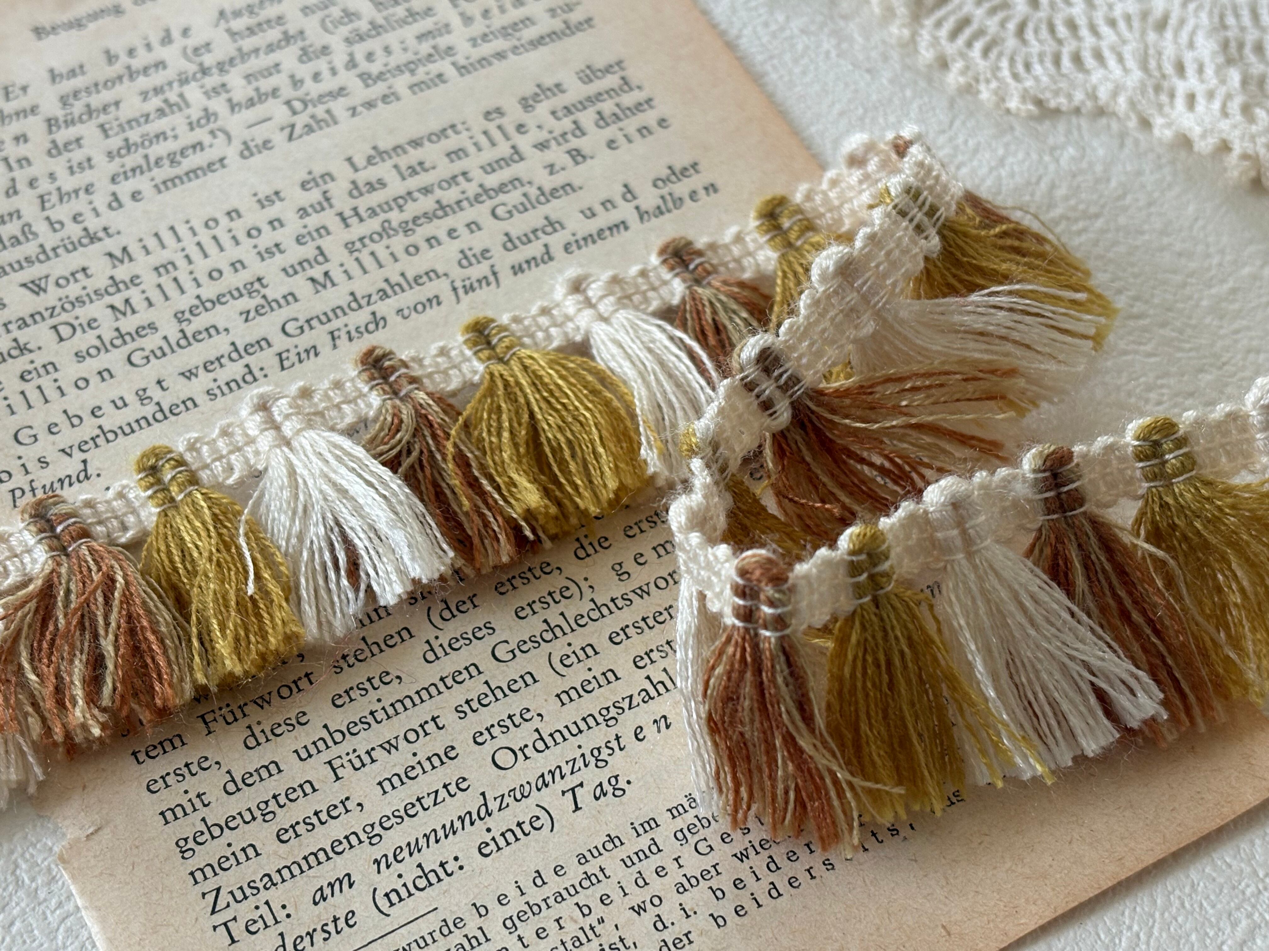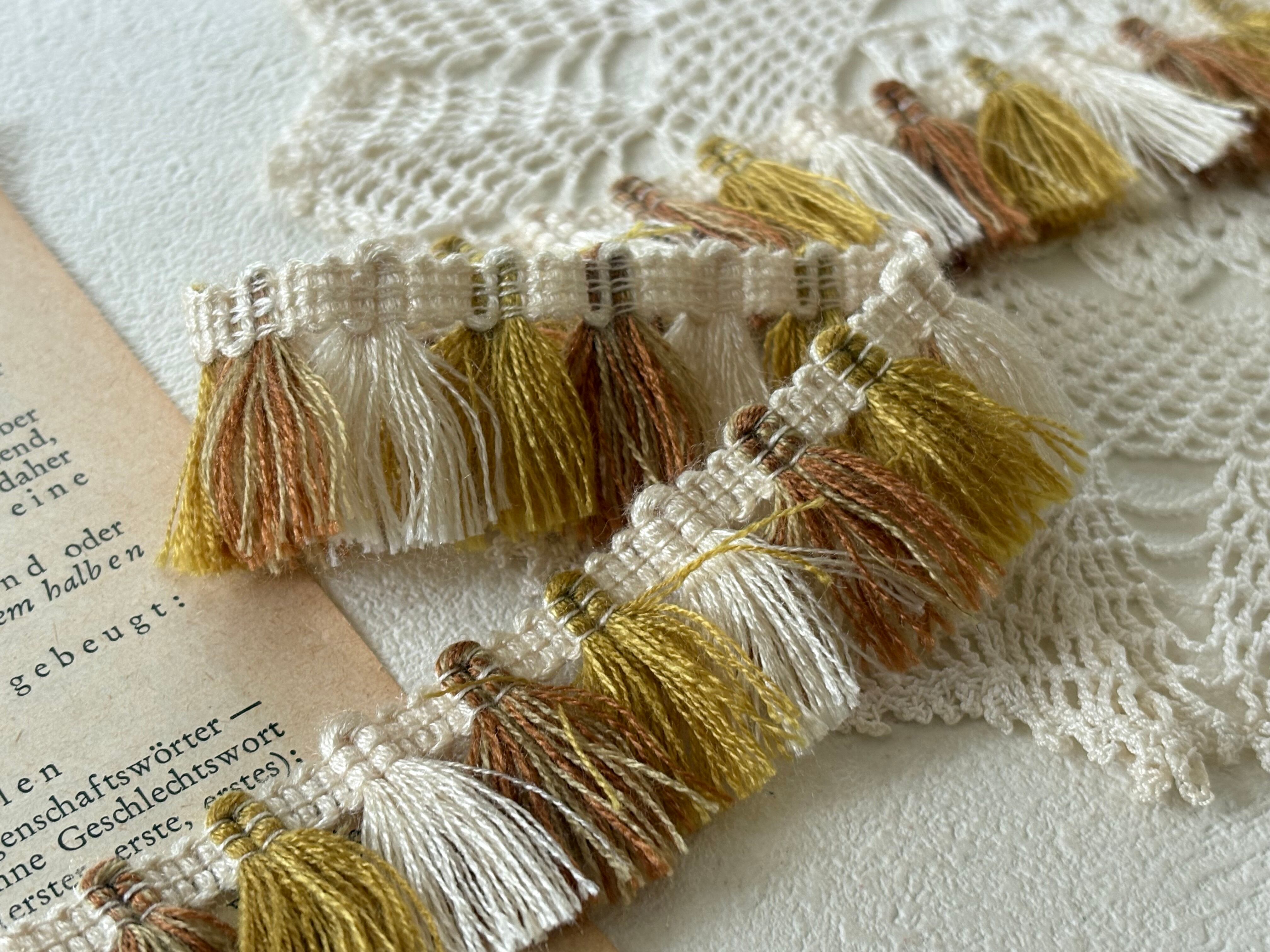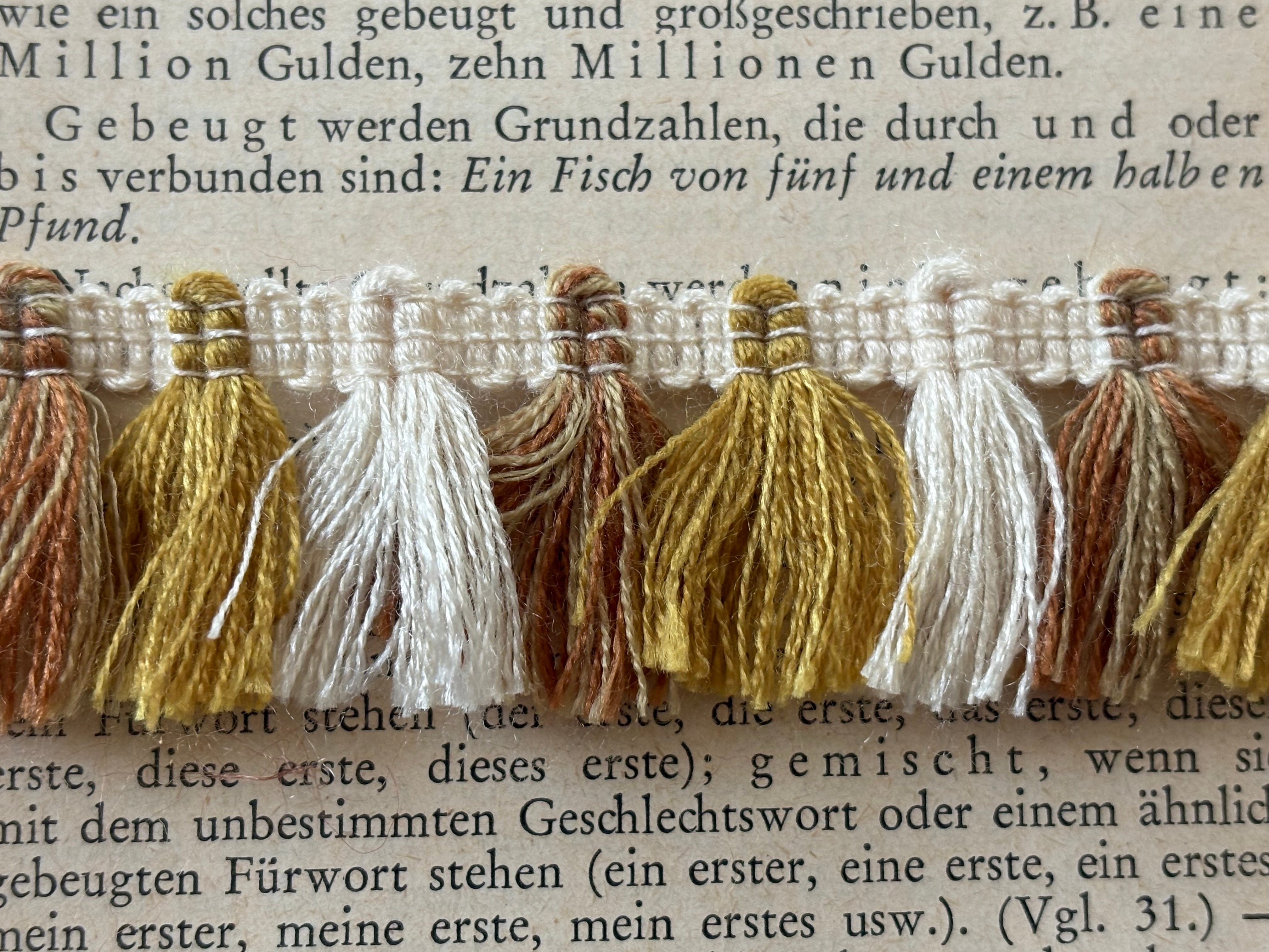 フランスVintage フリンジブレード 130cm デッドストック ブラウン×マスタードイエロー×エクリュ カルトナージュ デコレーション材 カットブレード