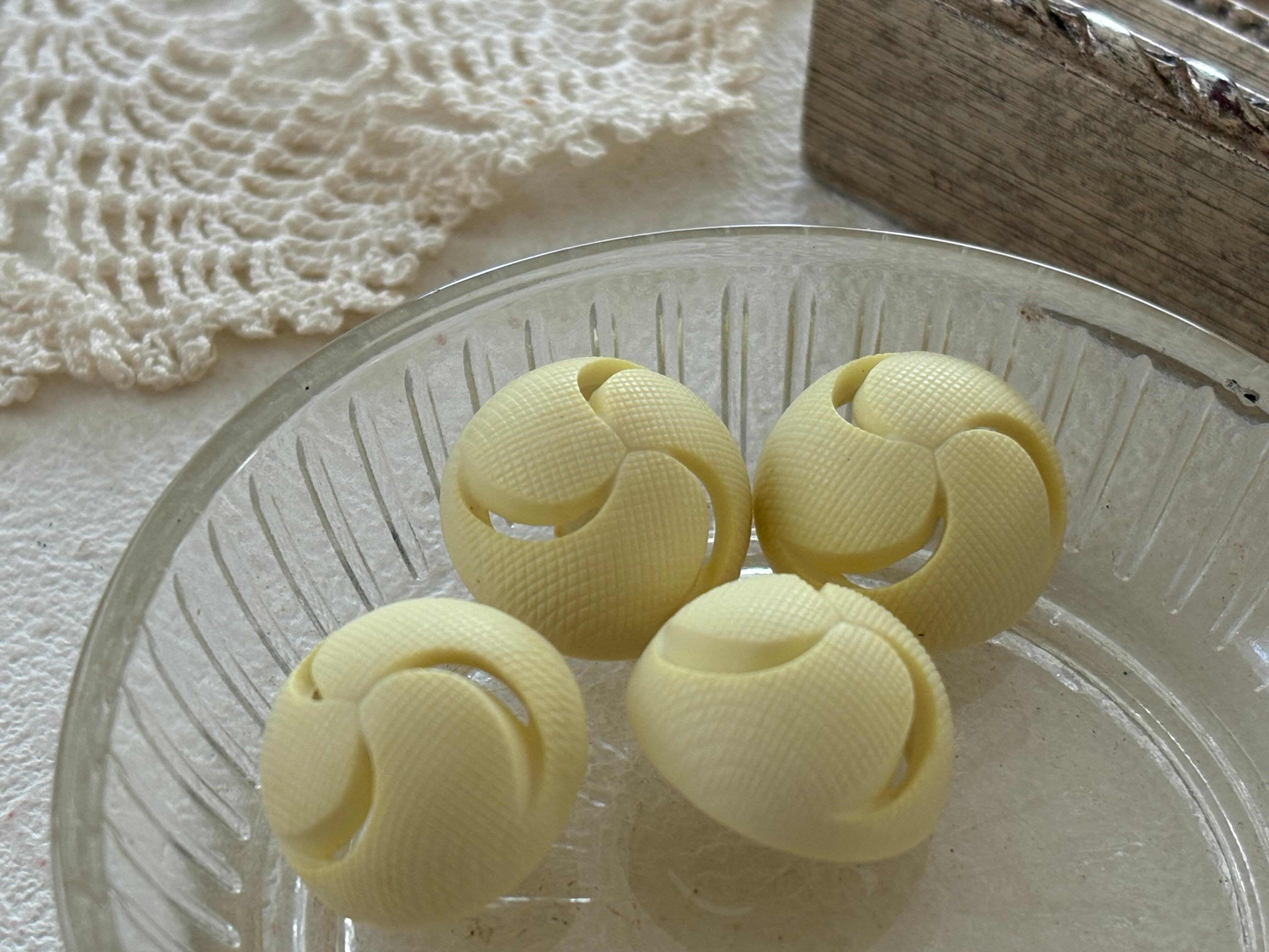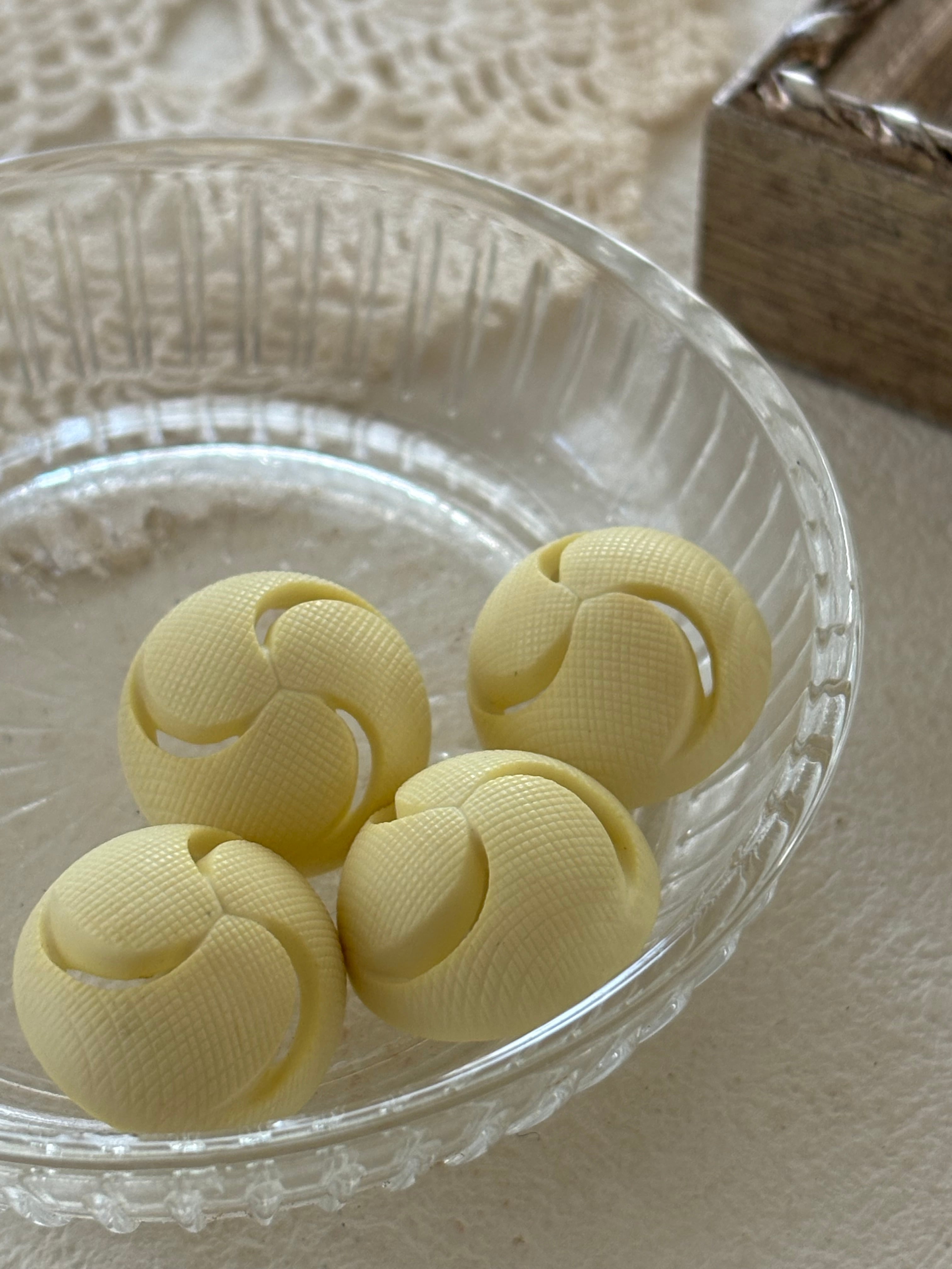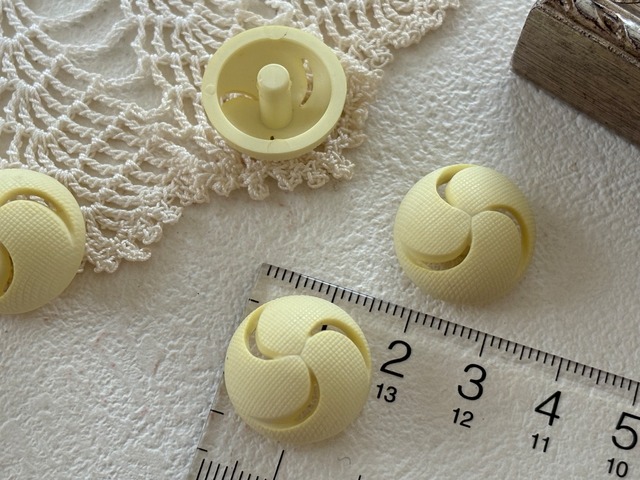 18mm Japanese Vintage ボタン ドーム型 プラスチック イエロー 透かし デッドストック アクセサリーパーツ 装飾材 カルトナージュ