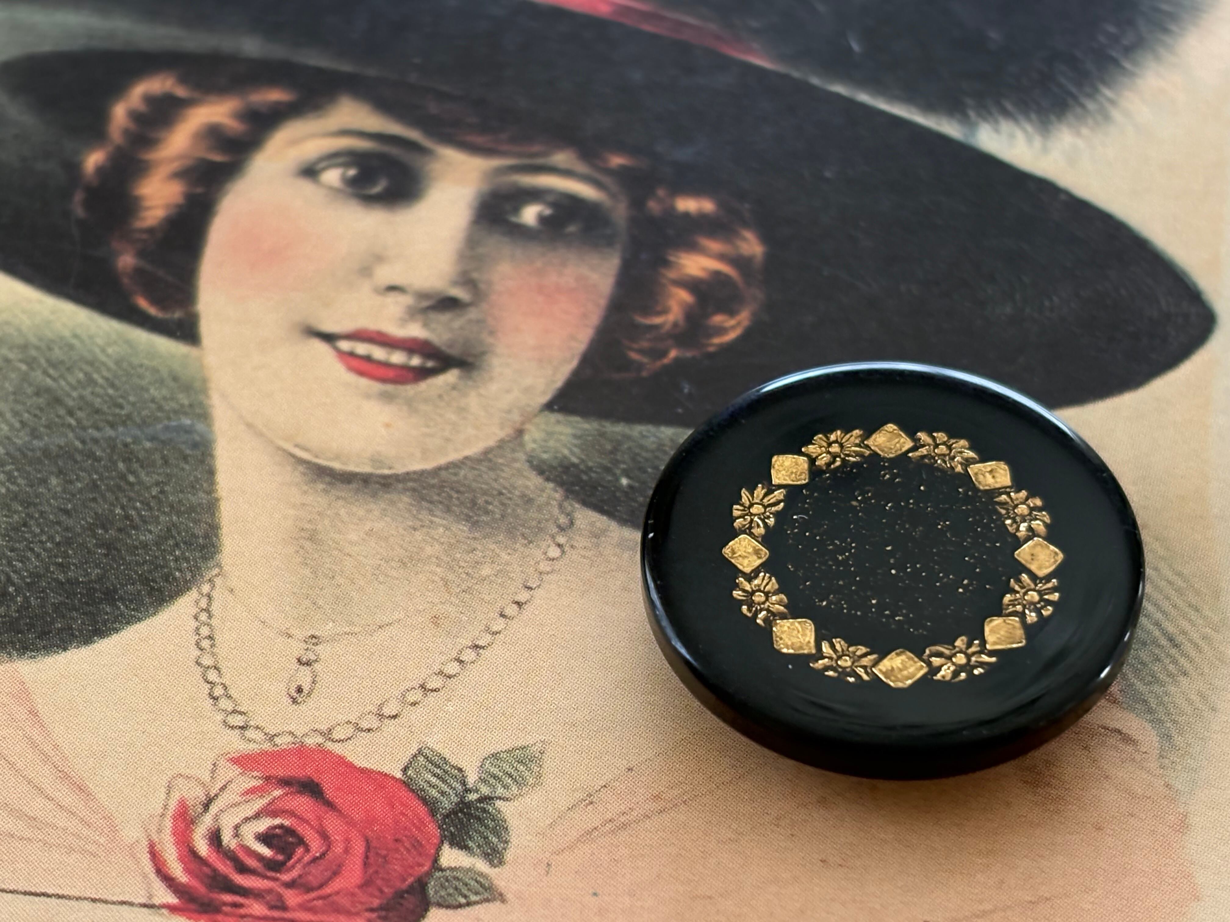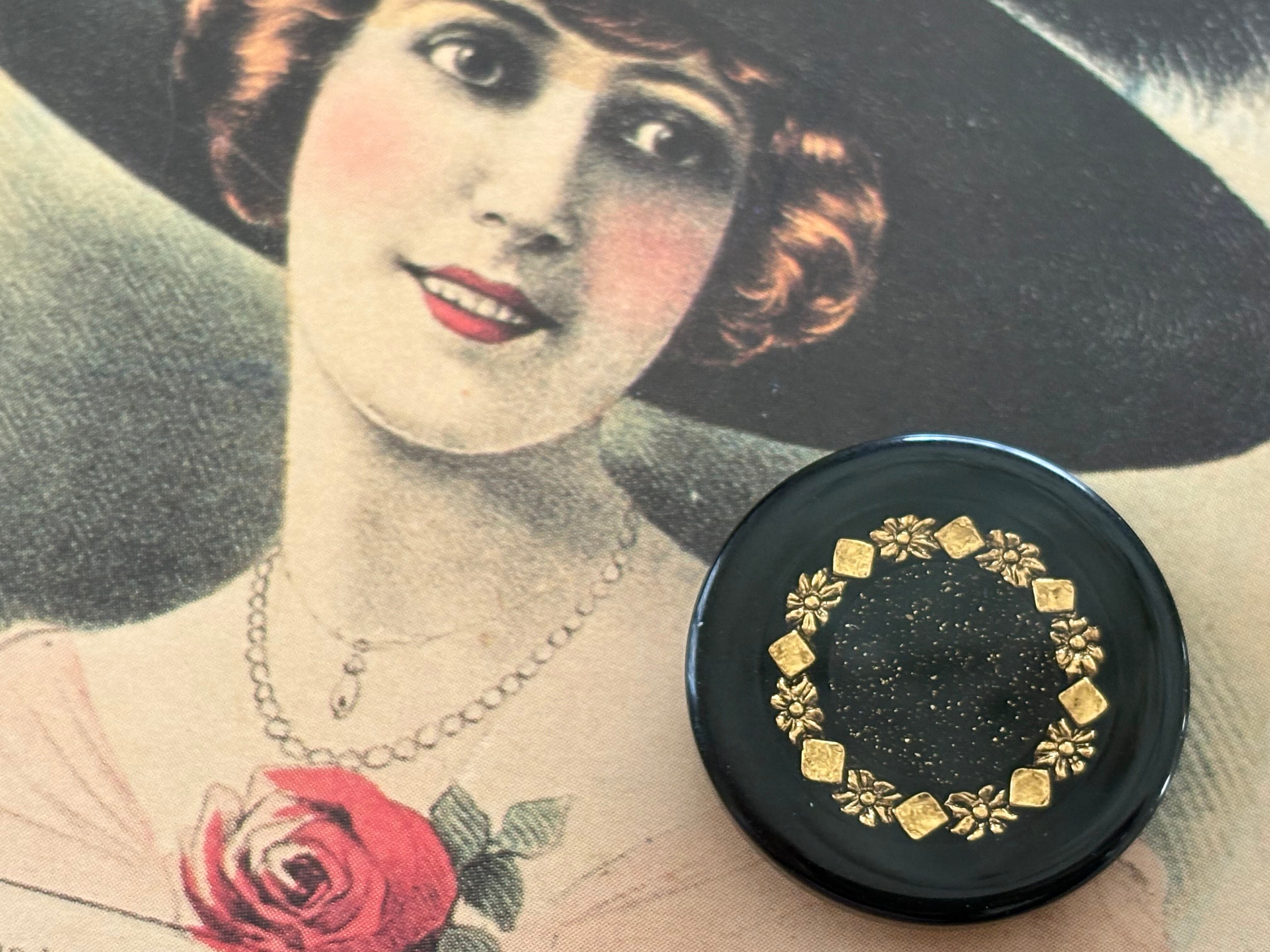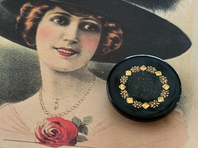 25mm Japanese Vintage ボタン ブラック×ゴールド グリッター レトロ アクセサリーパーツ 装飾材 カルトナージュ
