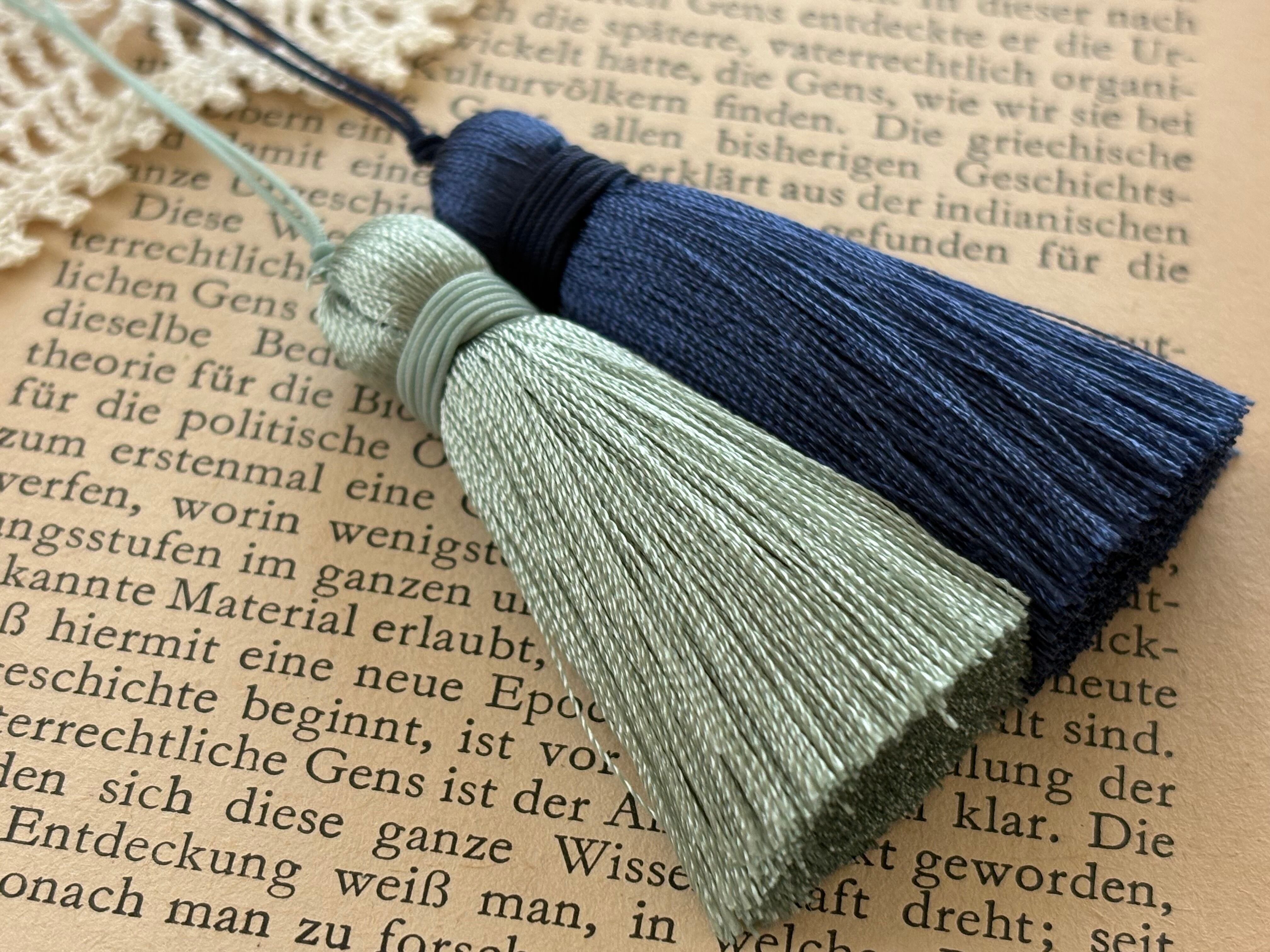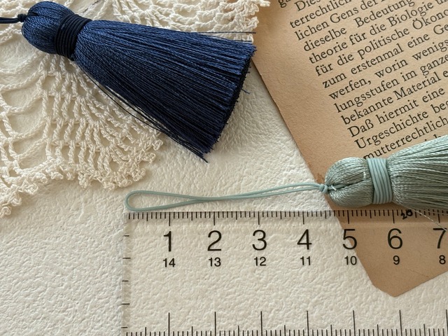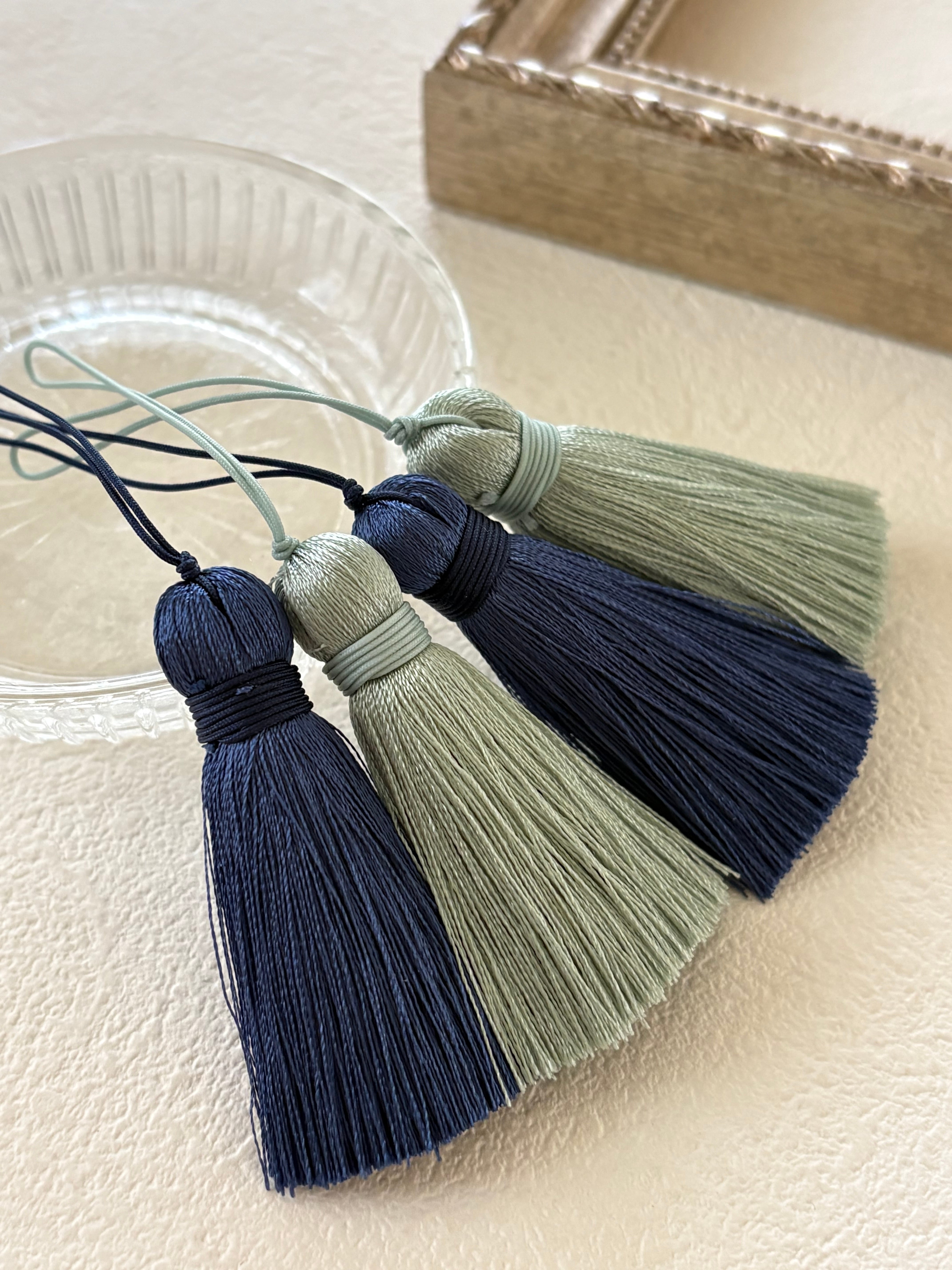 落ち着いた風合いのブルー系、グリーン系のシンプルエレガントなタッセルです。