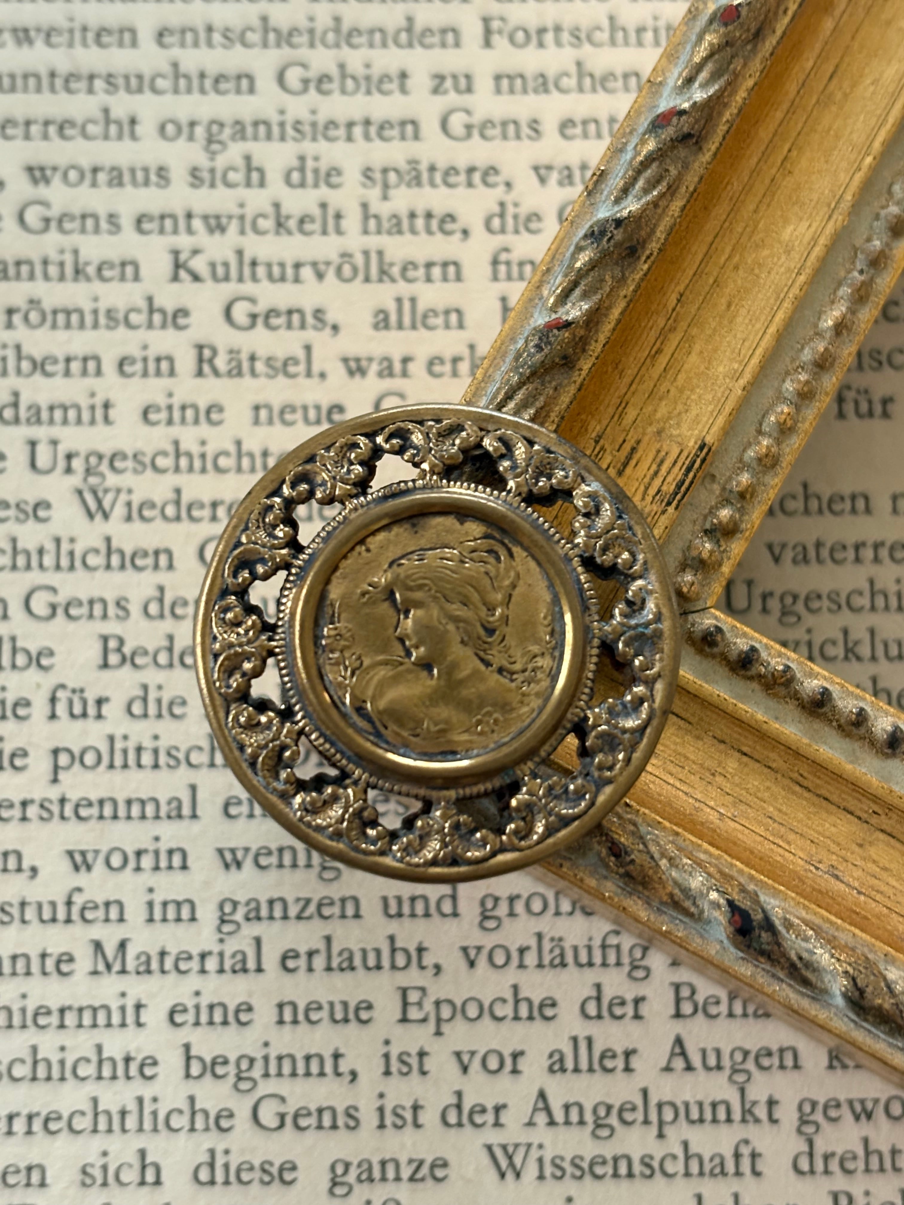 26mm フランスアンティークボタン メタルボタン 貴婦人 透かし アクセサリーパーツ コレクション