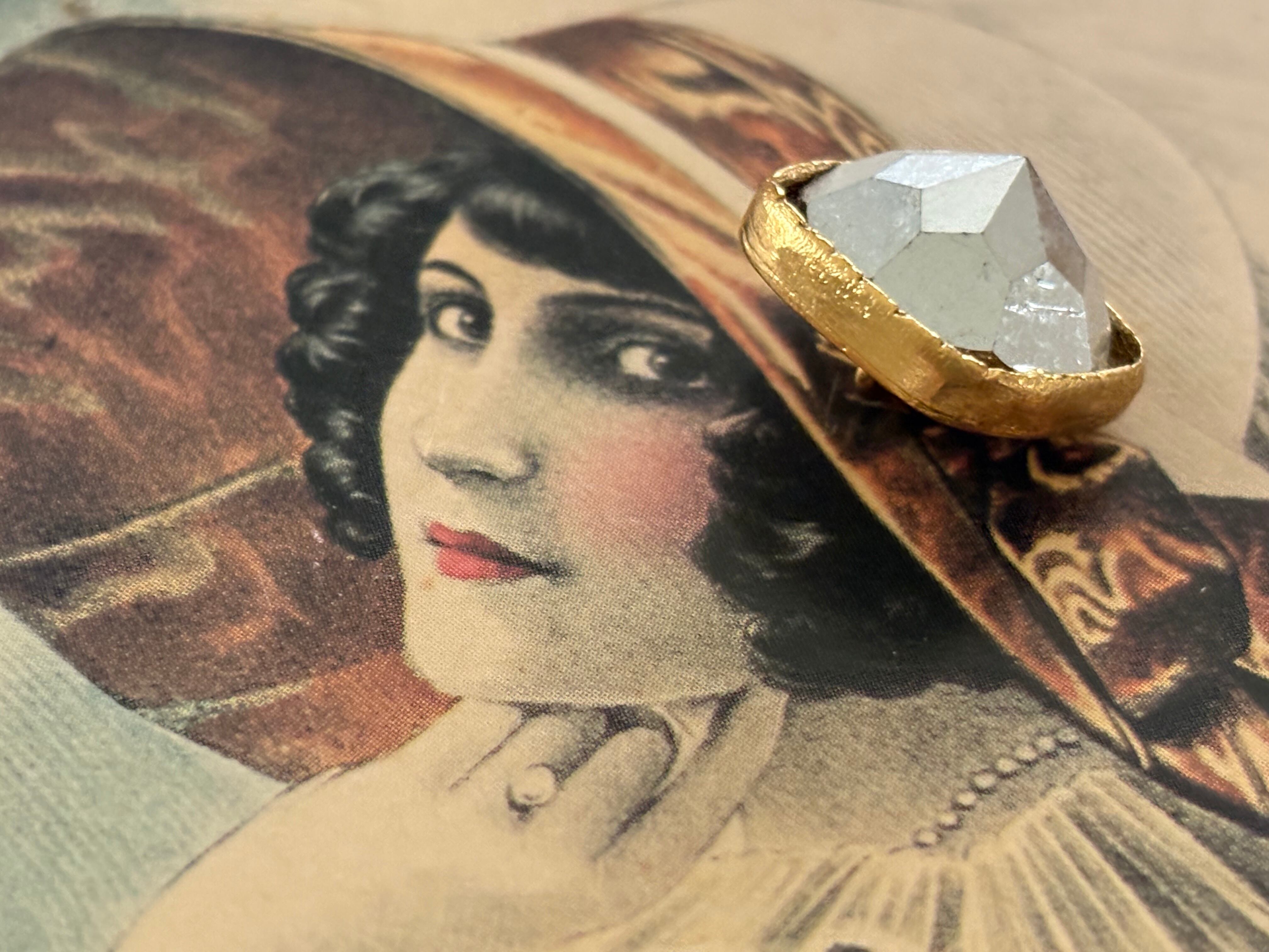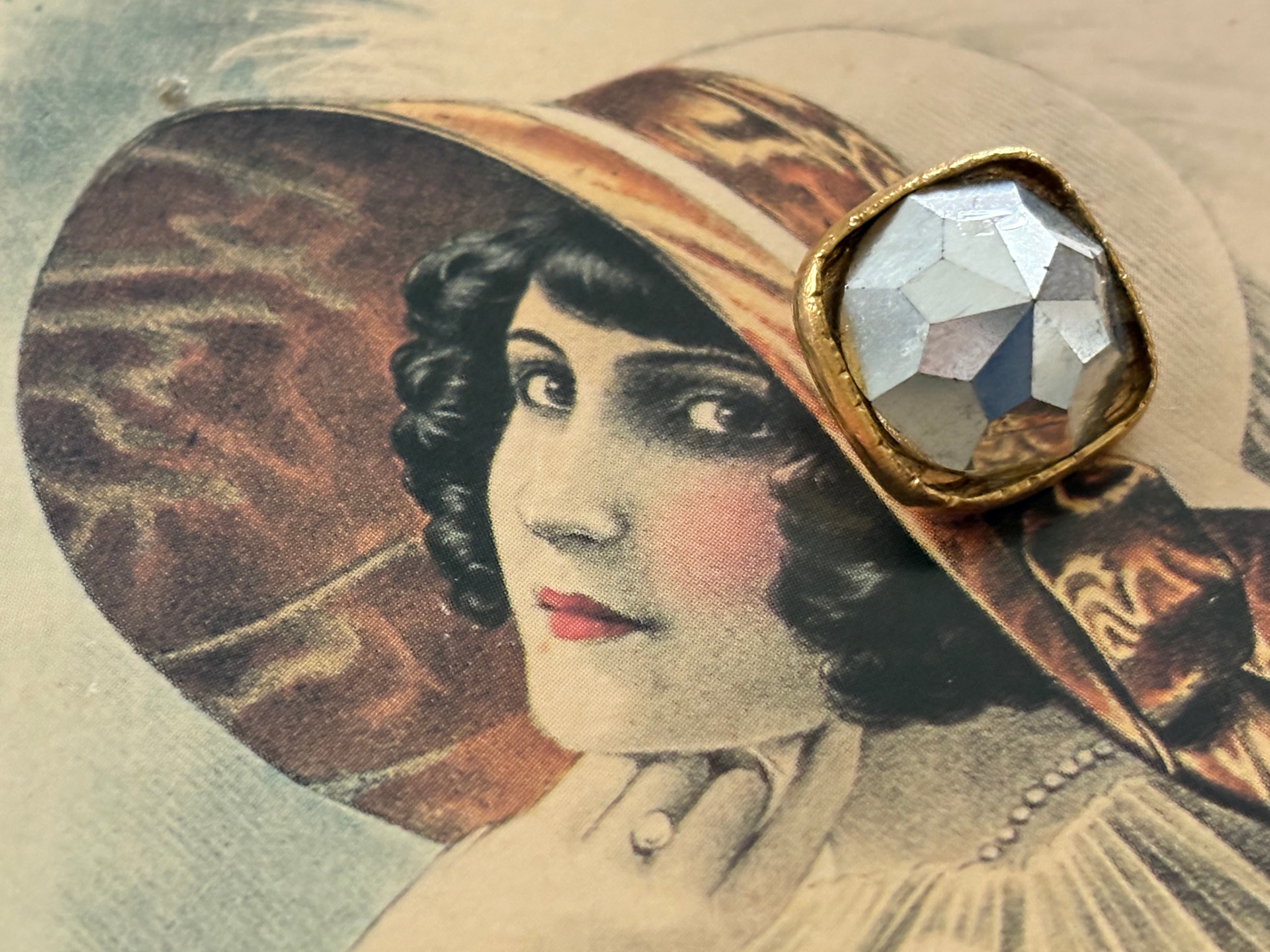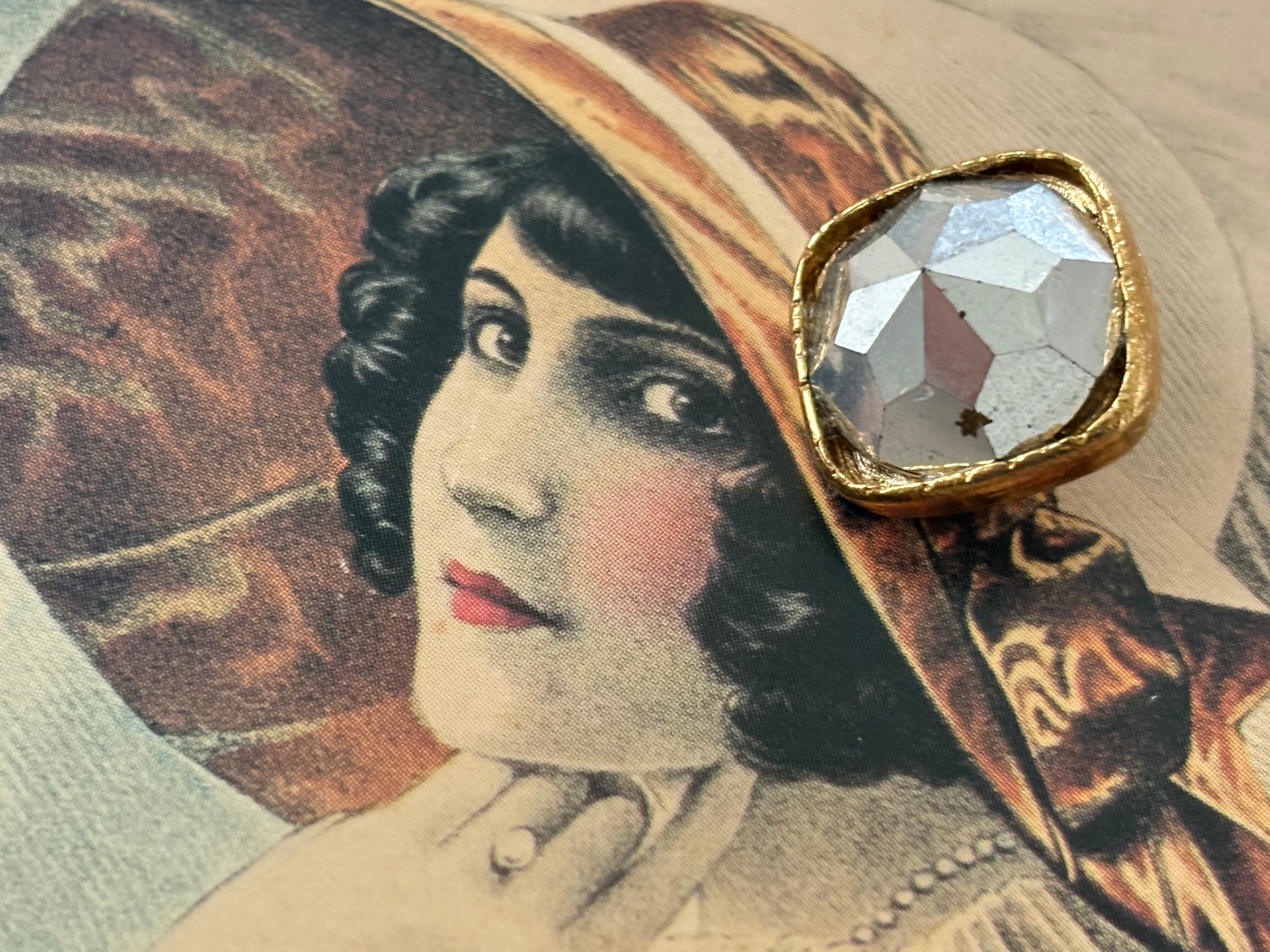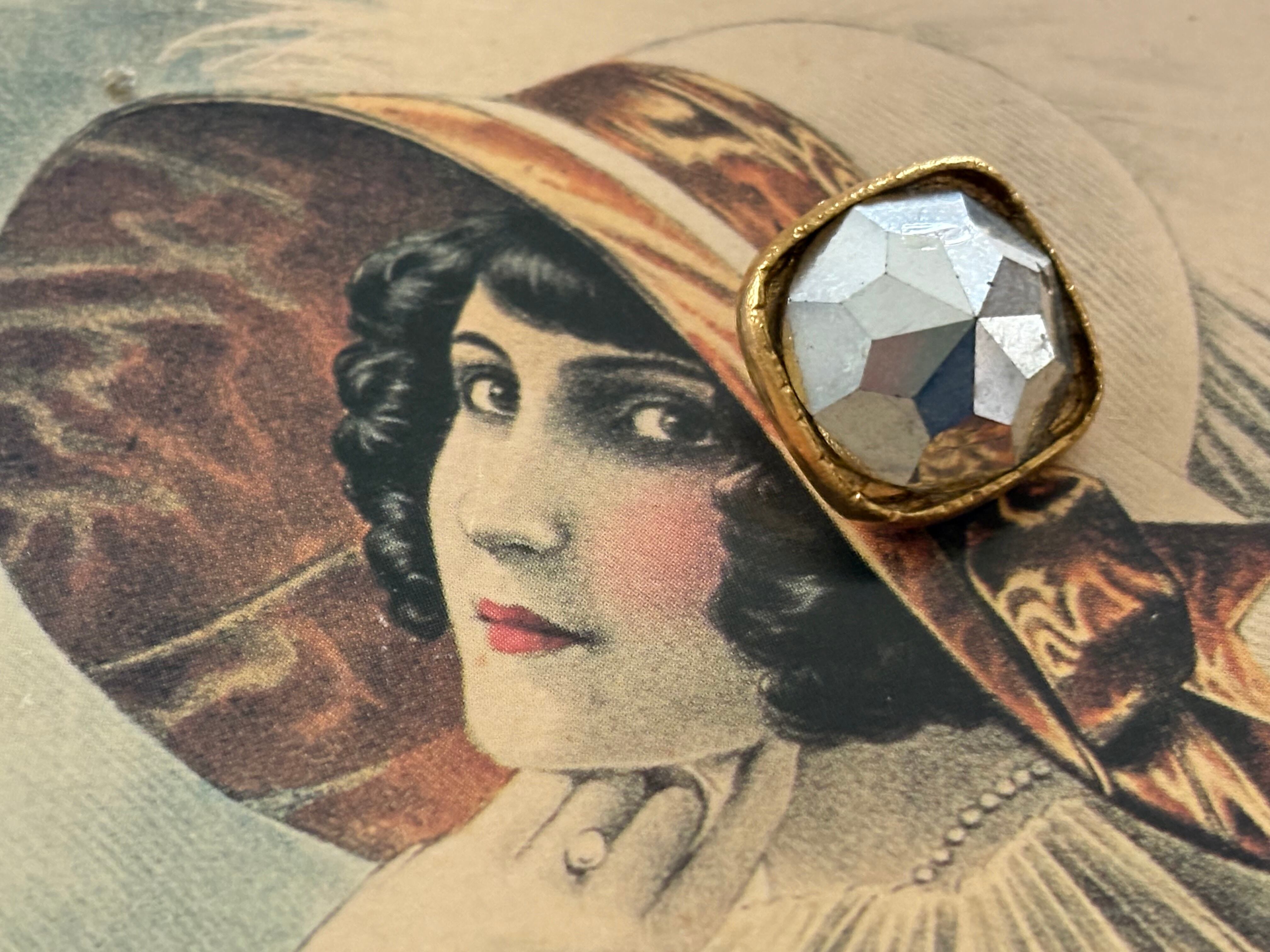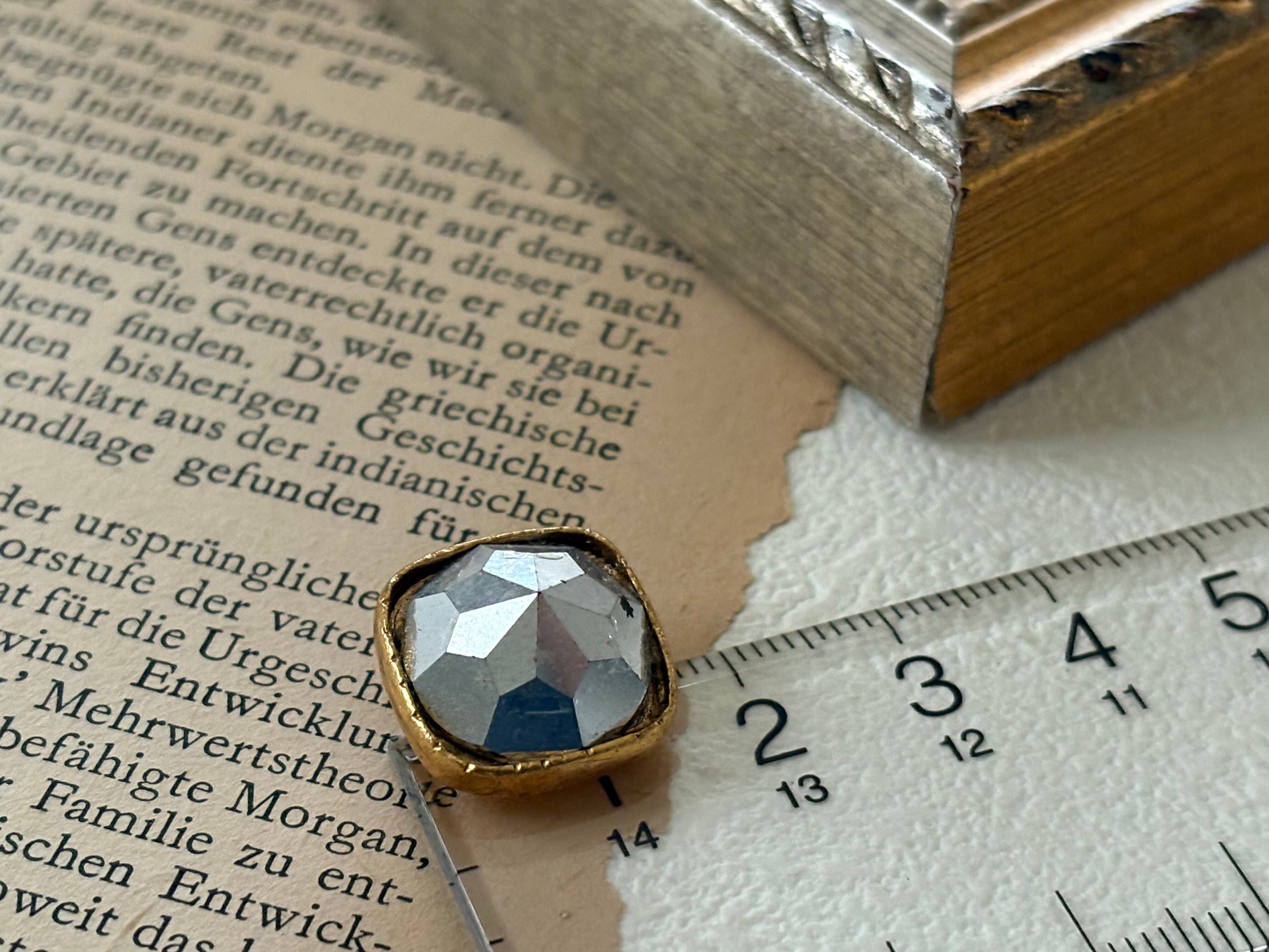 しっかりとしたゴールドカラーのメタルの台座に画像の様なミラー調で美しいカットのカボション。
