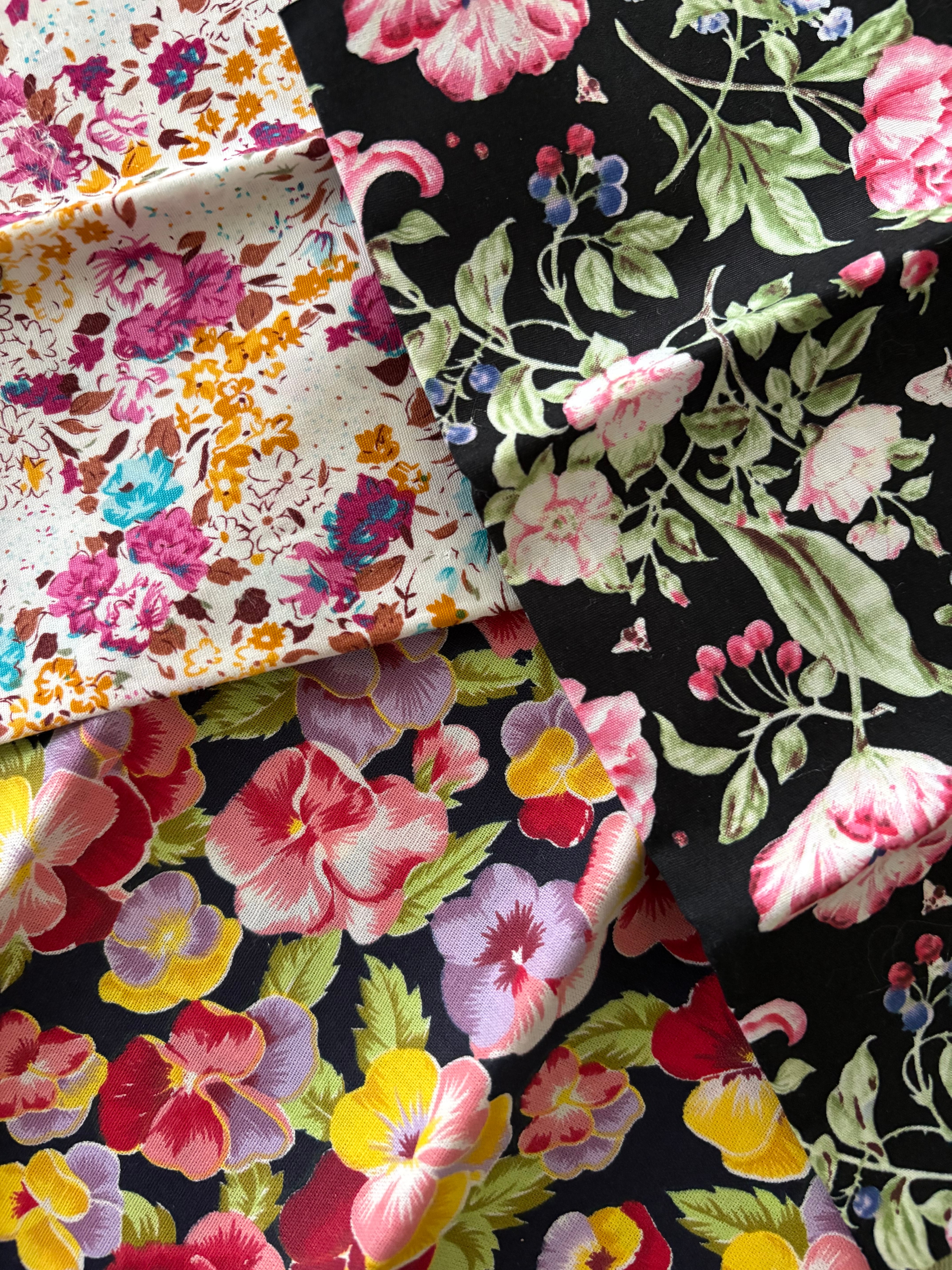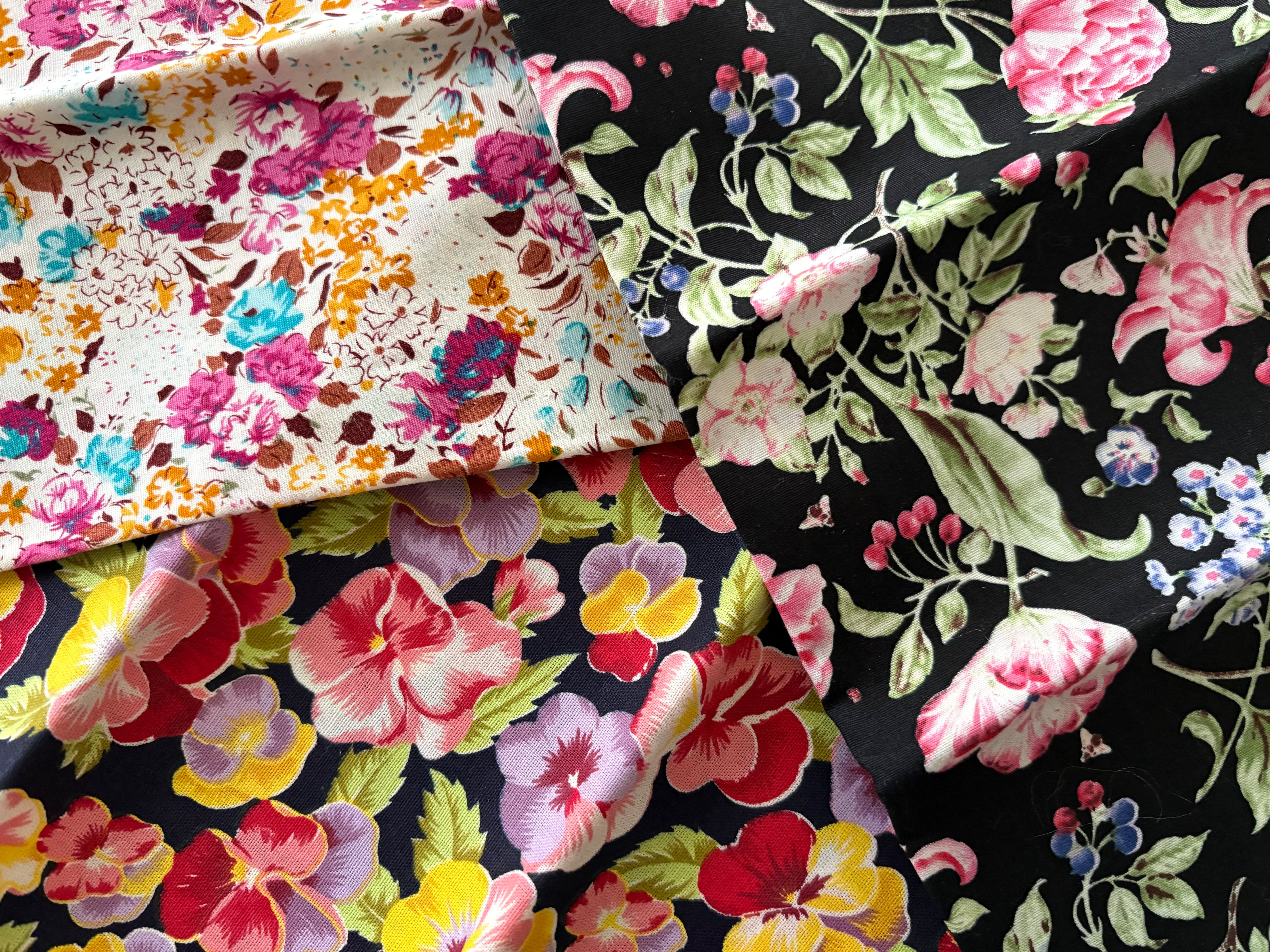 発色の良い鮮やかな花柄のカットファブリック3種のセットになります。