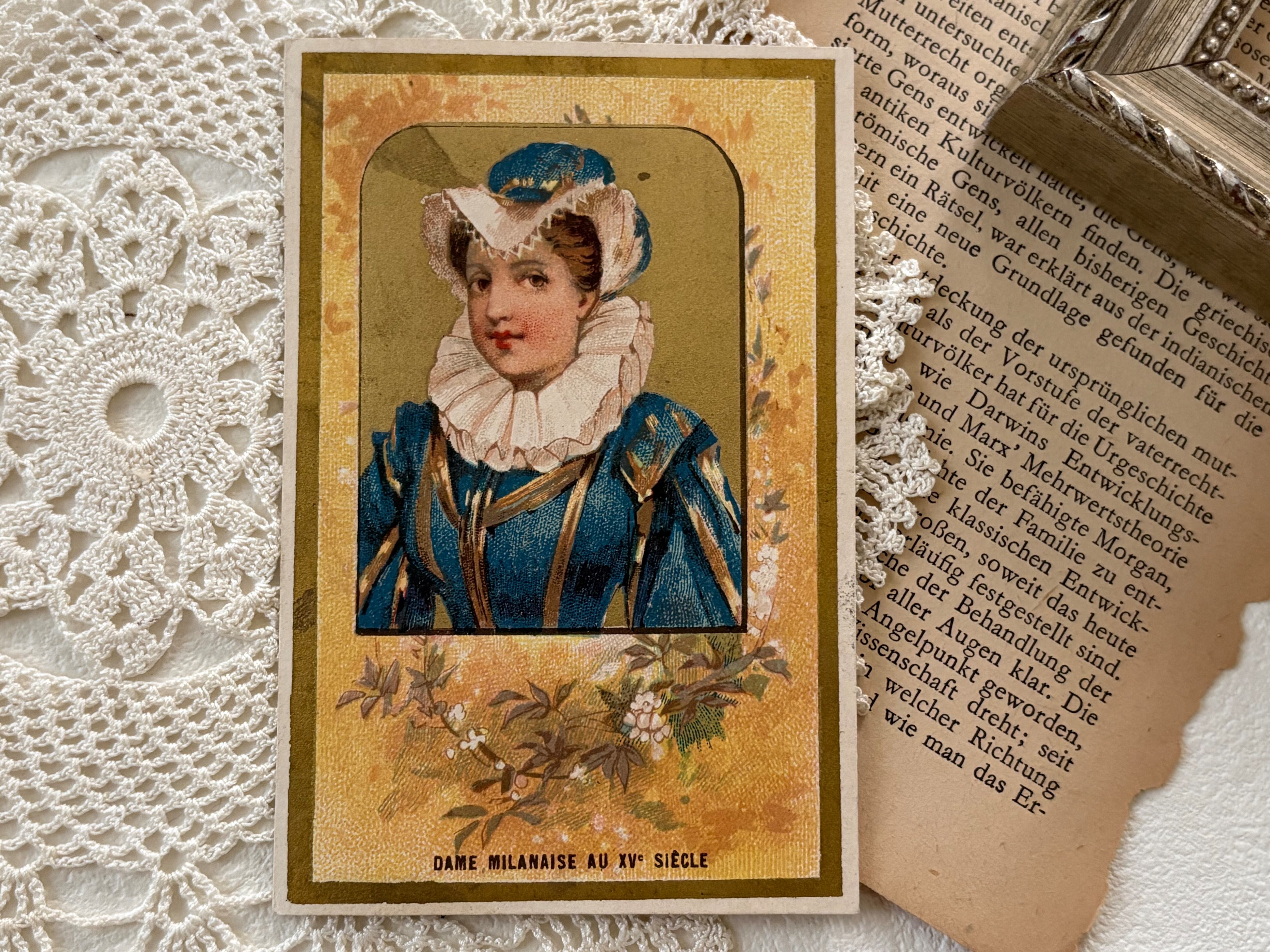フランス アンティーク クロモカード Guerin-Boutron 夫人画 コラージュ 額装 インテリア BE