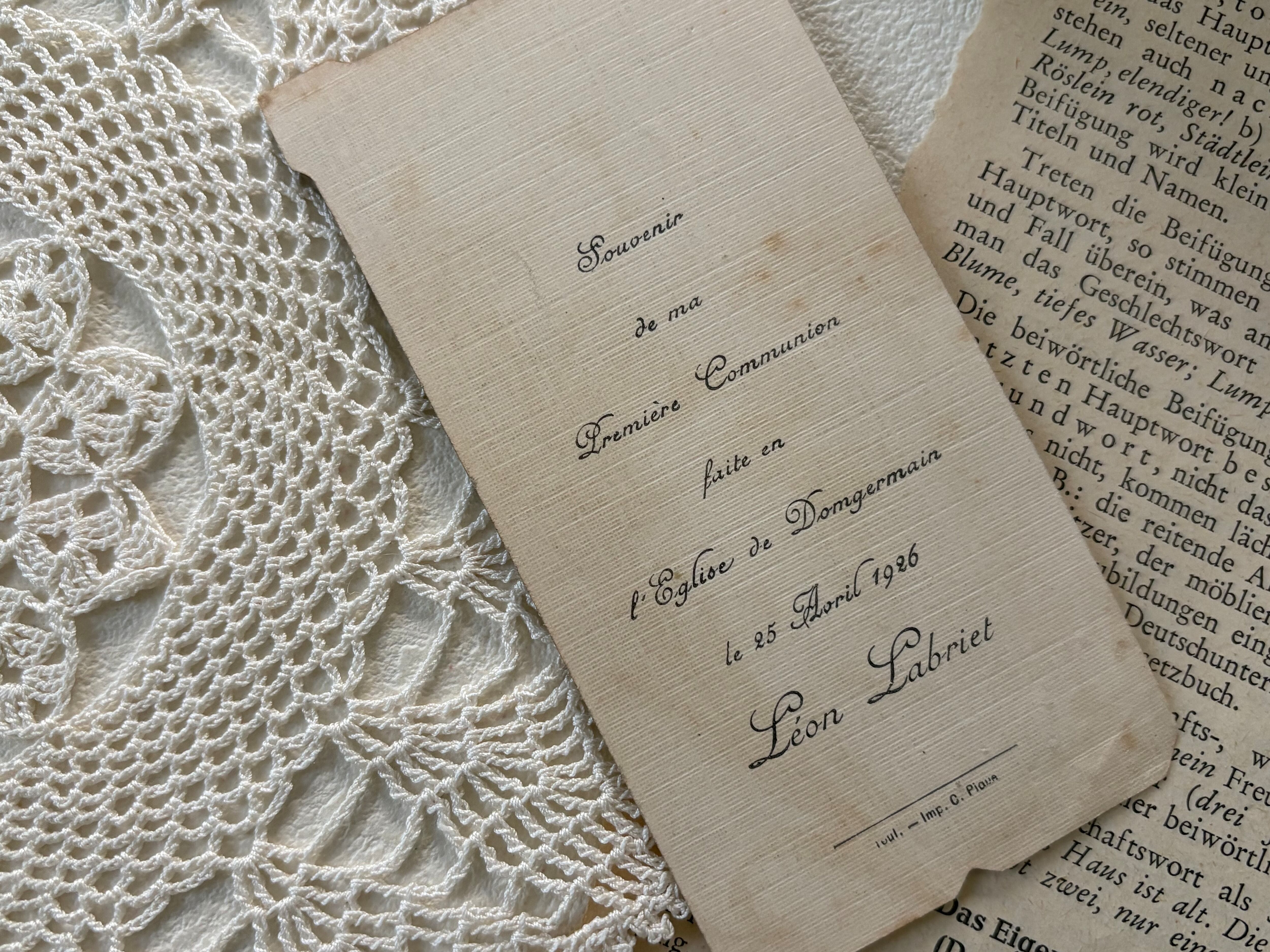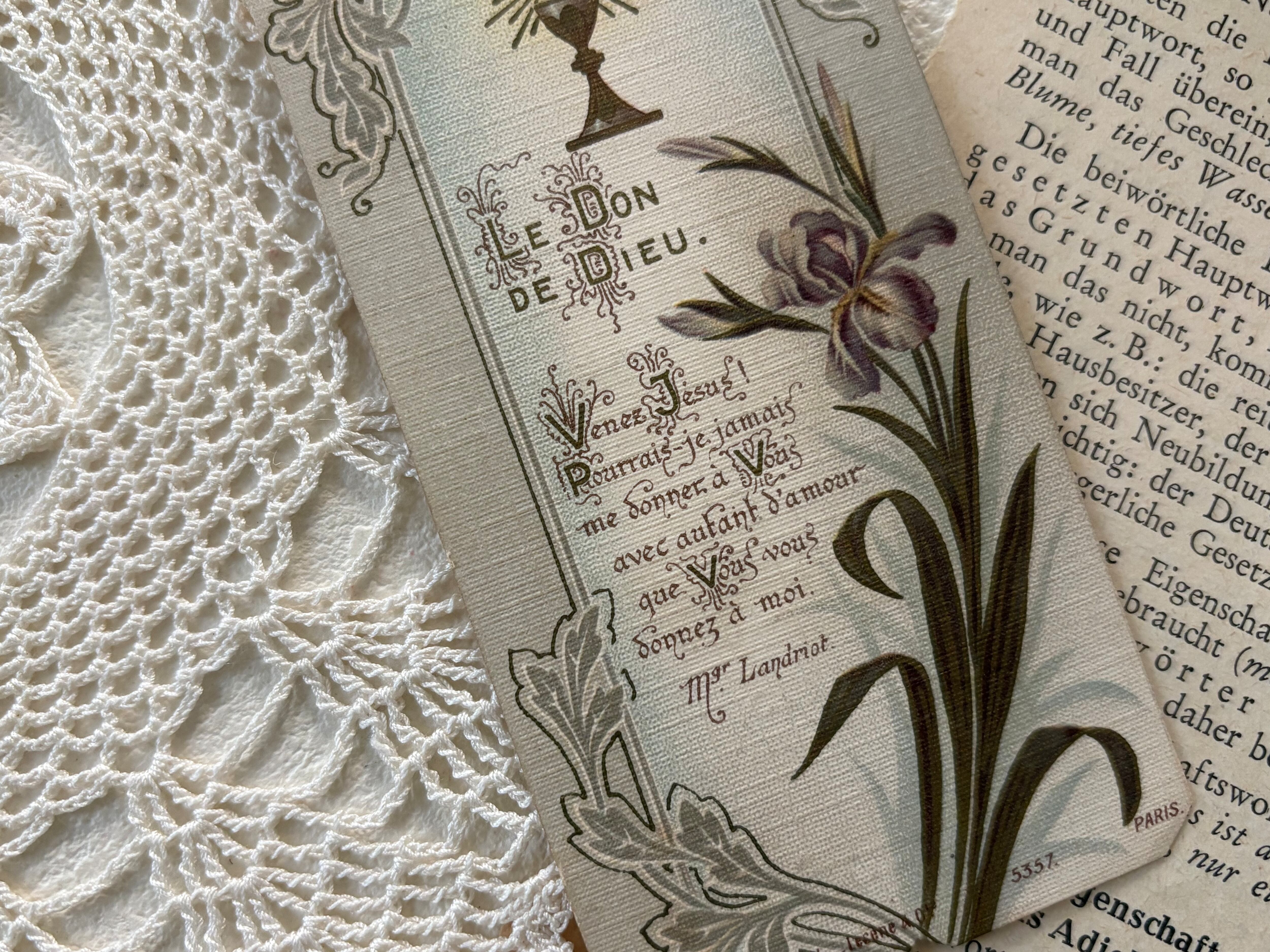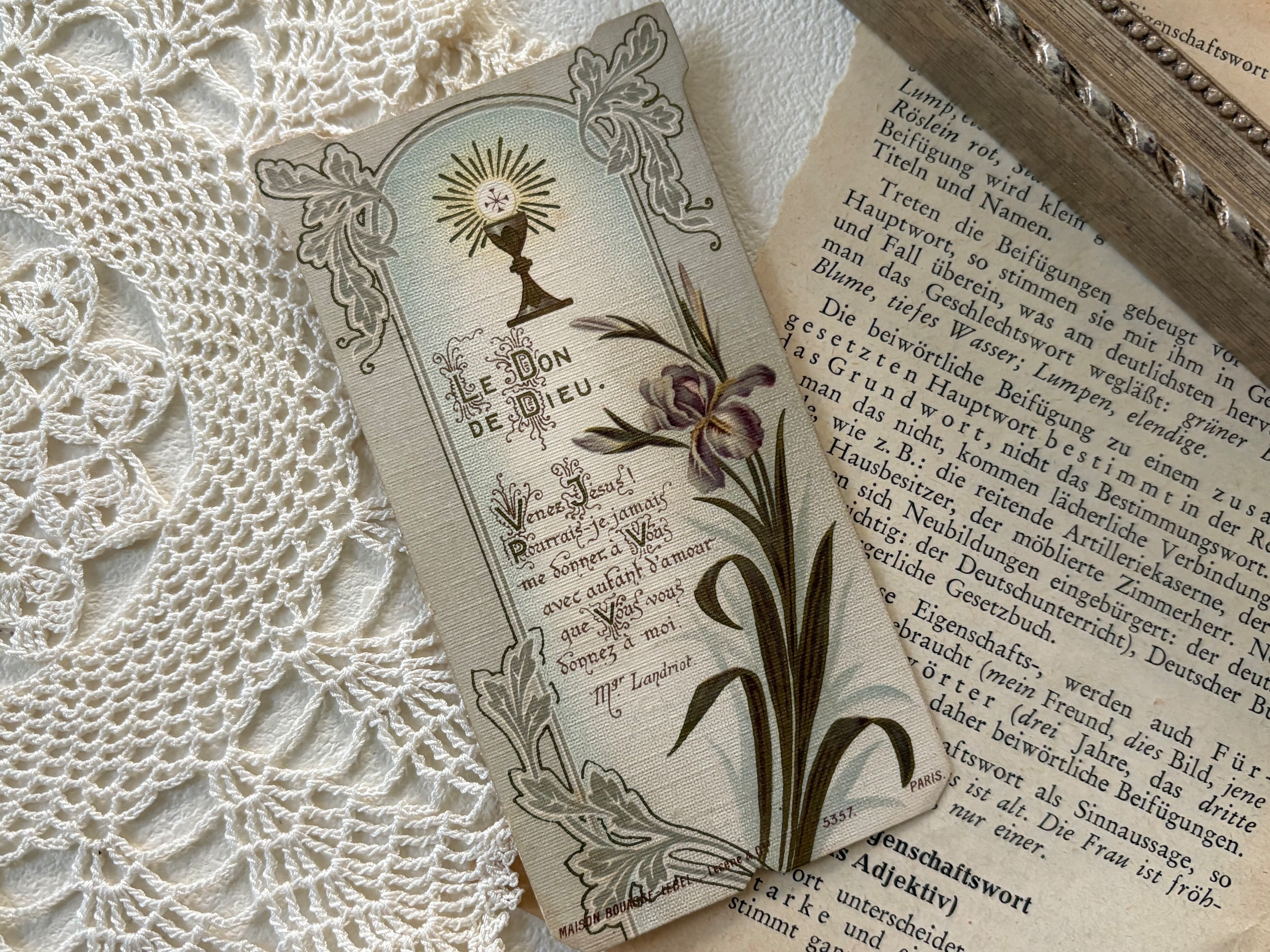 フランスアンティーク Holy Card ホーリーカード プルミエール コミュニオン アイリス 聖杯 1926年 額装 コレクション 撮影小物