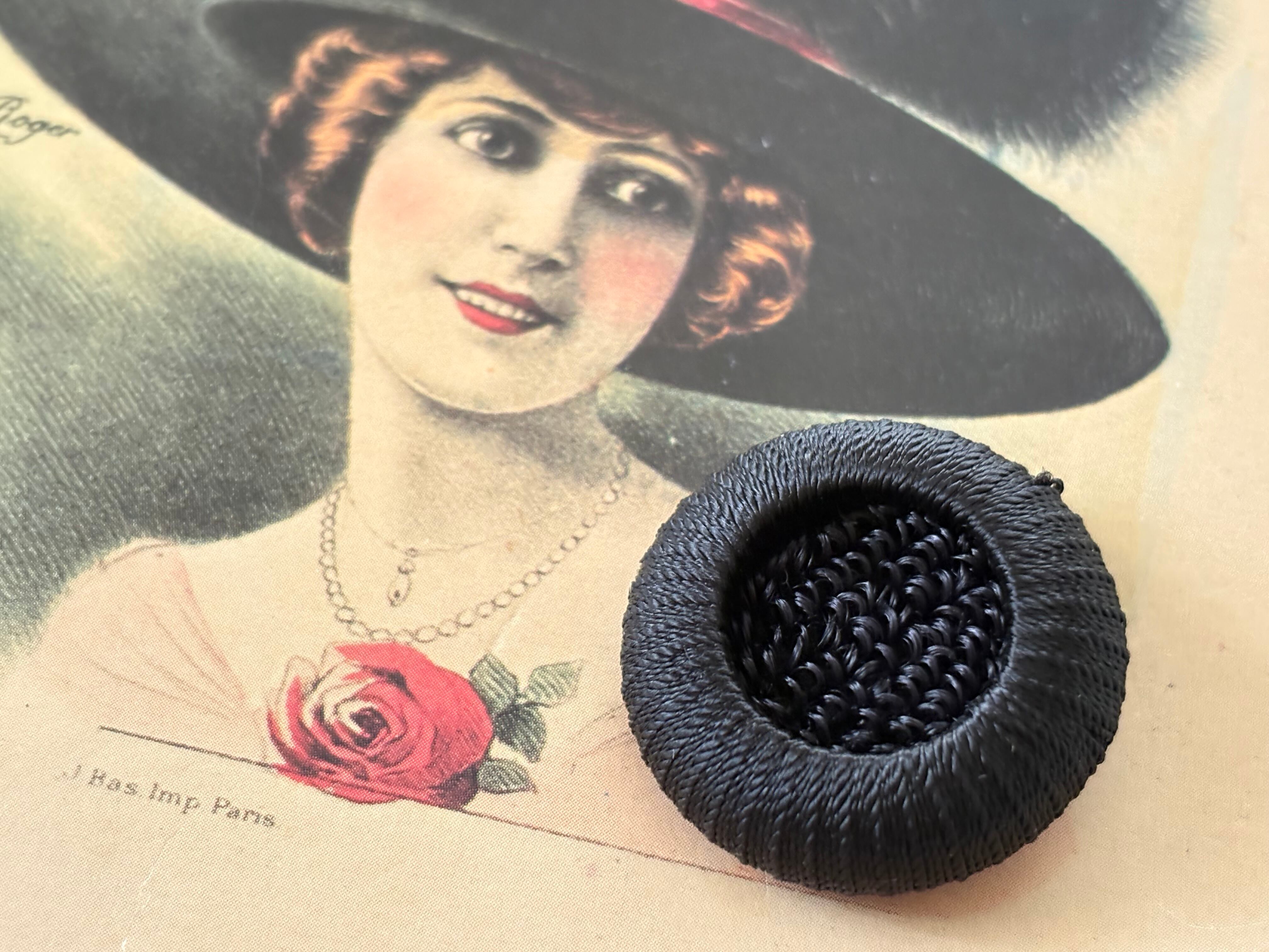 30mm Japanese Vintage ボタン コードボタン ブラック デッドストック レトロボタン アクセサリーパーツ 装飾材 カルトナージュ