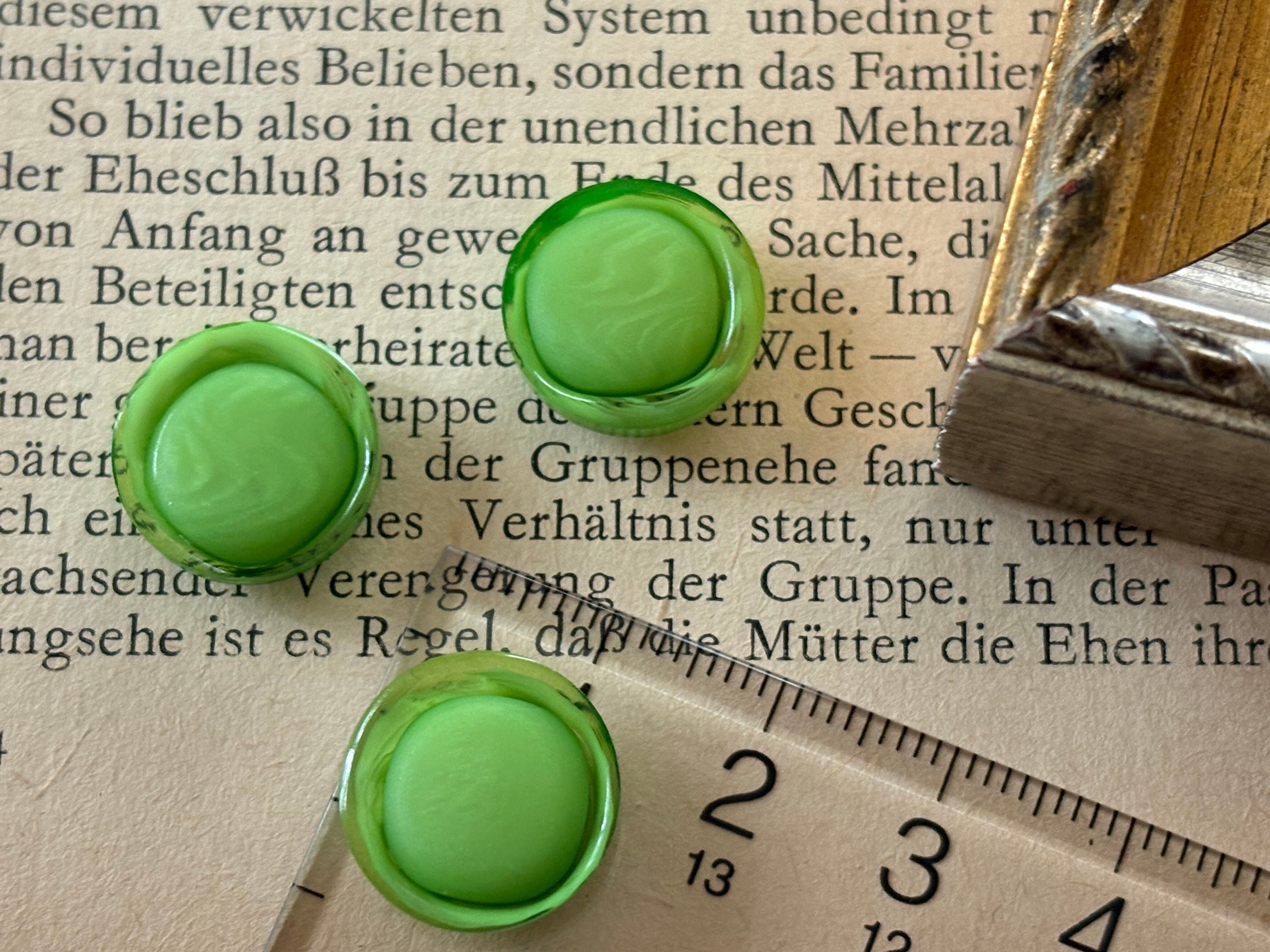 目をひく鮮やかなだイエローグリーンの小さなレトロボタンです。
