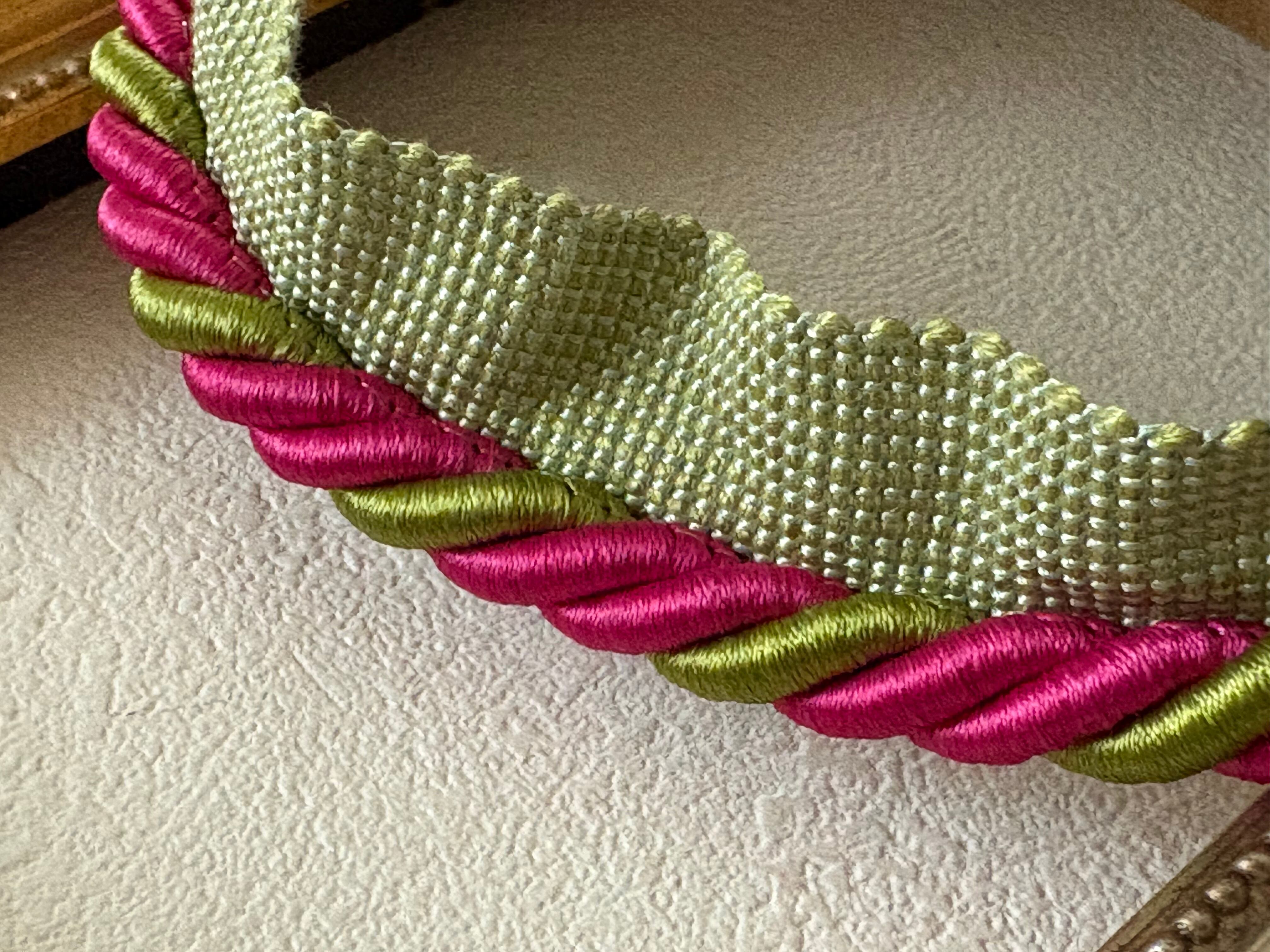 フランス 輸入デザインロープ パイピングコード イエローグリーン×ピンク 幅8mm 100cm /カット カルトナージュ デコレーション材