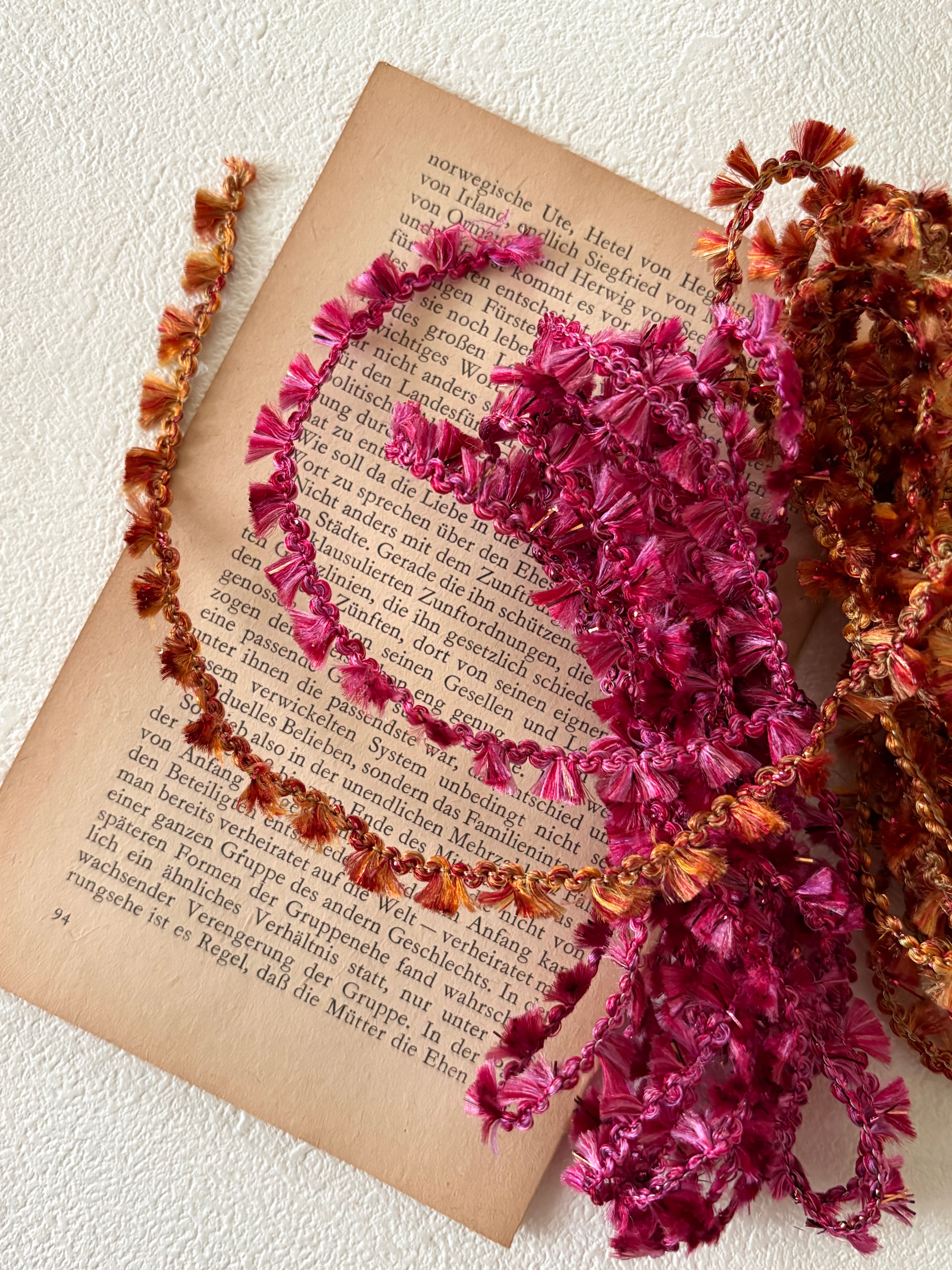 フランス 輸入デザインブレード ワイヤー入りフリンジブレード オレンジ/ピンク 100cm /カット カルトナージュ ラッピング