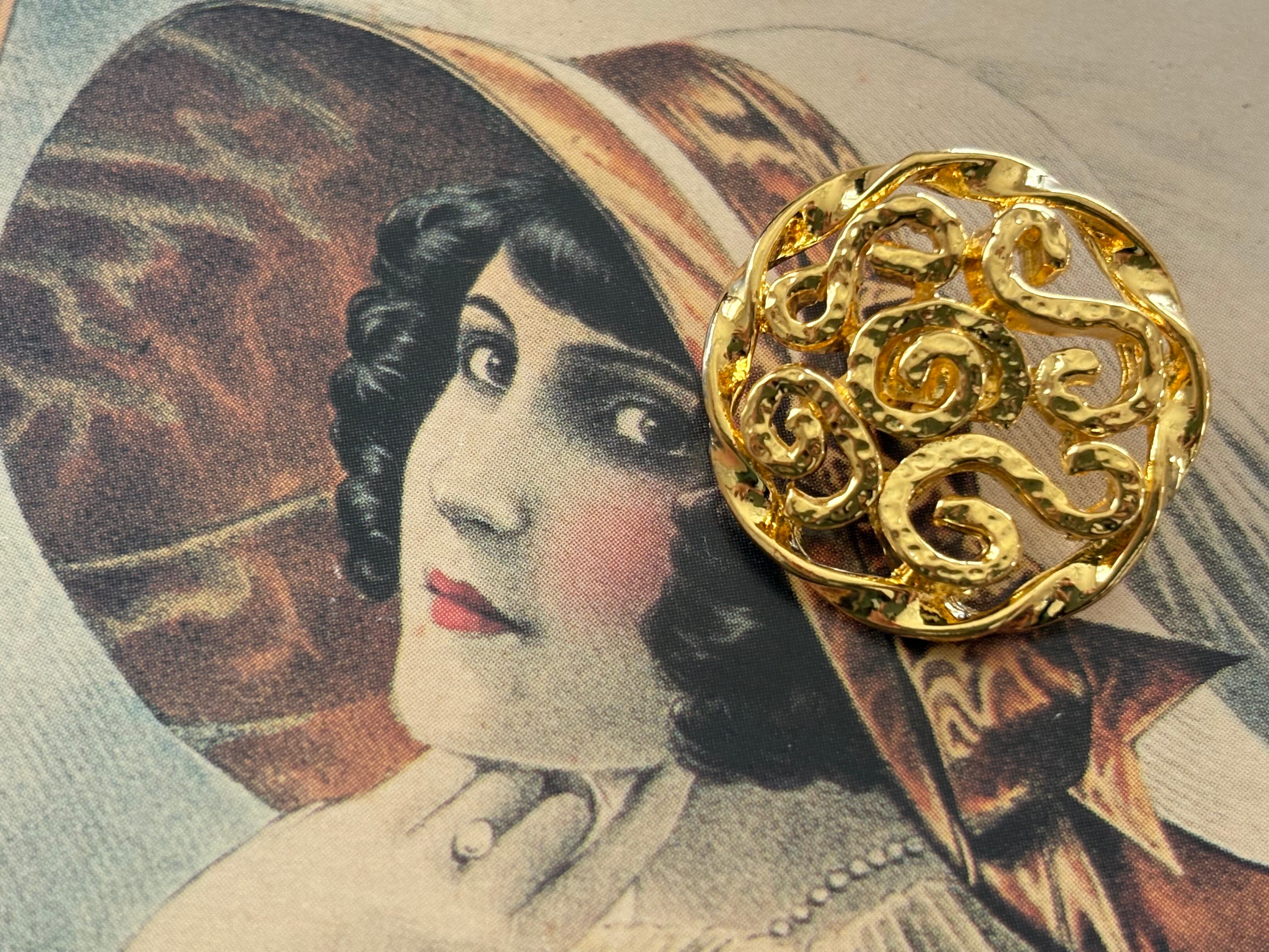 23mm Japaneseヴィンテージボタン 透かし ゴールド メタルボタン アクセサリーパーツ デコレーション材