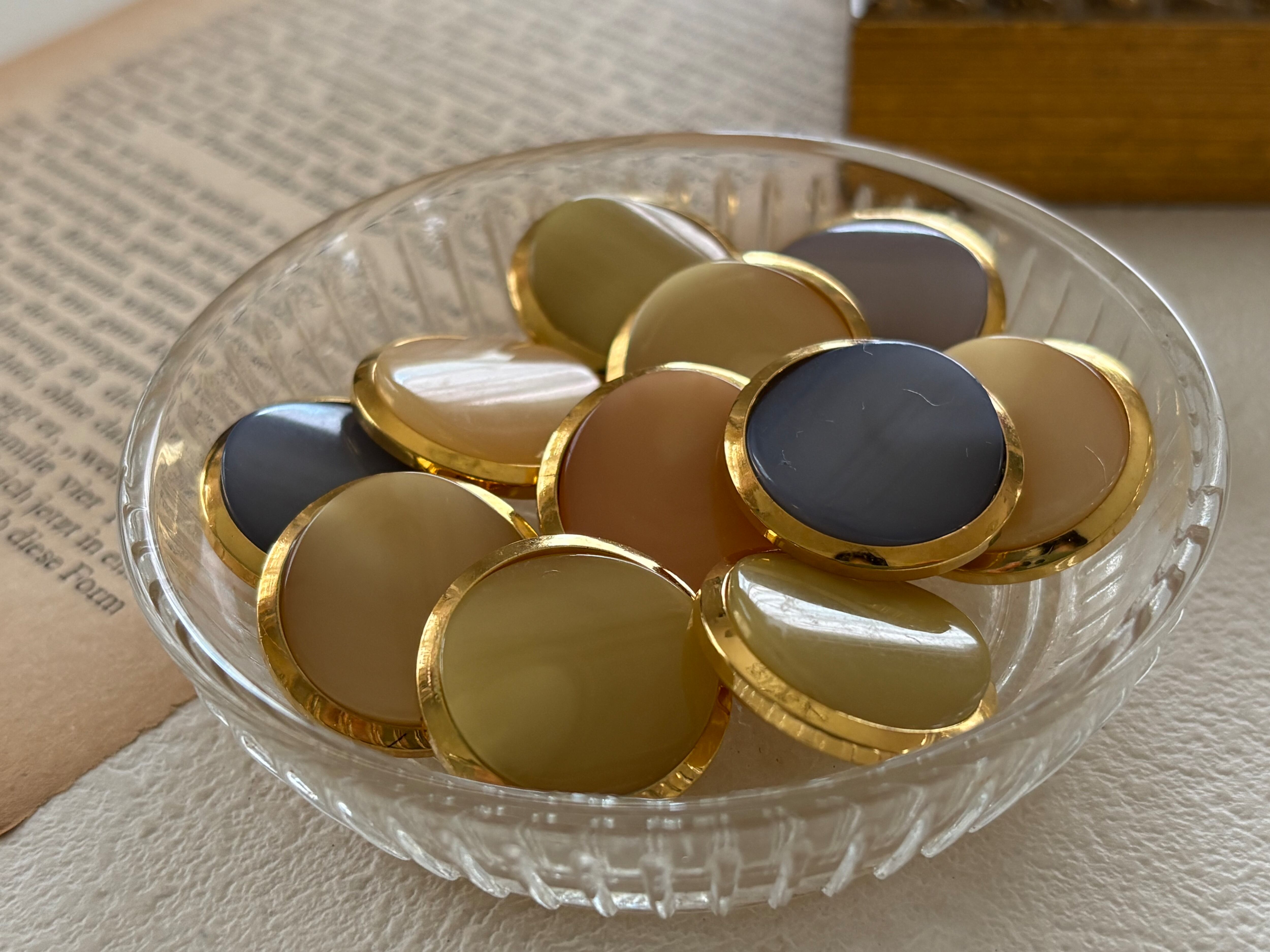 ※インポート、ヴィンテージボタンはもともとキズ、色むら、バリ、サイズの不揃い、多少の汚れなどが見られる場合があります。
