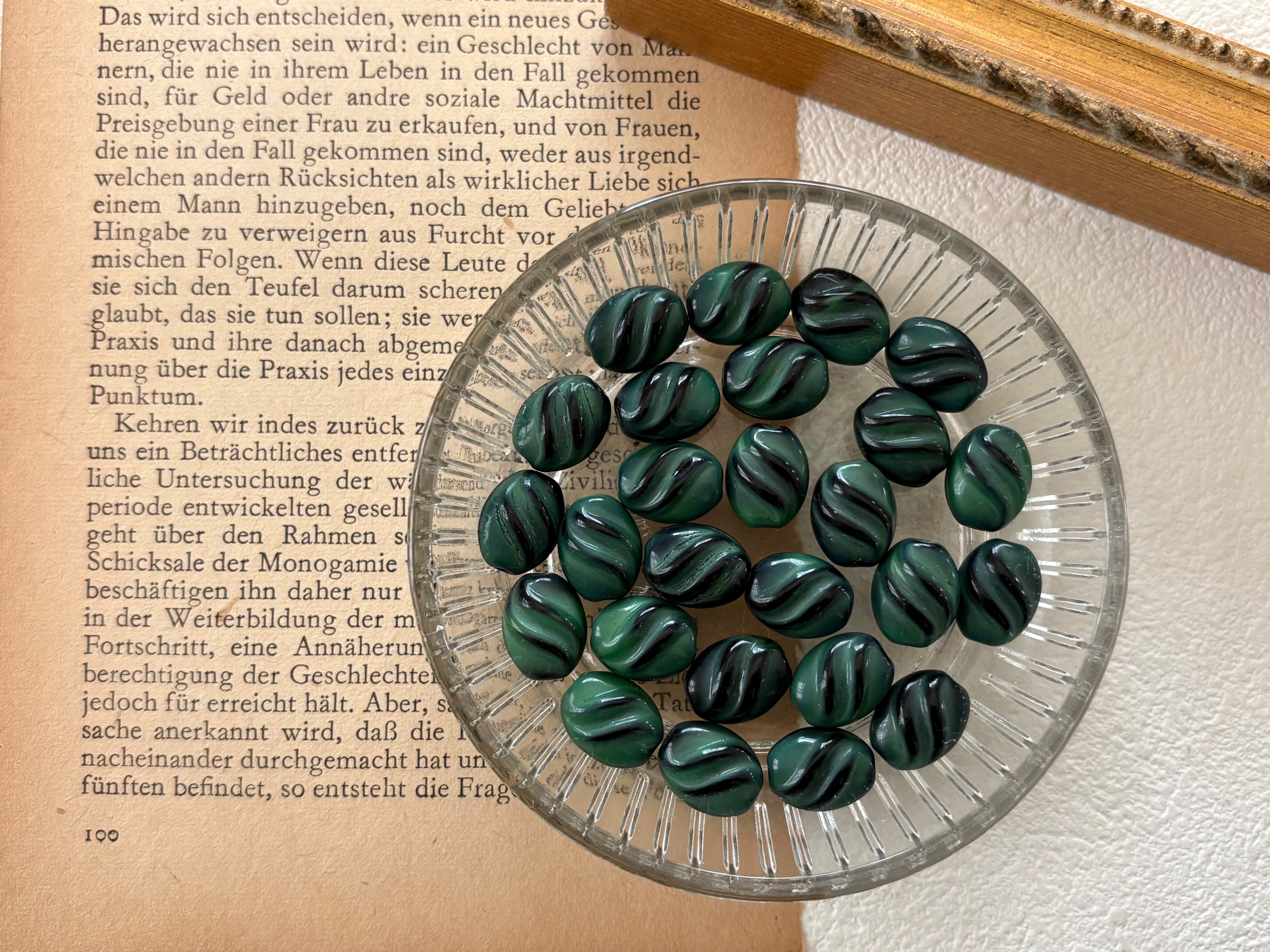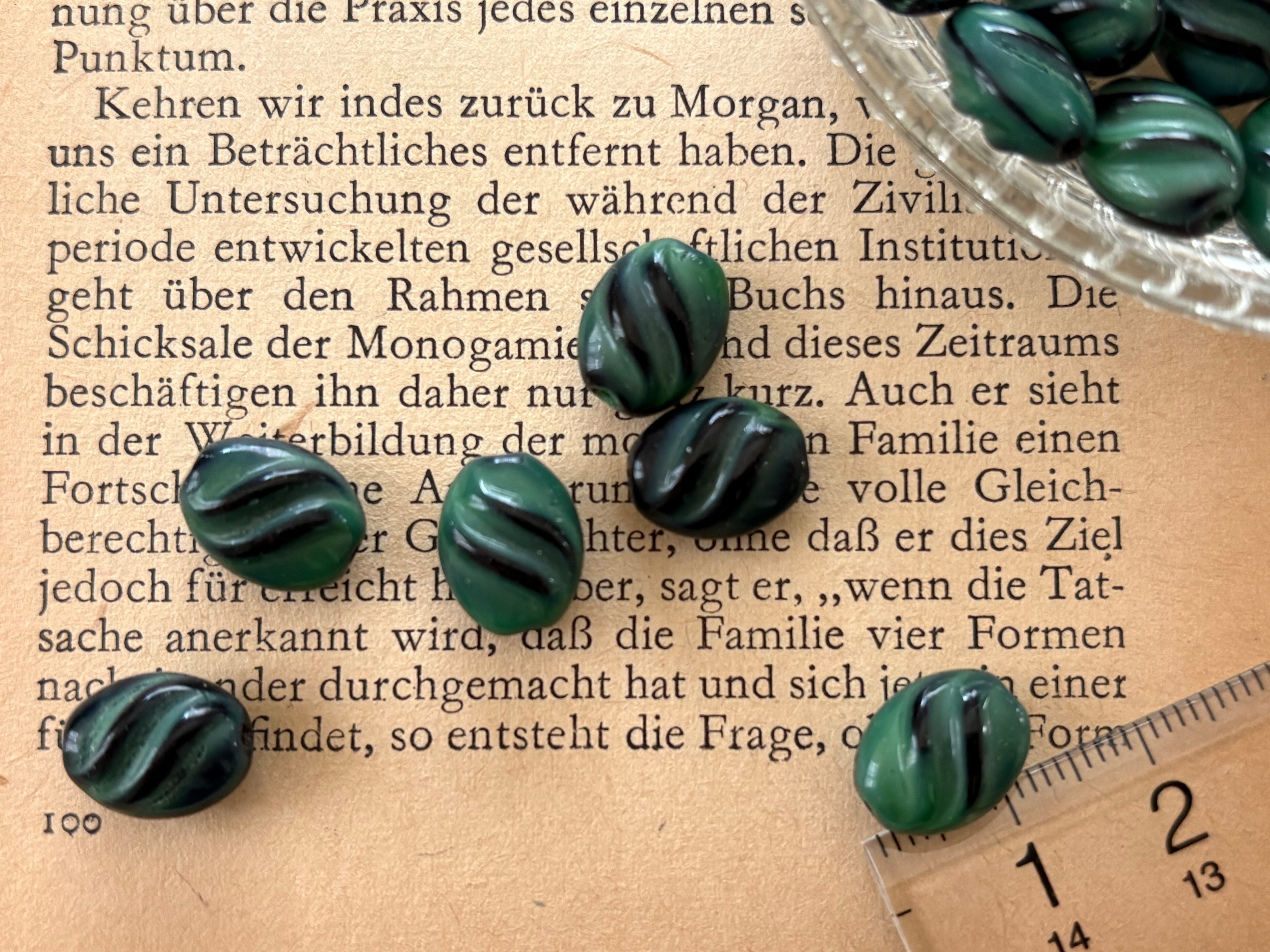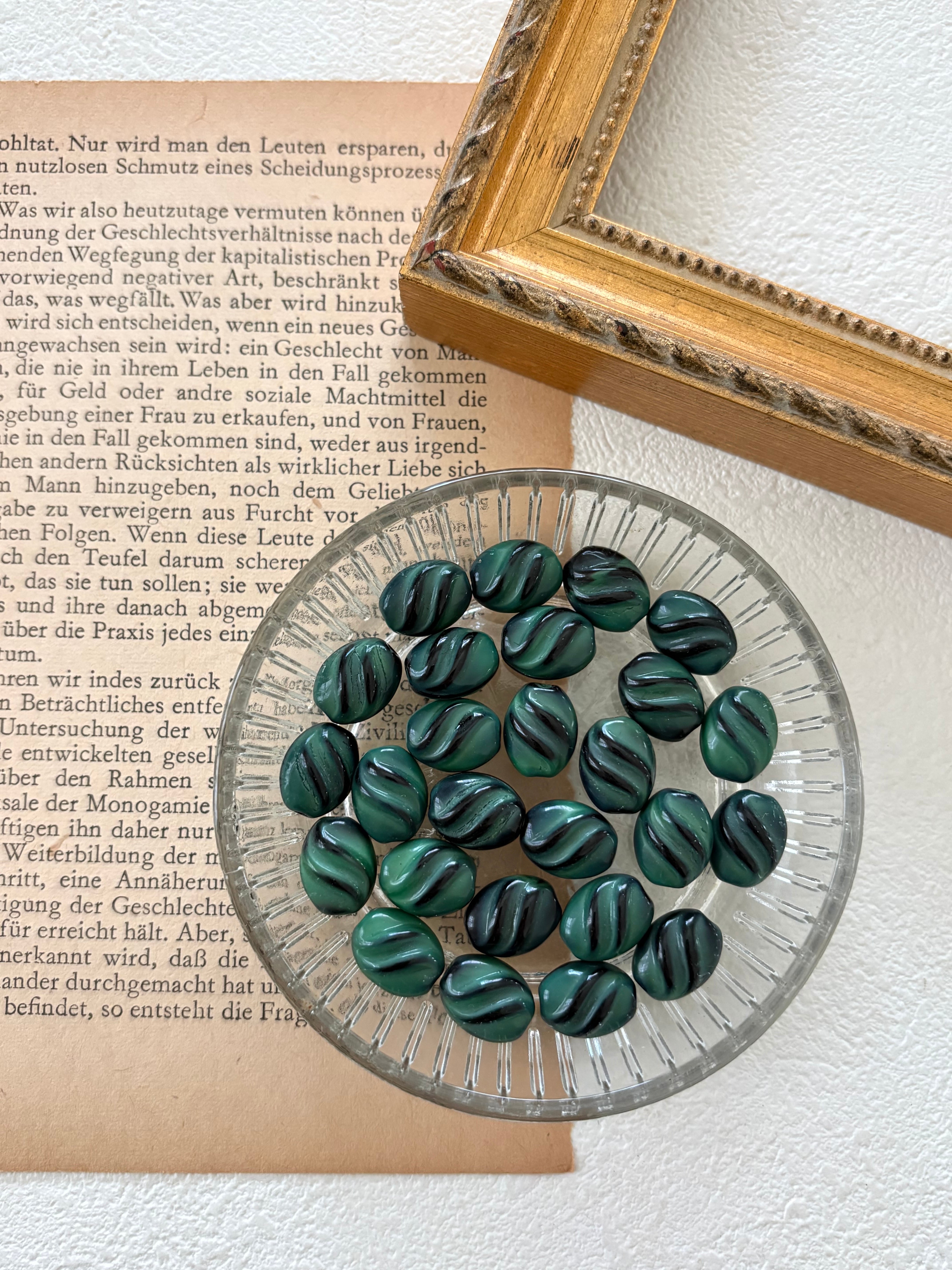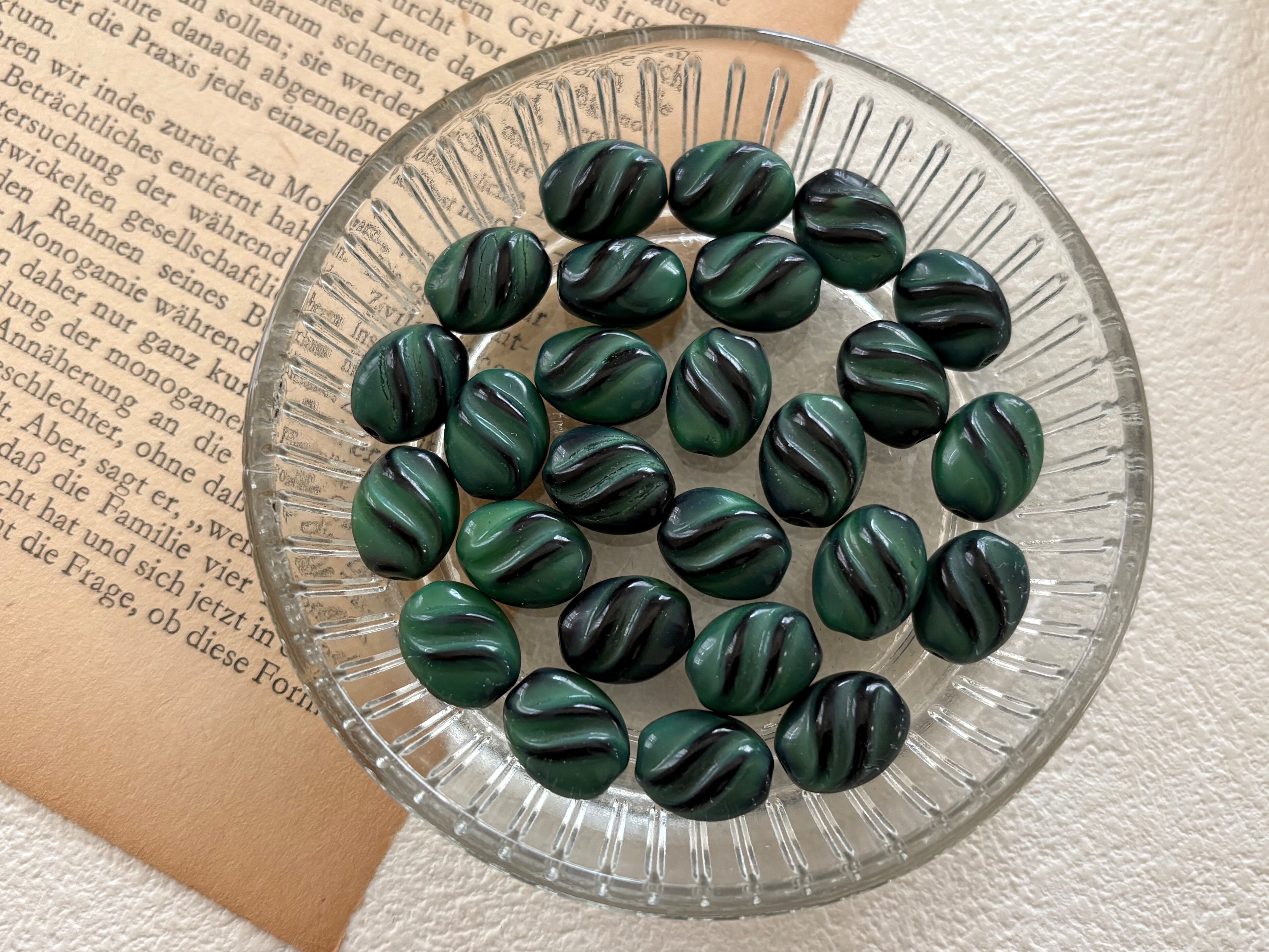 西ドイツVintage ガラスビーズ ツイスト 12mm 6個セット 1950年代 グリーン デッドストック アクセサリーパーツ