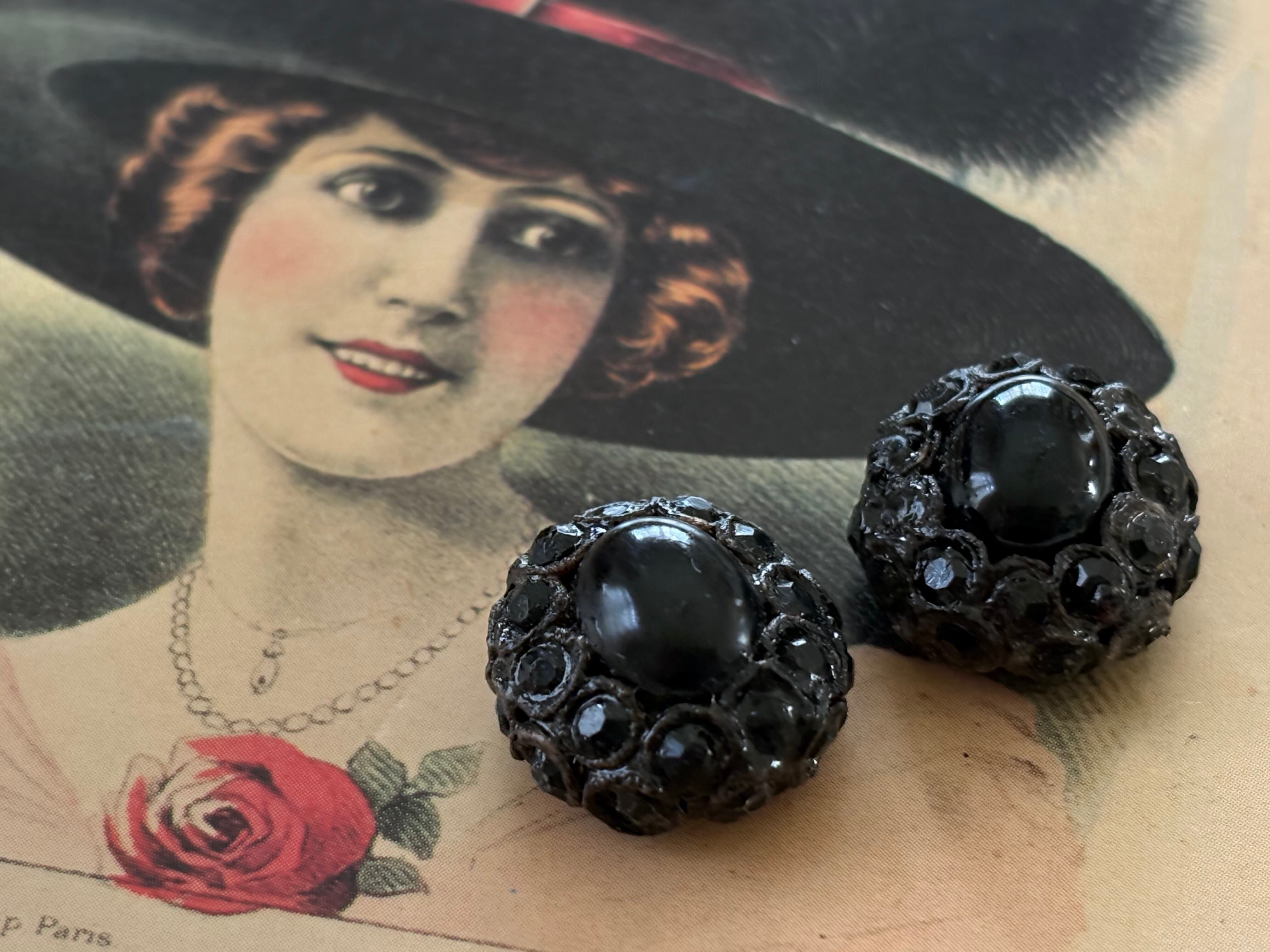19mm×18mm Japanese ヴィンテージボタン カボション オーバル ドーム型 ストーン ブラック アクセサリーパーツ 装飾材 カルトナージュ