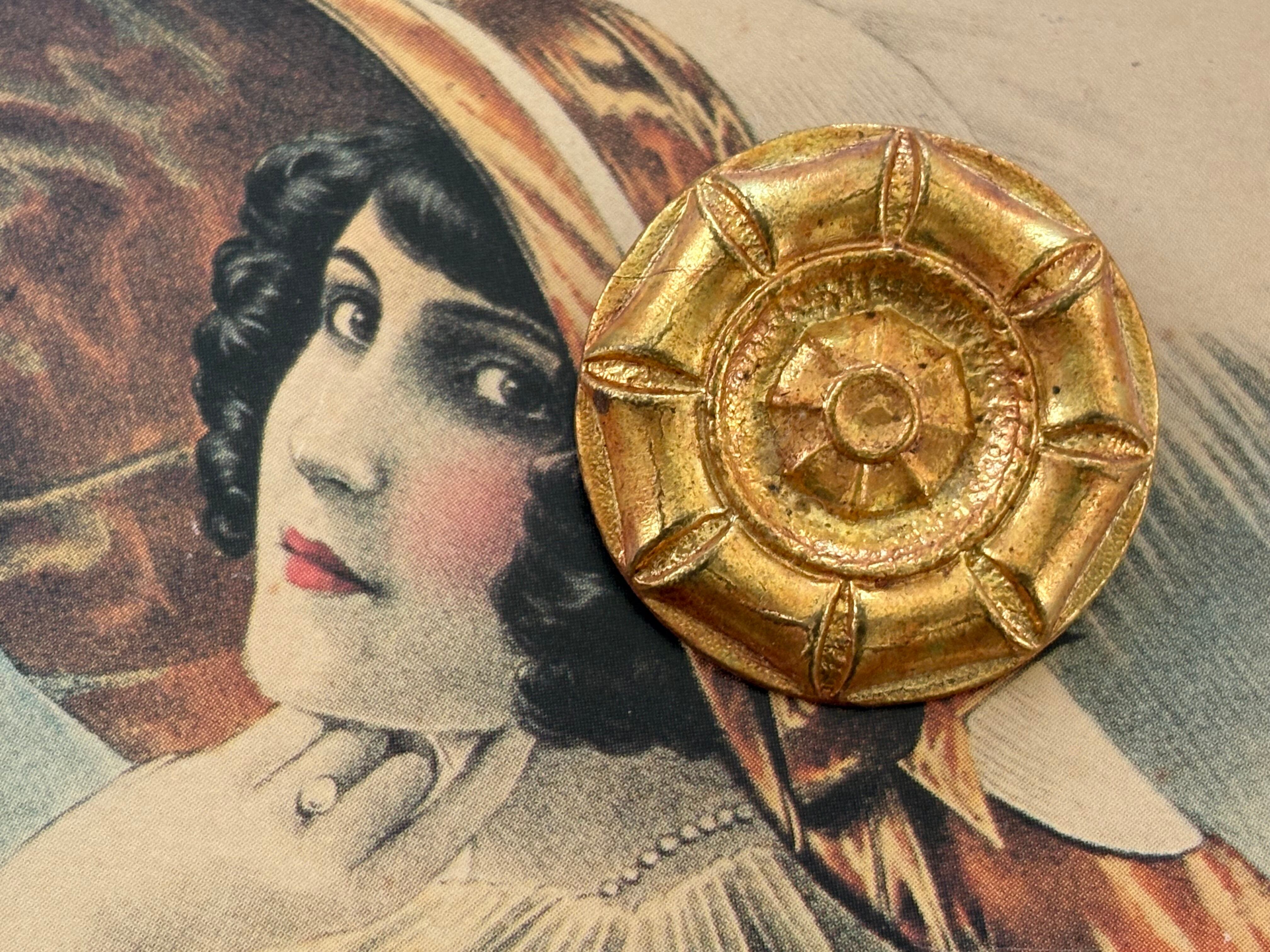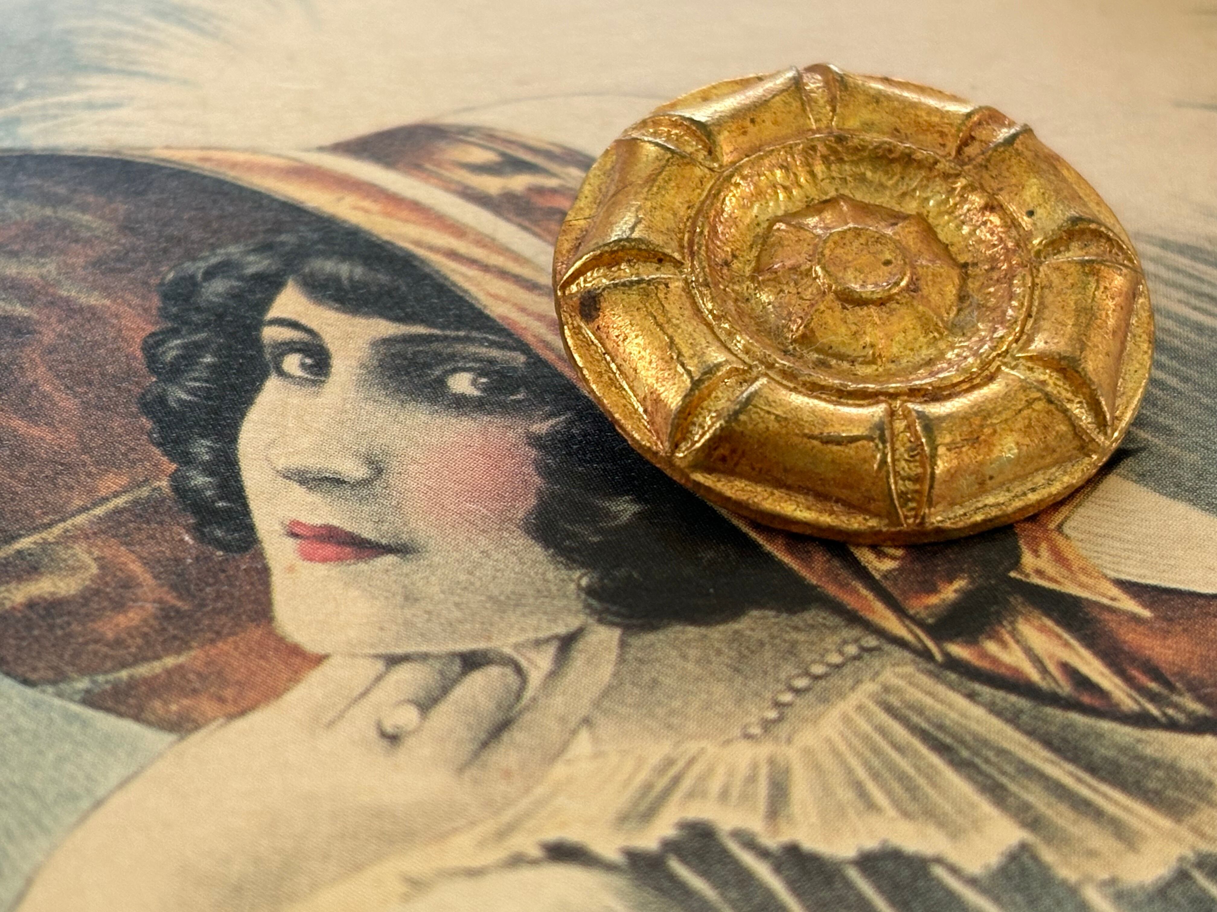 27mm フランス アンティークボタン メタル ゴールド エンボス アクセサリー デコレーション材