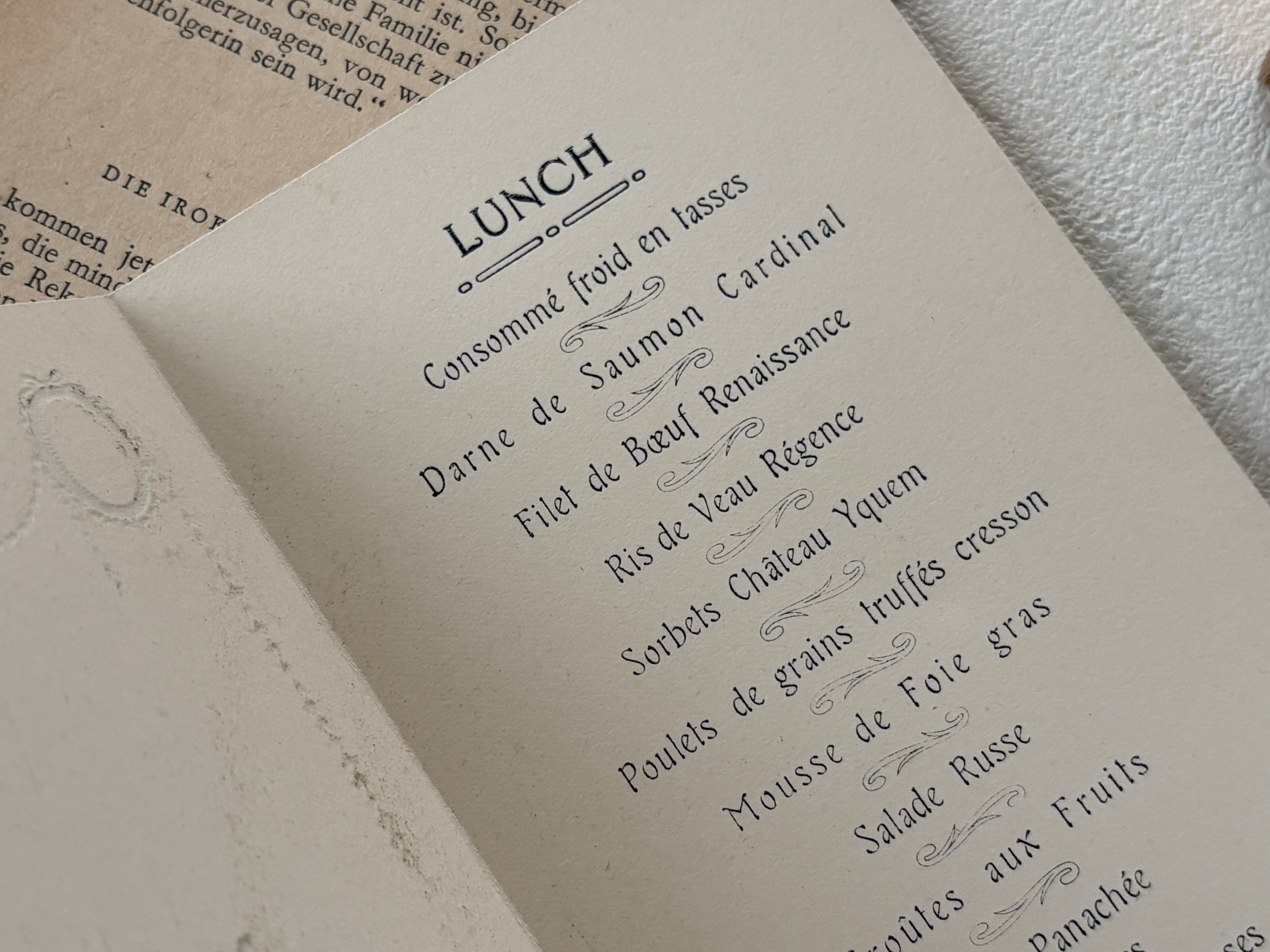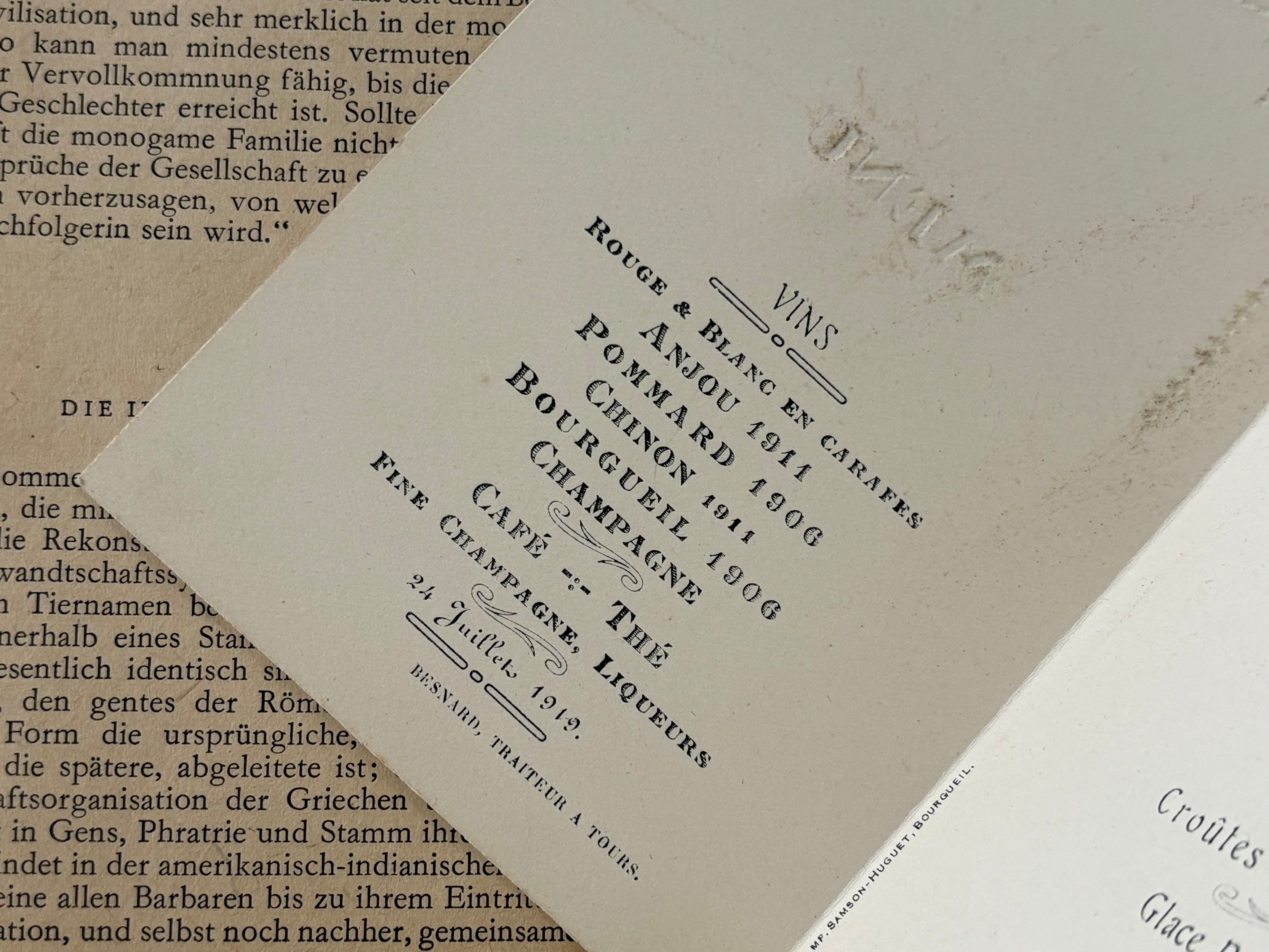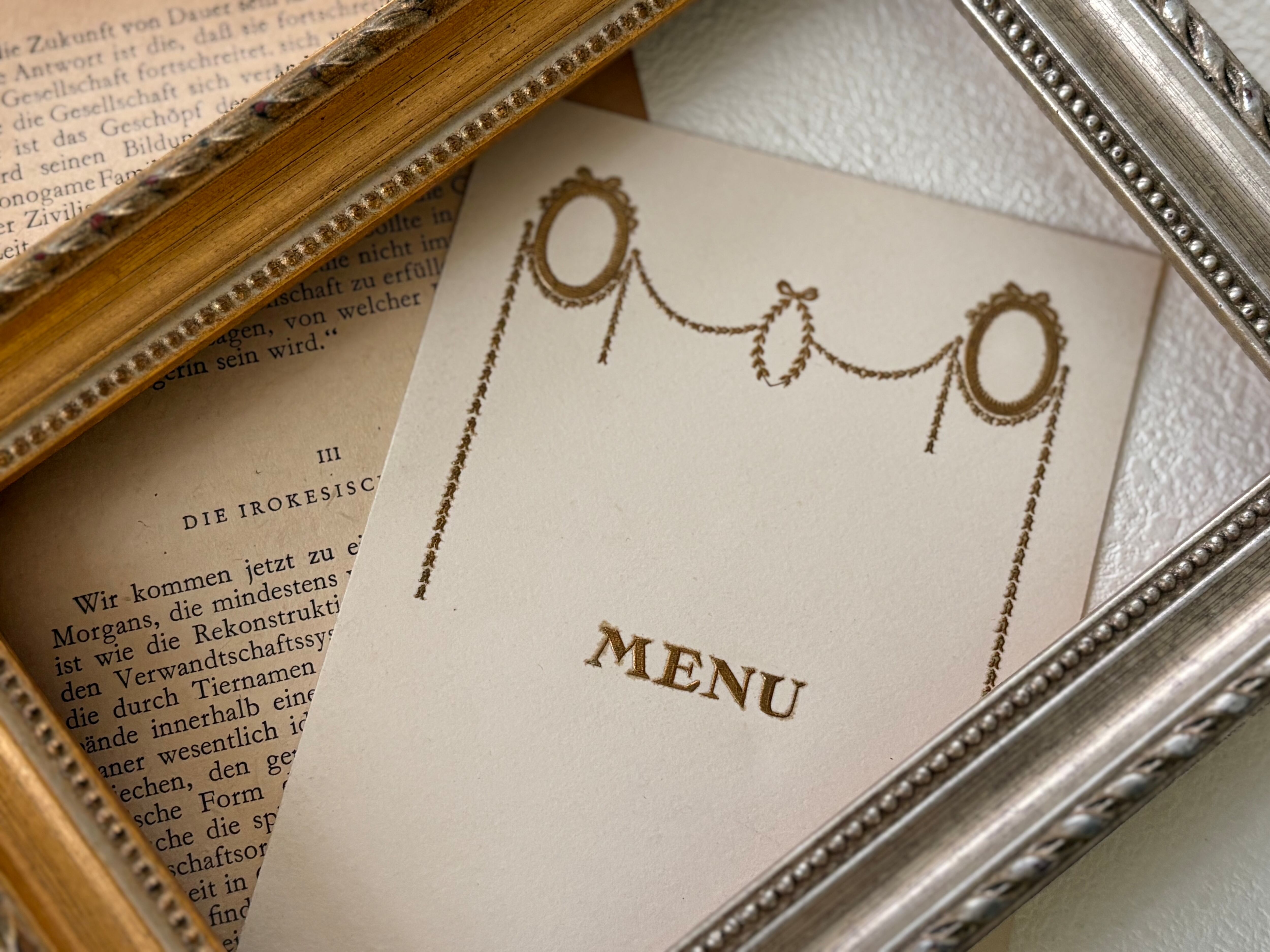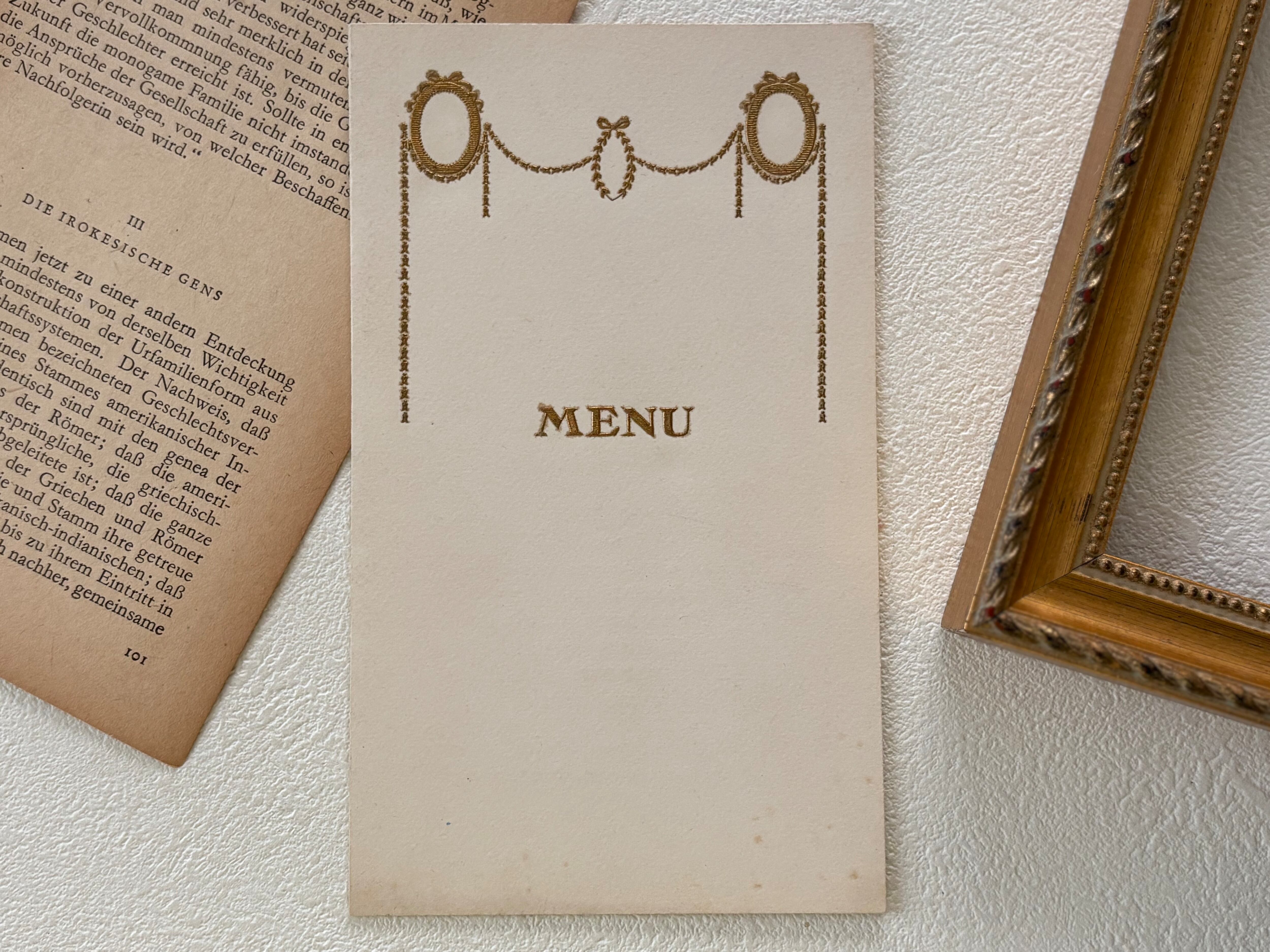 フランス アンティーク メニュー 1919年 見開きタイプ ロマンチック額装 Ruban ガーランド リボン コラージュ インテリア 見開きタイプ