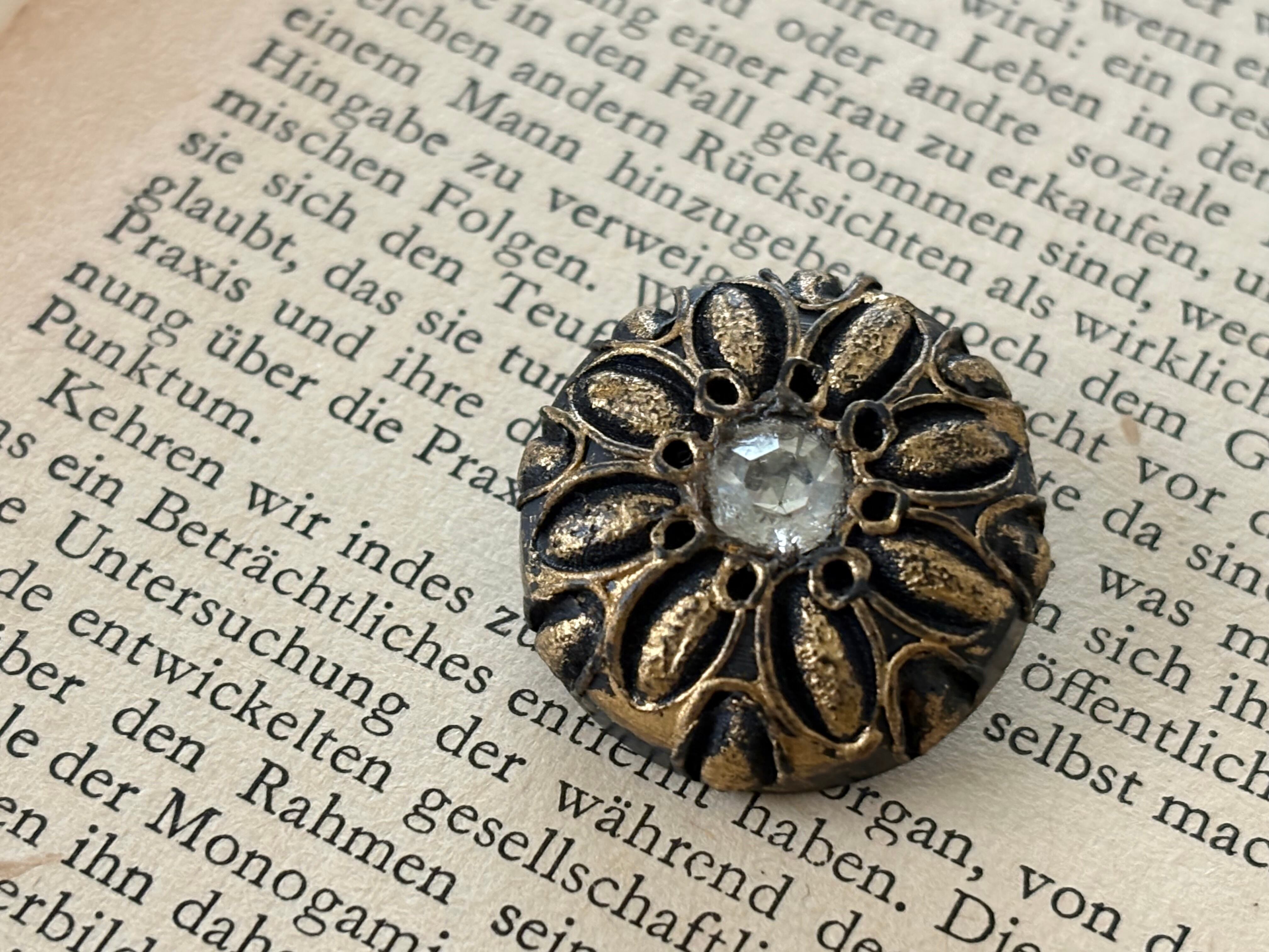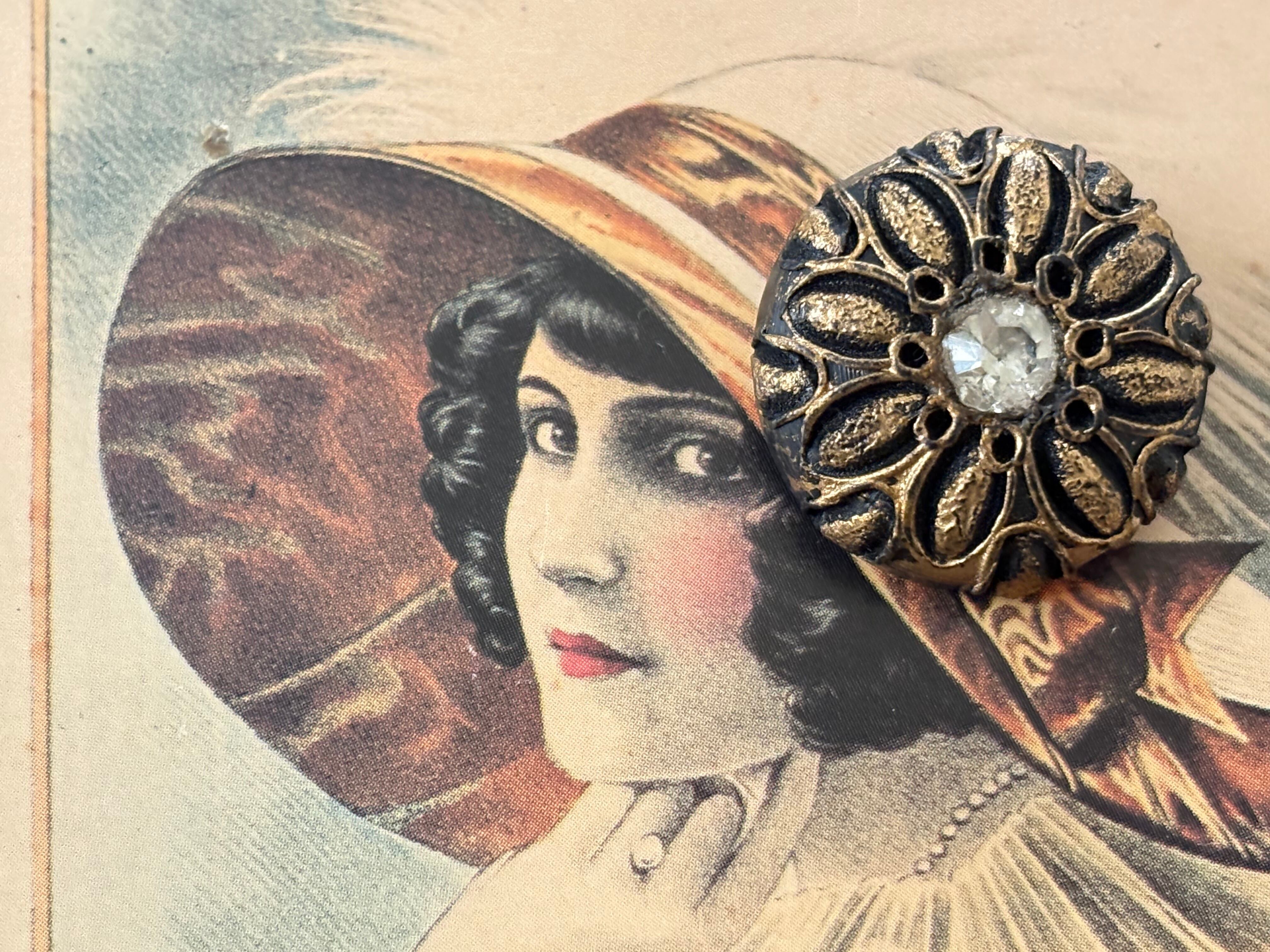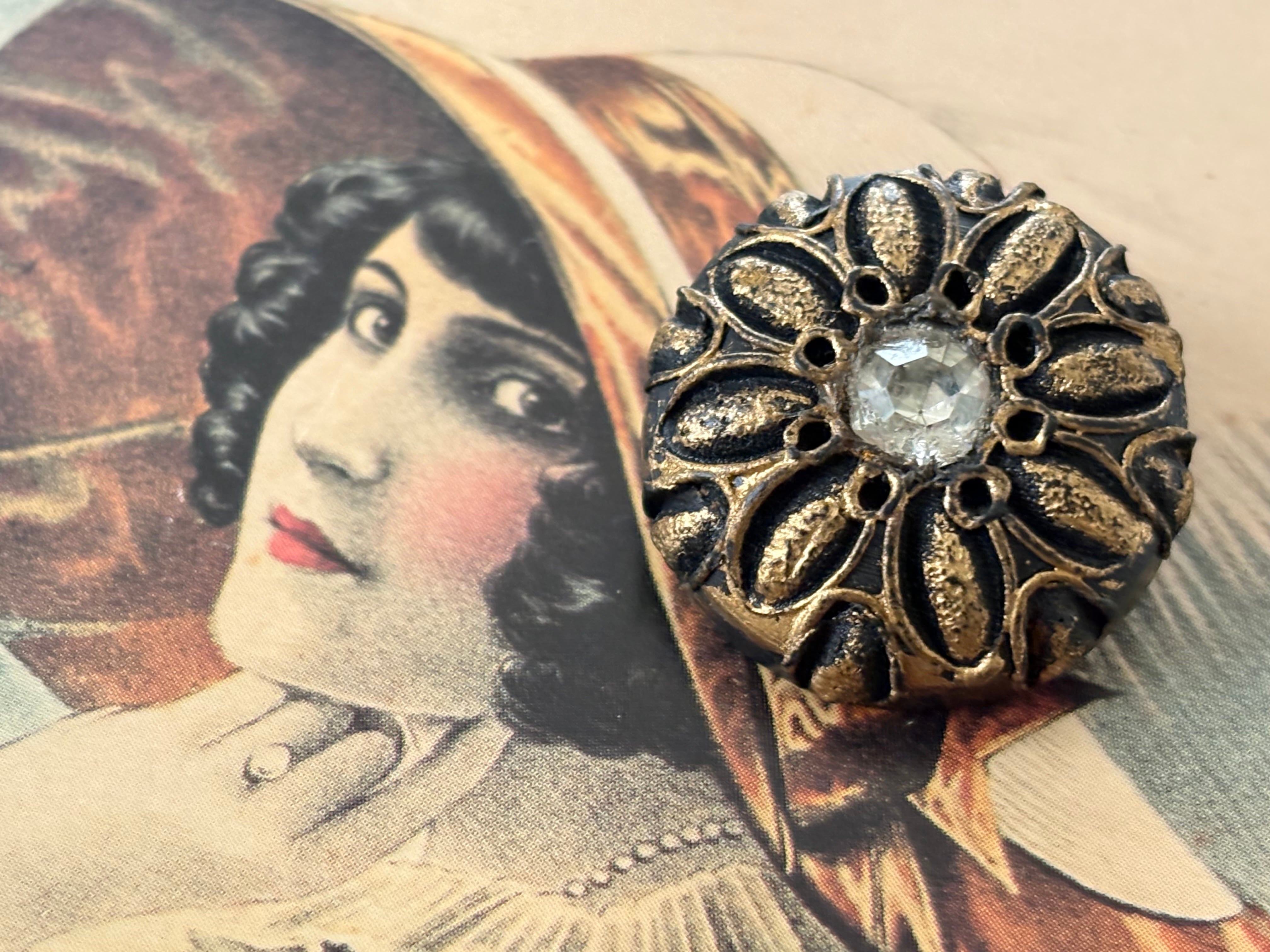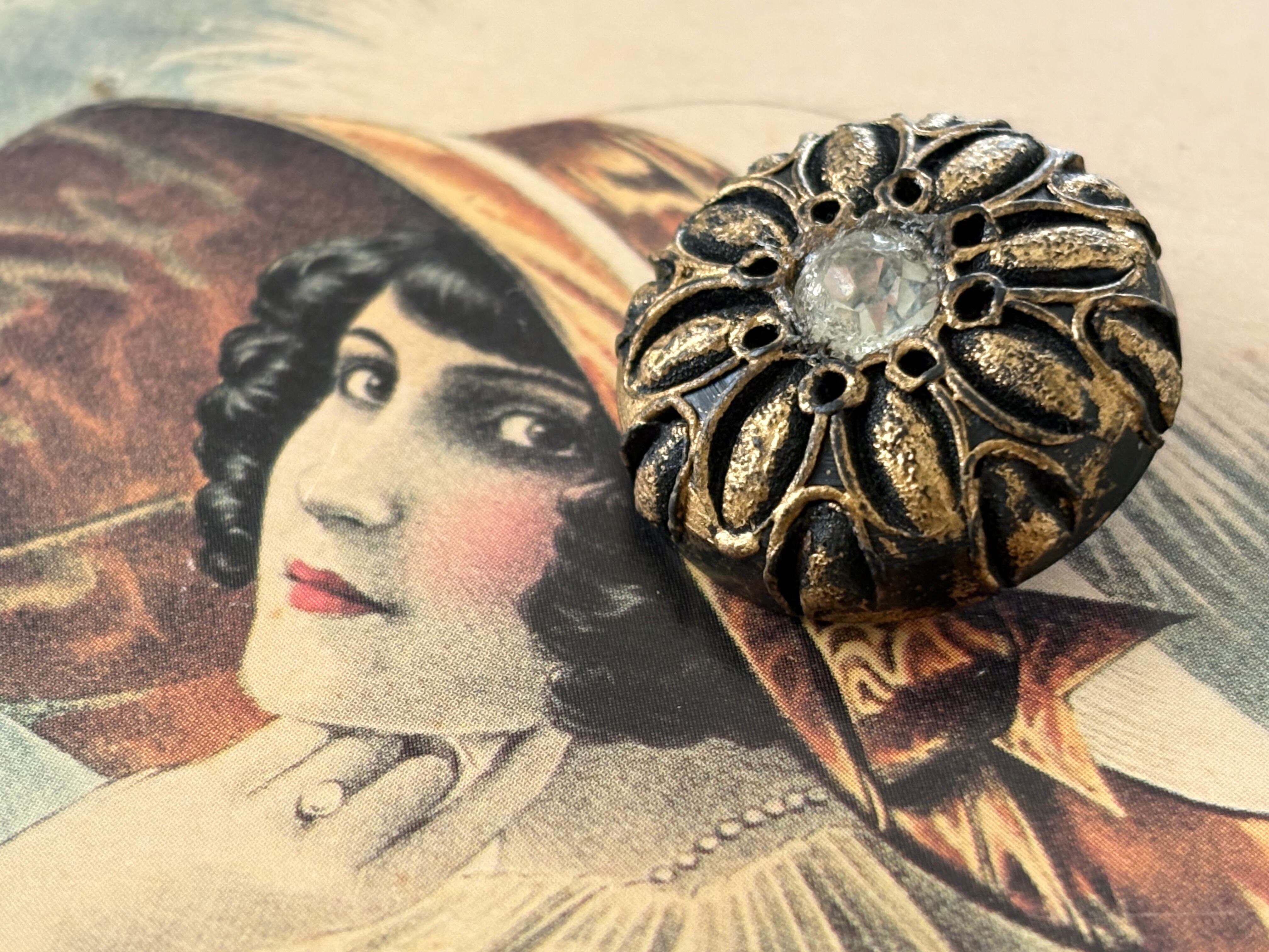 24mm Japanese ヴィンテージ ボタン ゴールド×ブラック ドーム型 ビジュー レトロ アクセサリーパーツ 装飾材