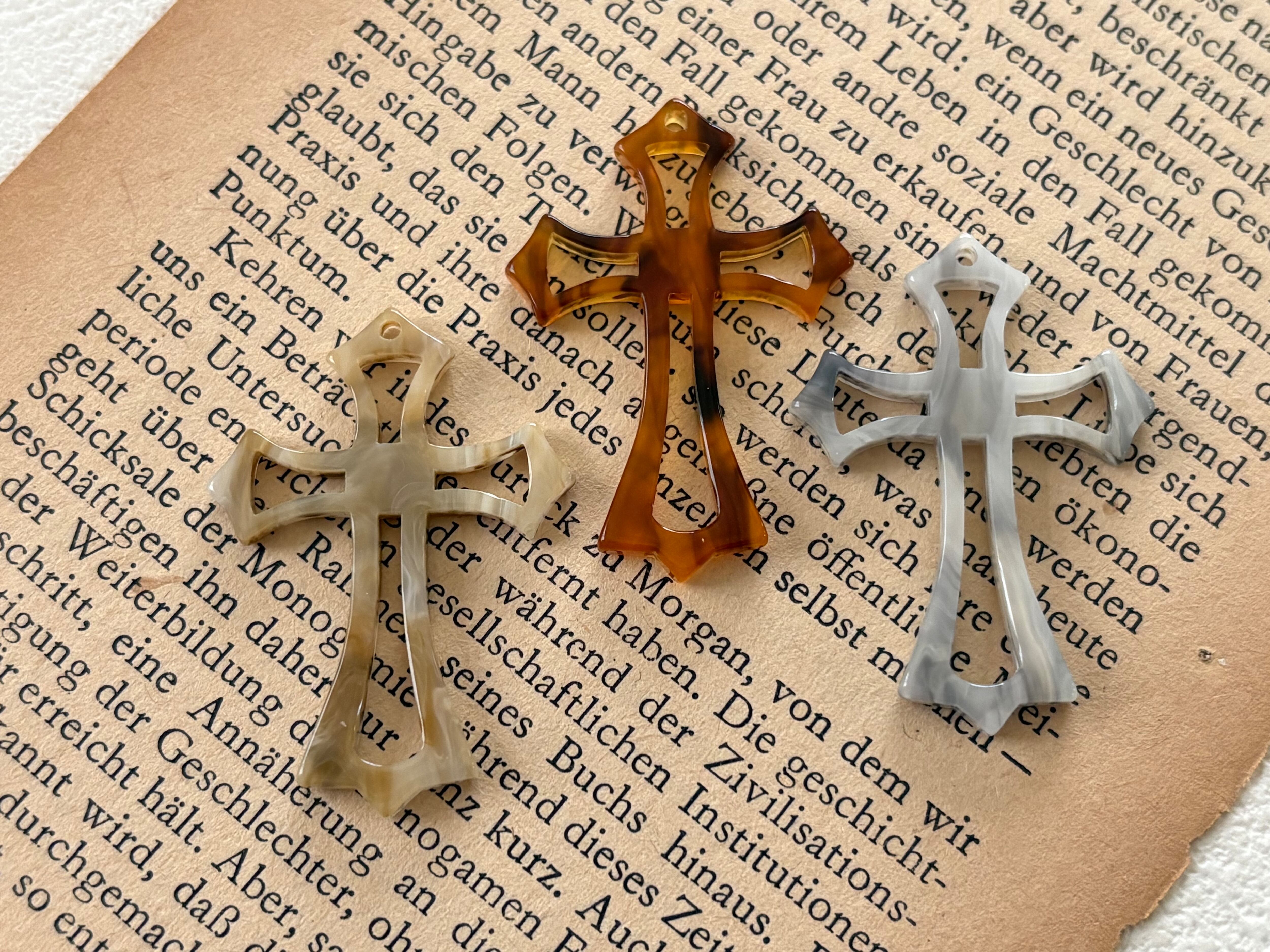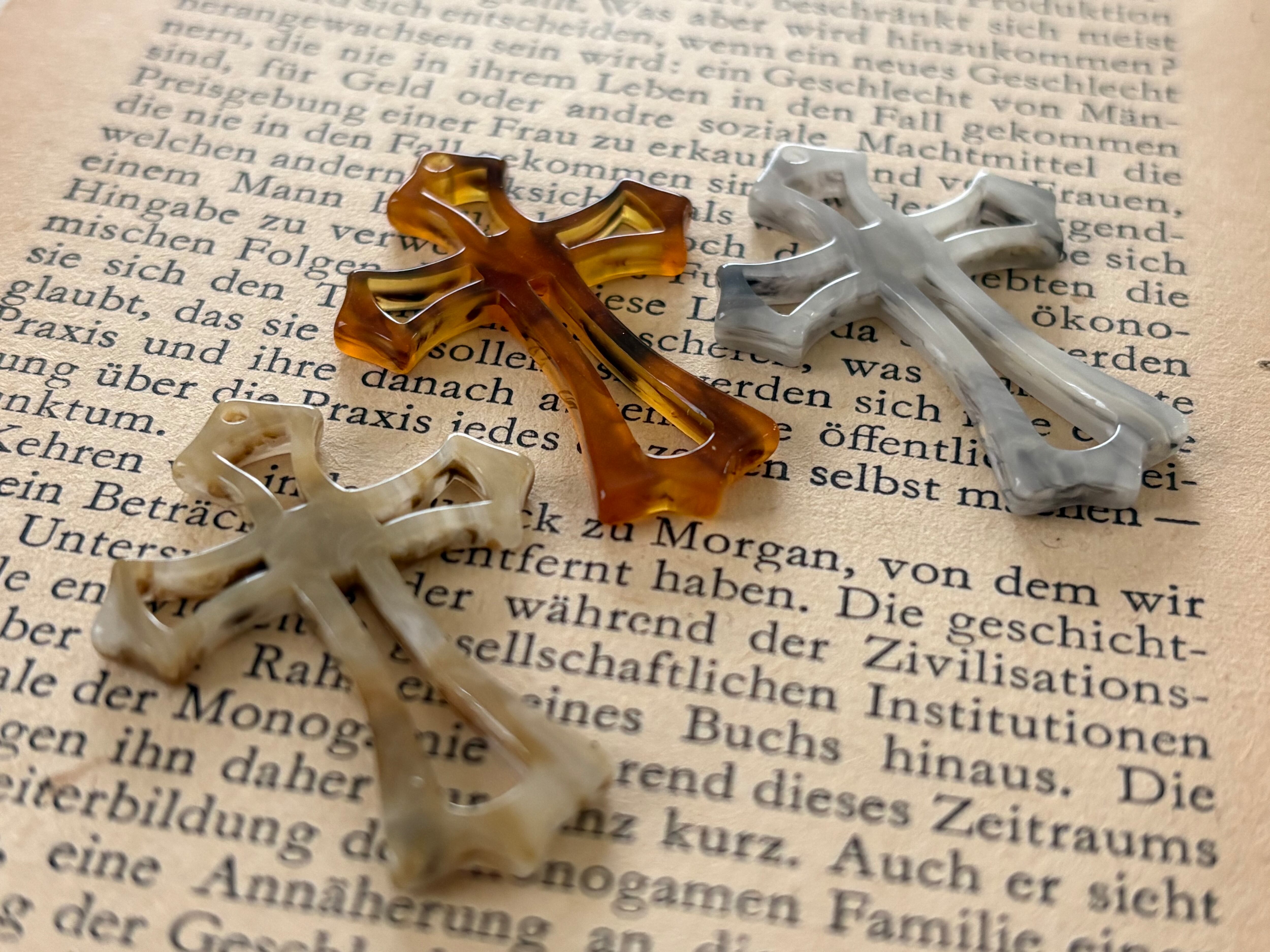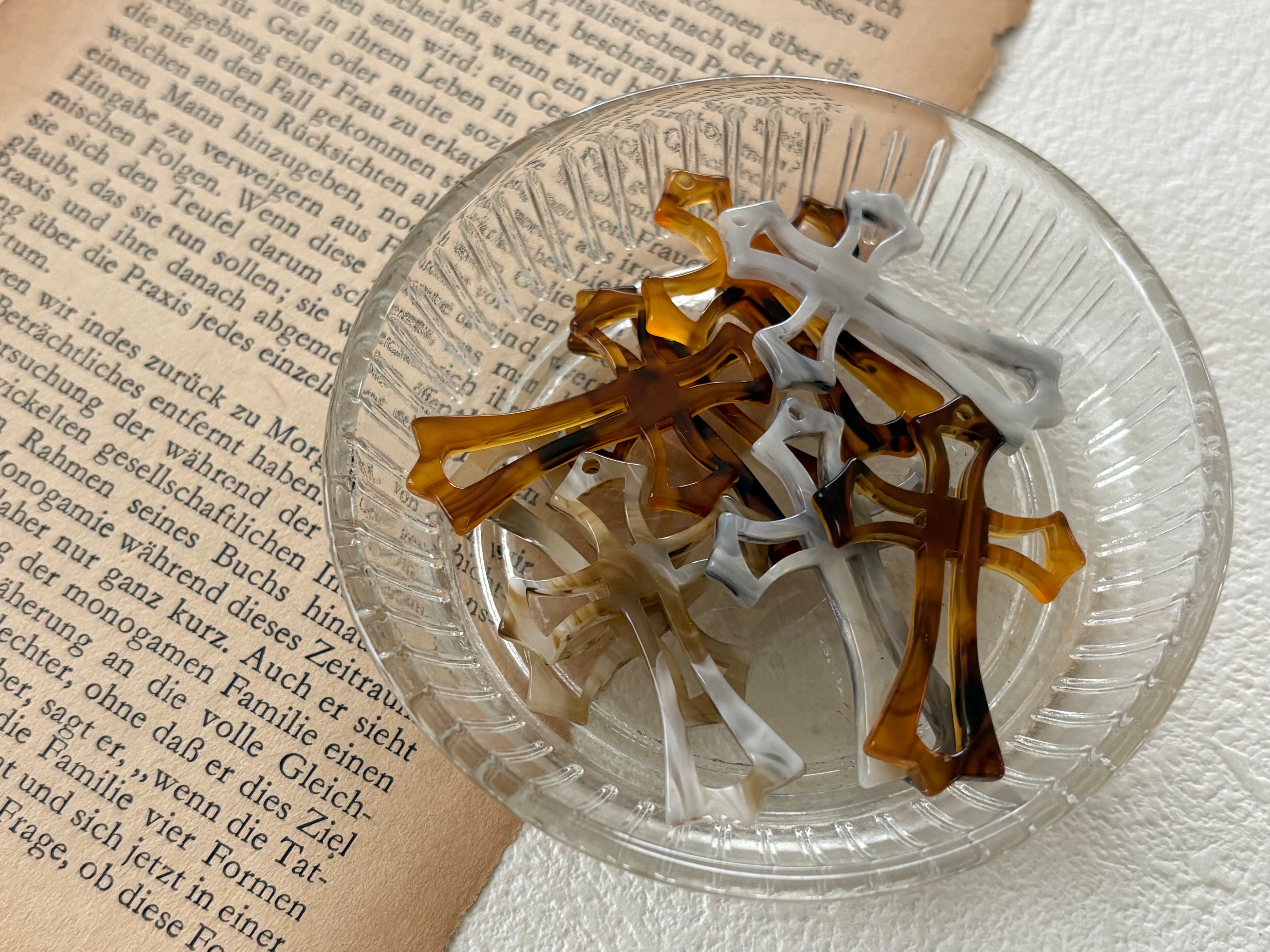 輸入デザインパーツ クロス 十字架 チャーム アクリル 透かし マーブル調 アクセサリーパーツ デコレーション材