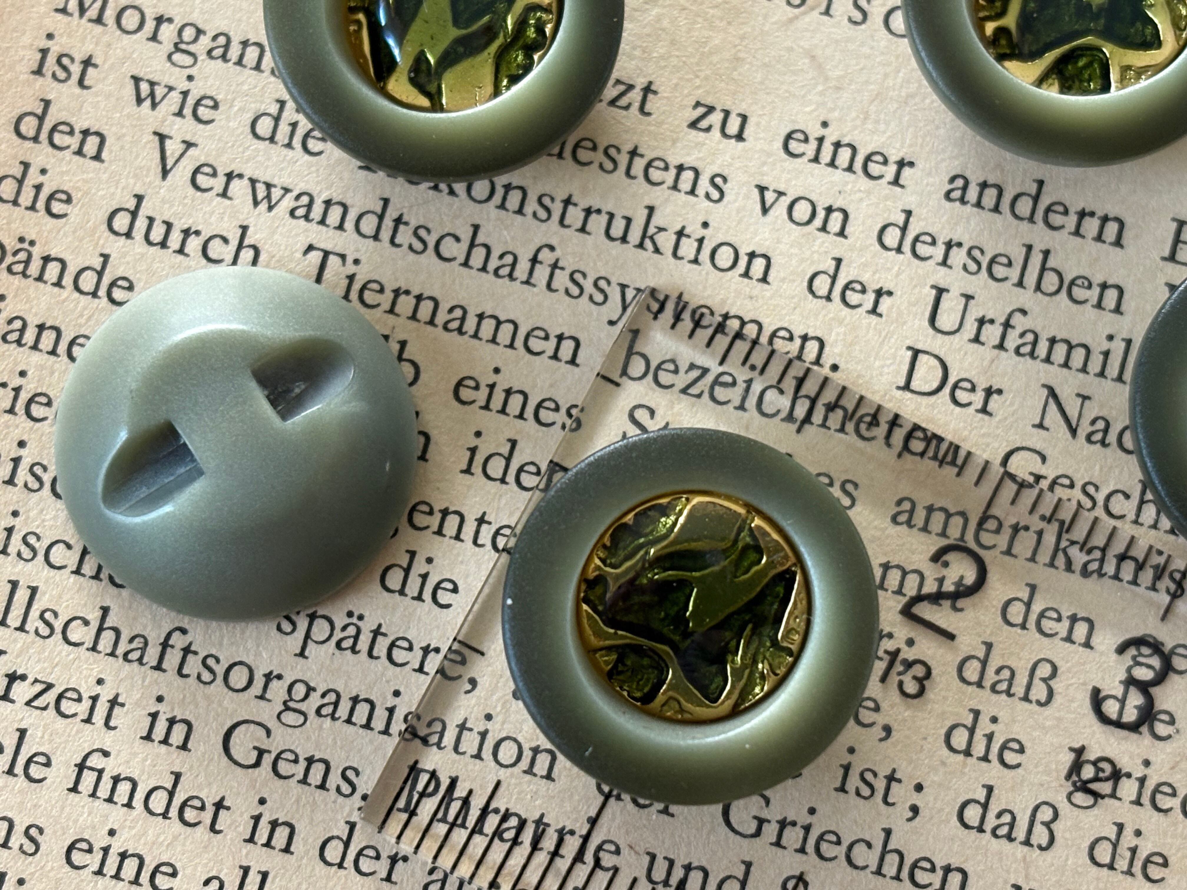 18mm Japanese Vintage ボタン カーキ×ゴールド レトロ アクセサリーパーツ 装飾材 カルトナージュ