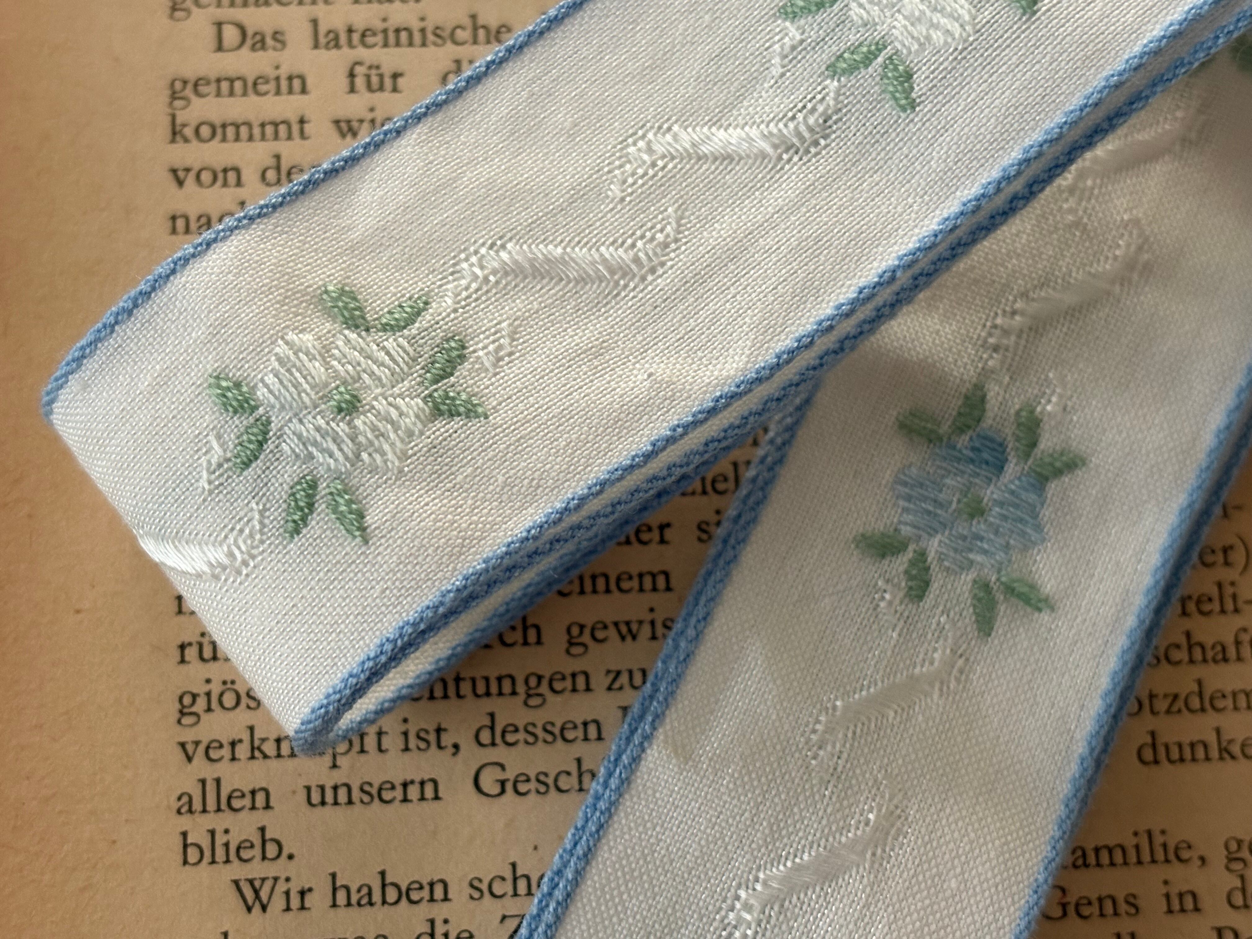 フランスVintage Ruban カットリボン 95cm ライトブルーブルーの小花 水色 幅28mm カルトナージュ デコレーション材