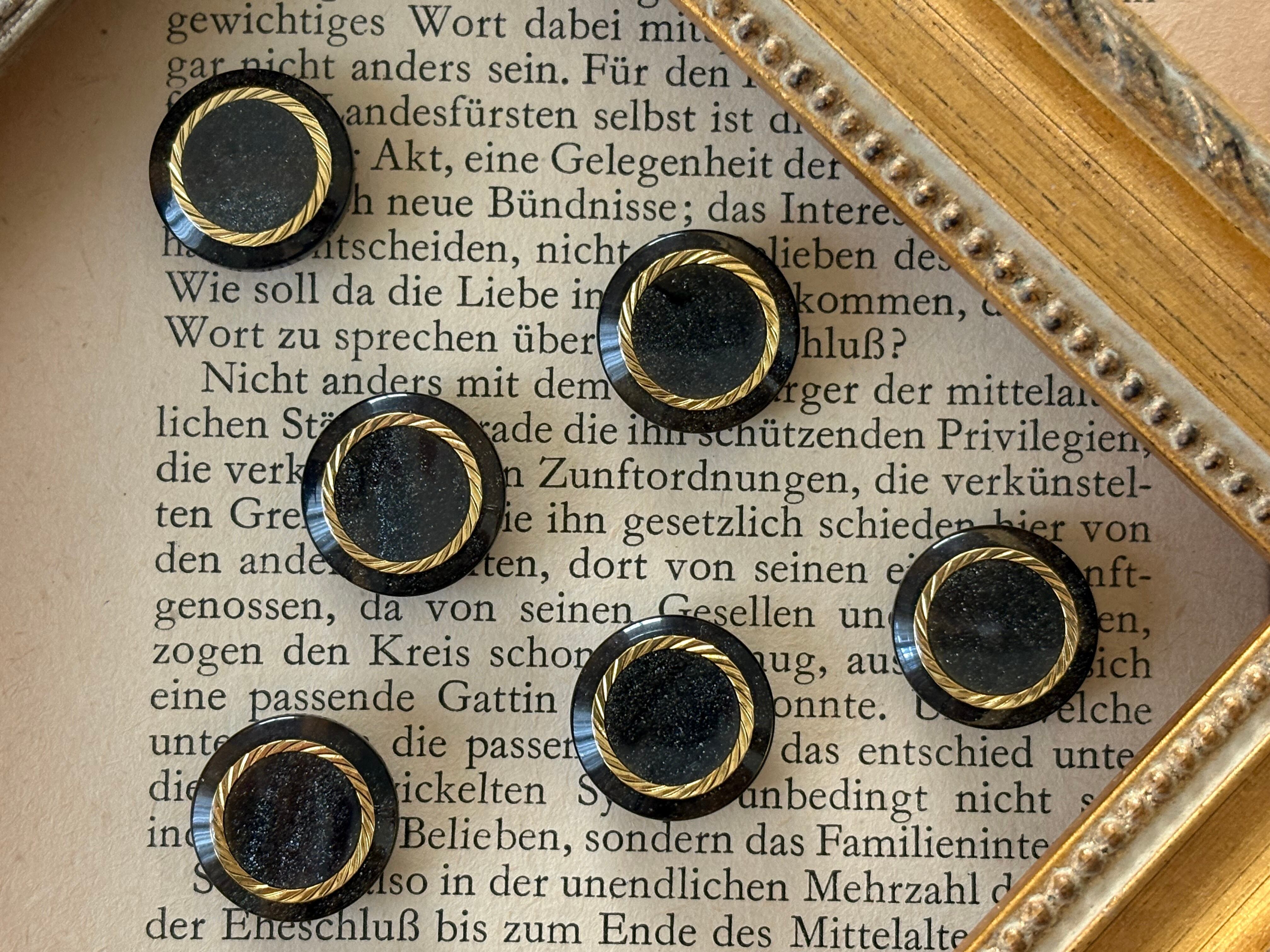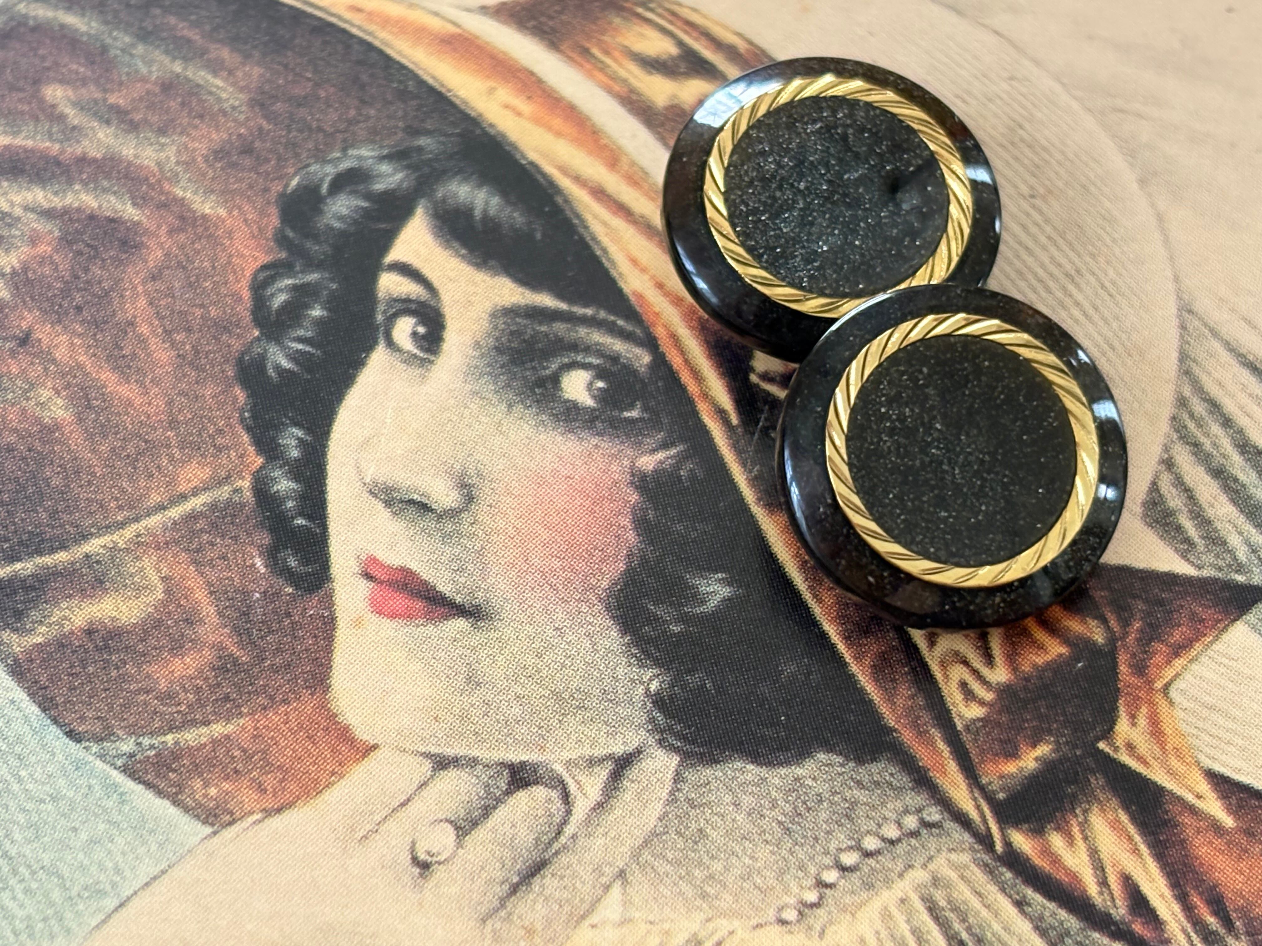 15mm Japanese Vintage ボタン パウダー調グリッター ブラック×ゴールド 昭和レトロ アクセサリーパーツ 装飾材 カルトナージュ