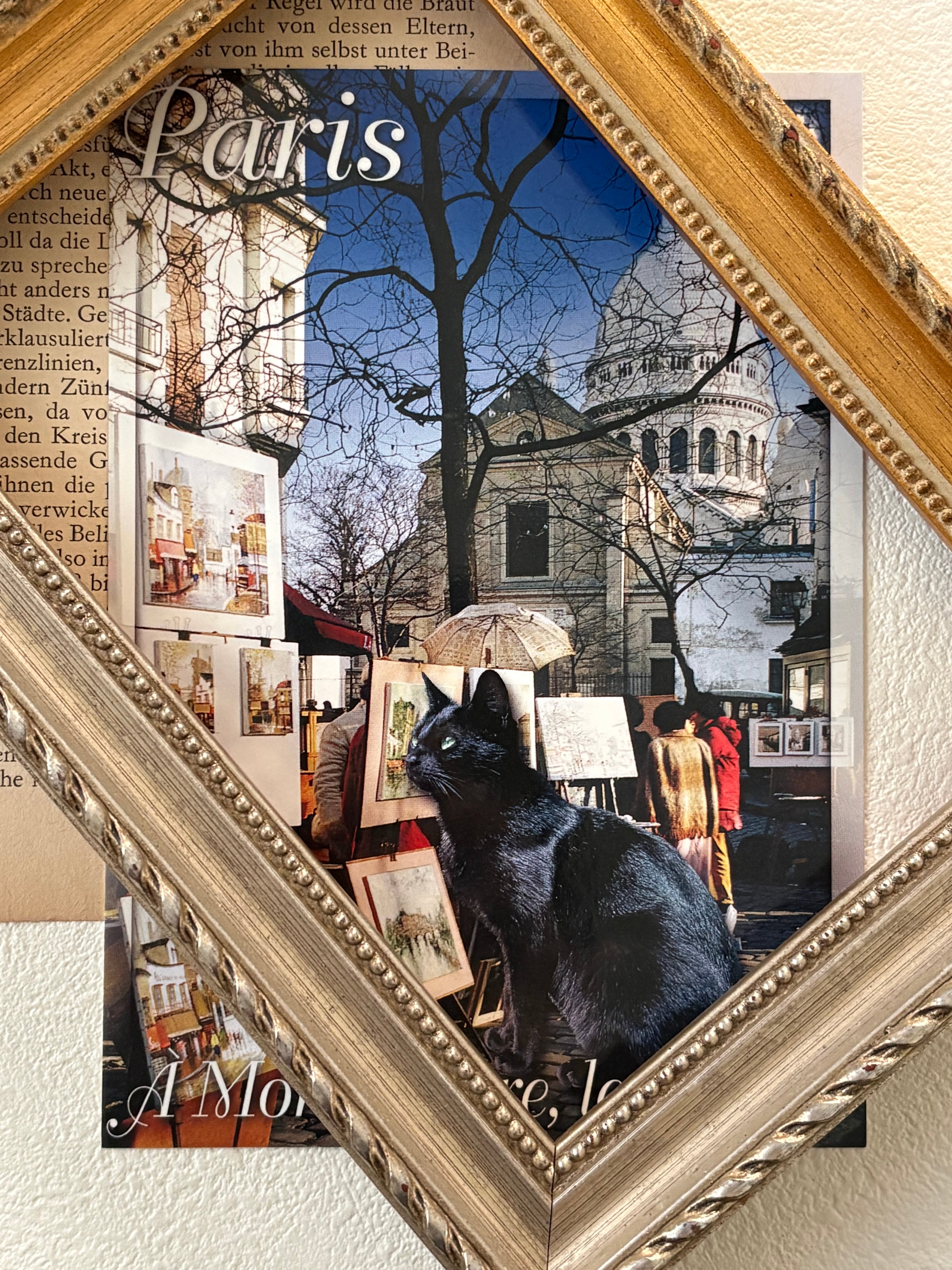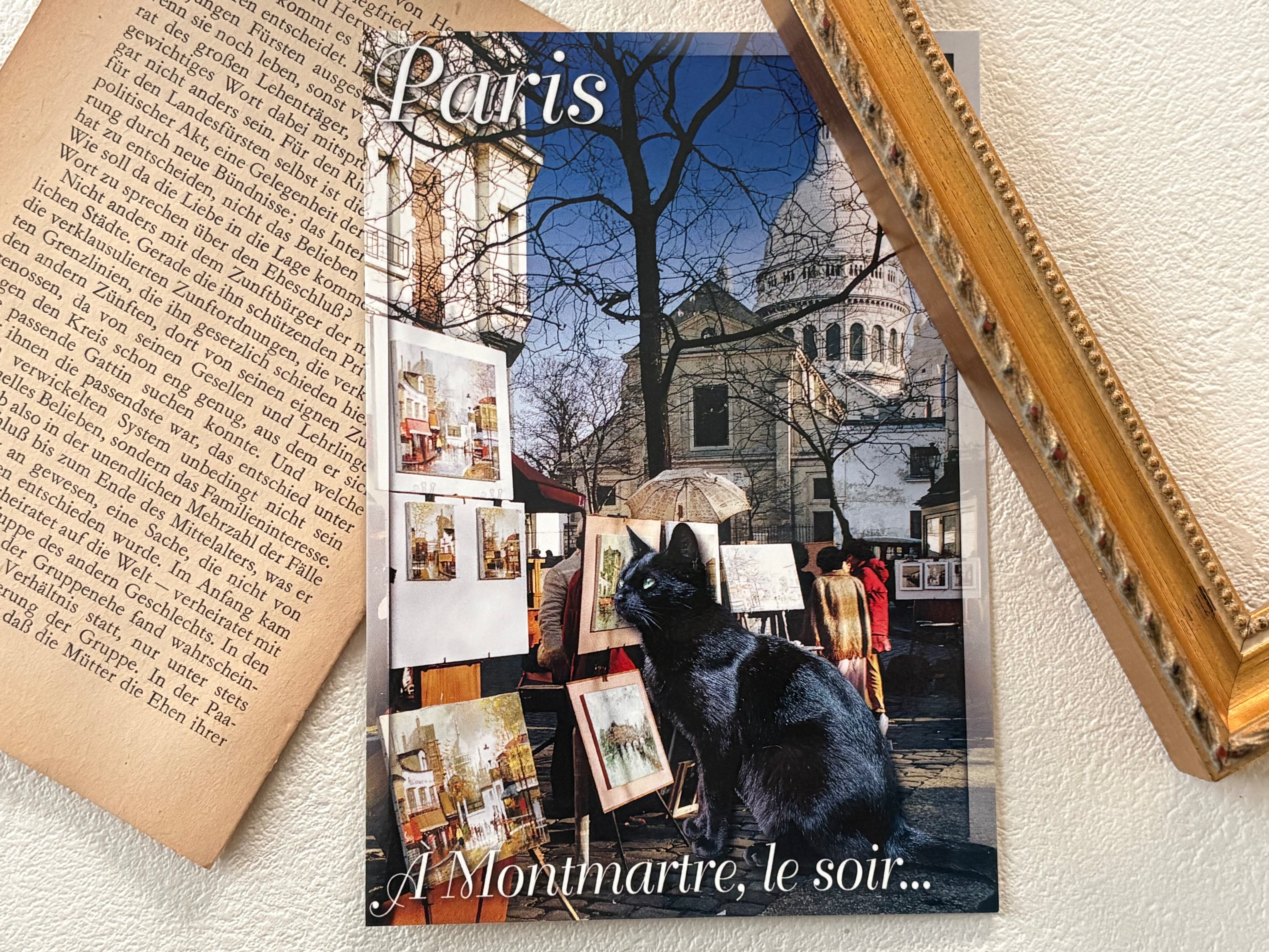 フランス雑貨 ポストカード サクレクール寺院と黒猫 モンマルトル chat 猫 Paris パリ 額装 インテリア小物 文具