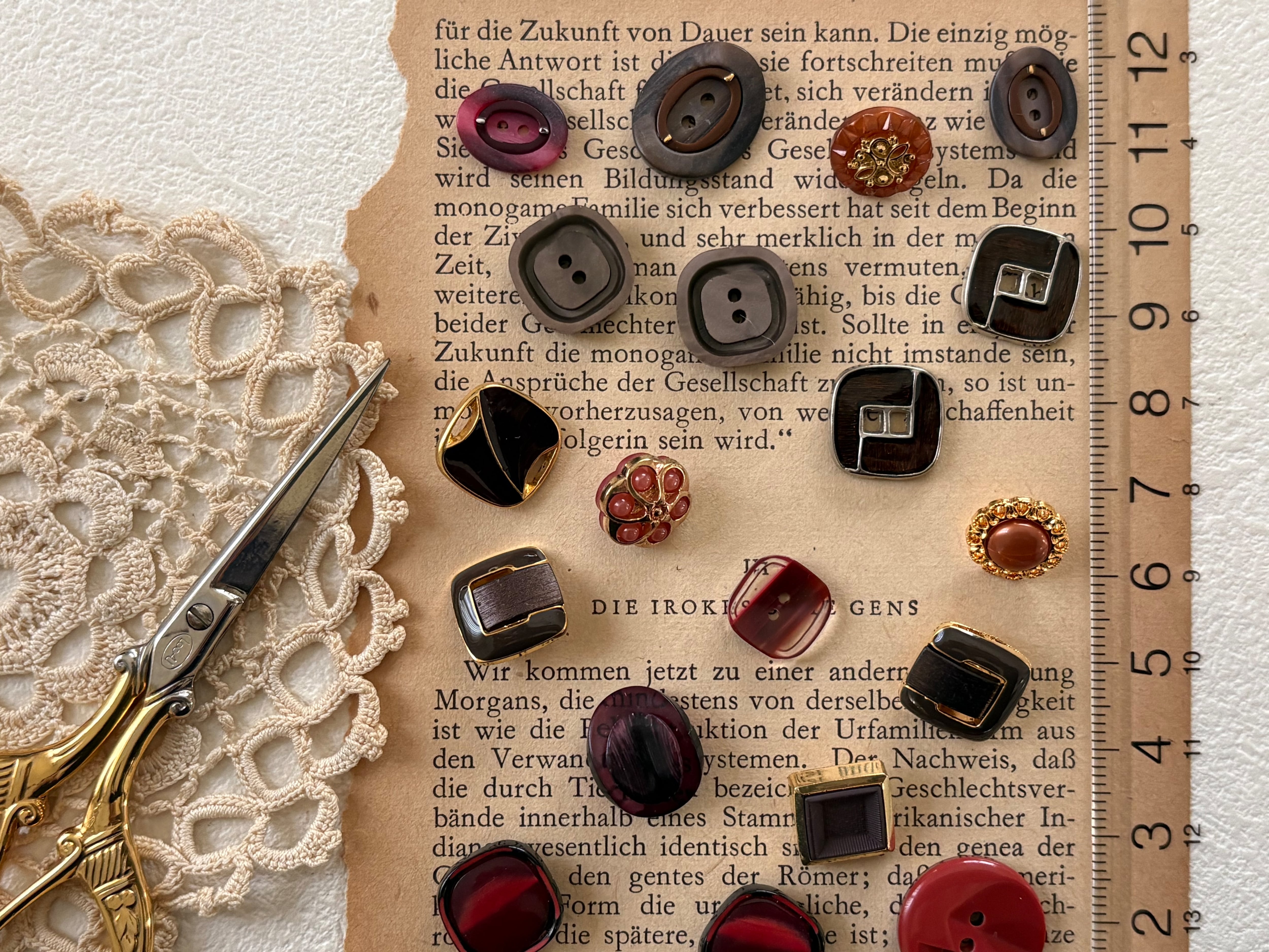 ※インポート、ヴィンテージボタンはもともとキズ、色むら、バリ、サイズの不揃い、多少の汚れなどが見られる場合があります。