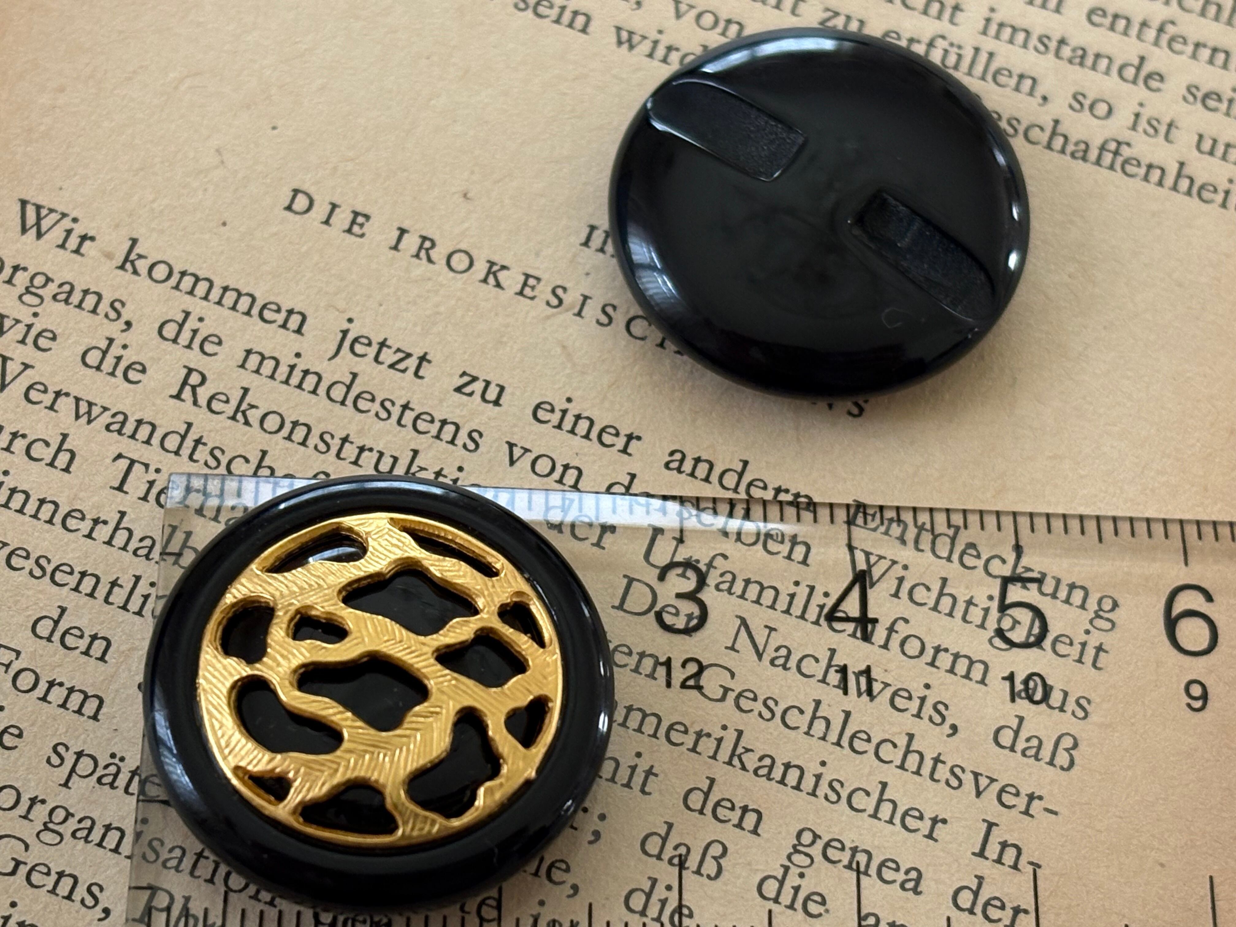 25mm Japanese ヴィンテージボタン メタル×プラスチック 透かし ブラック×ゴールド アクセサリーパーツ 装飾材