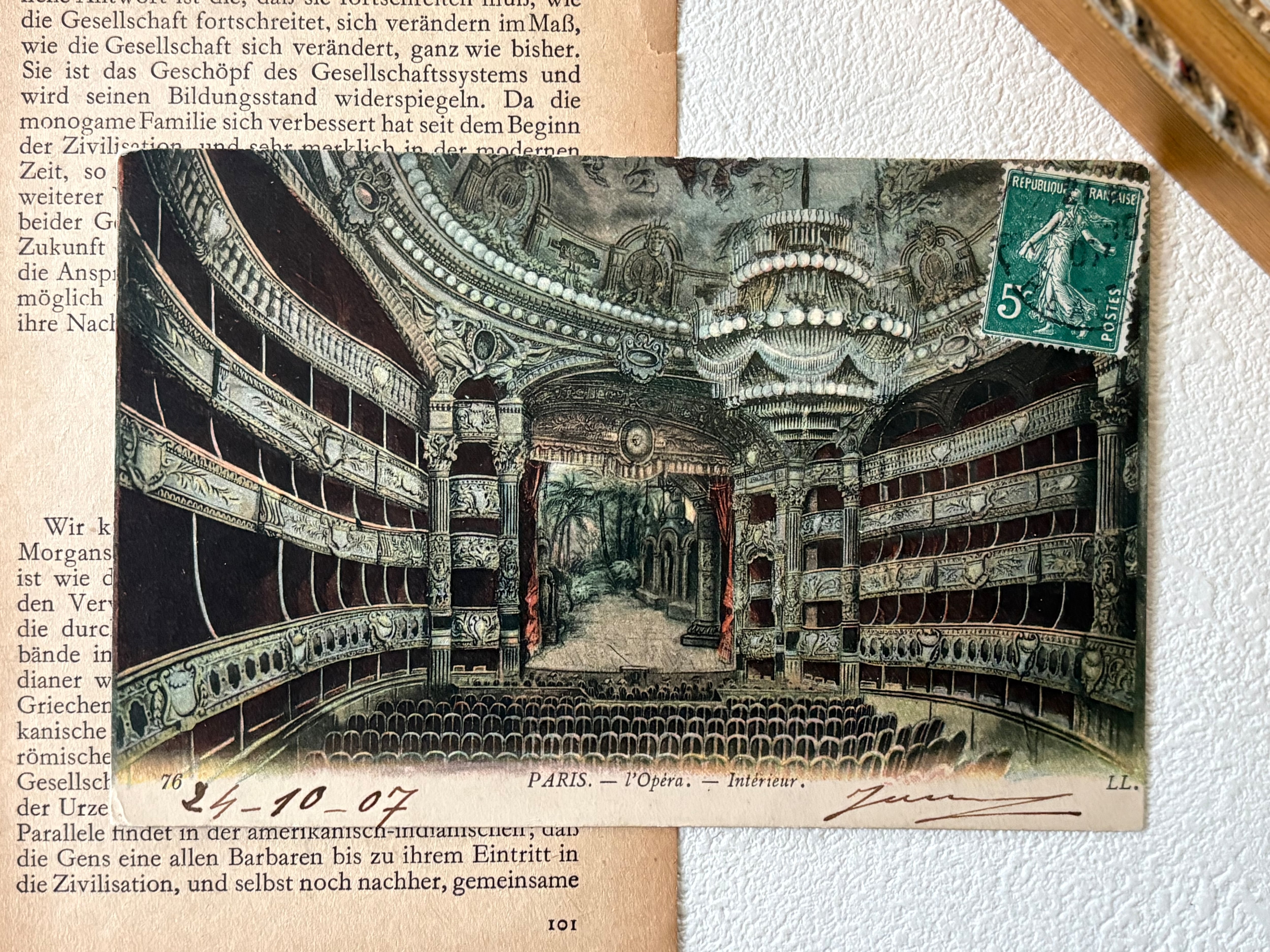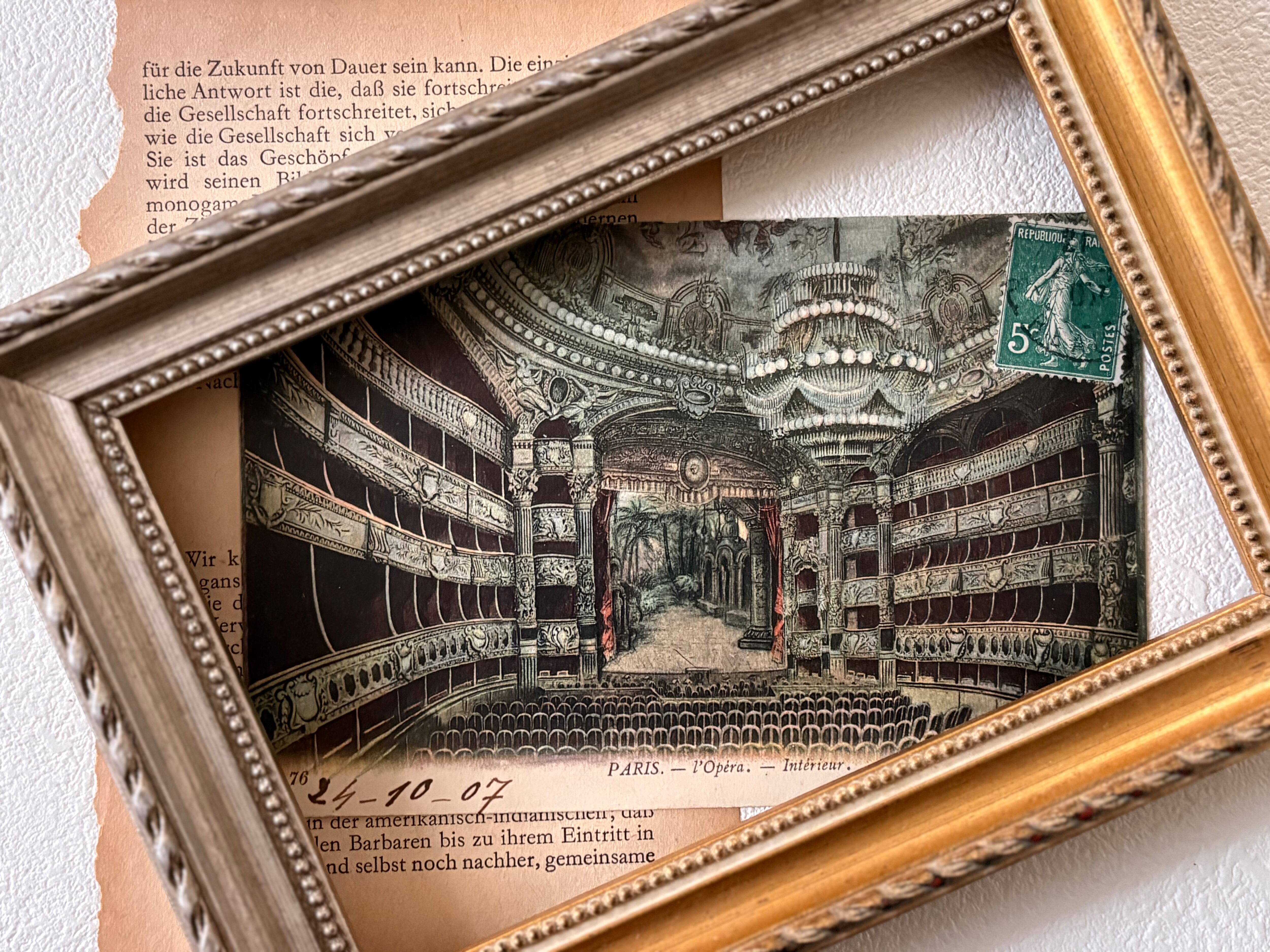 フランスアンティークカード Opela オペラ座 パリオペラ座 1907年 劇場 風景 建造物 額装 インテリア小物