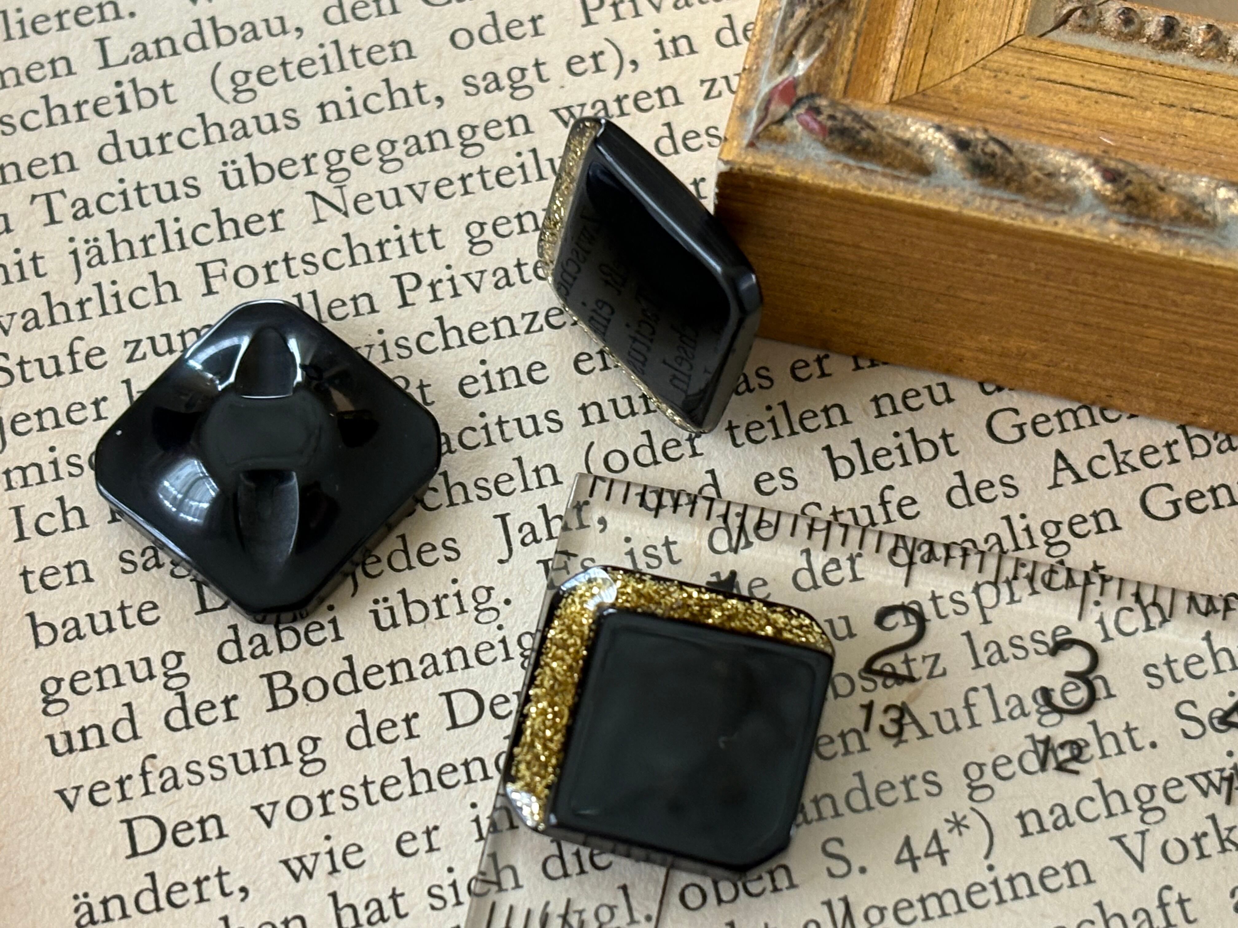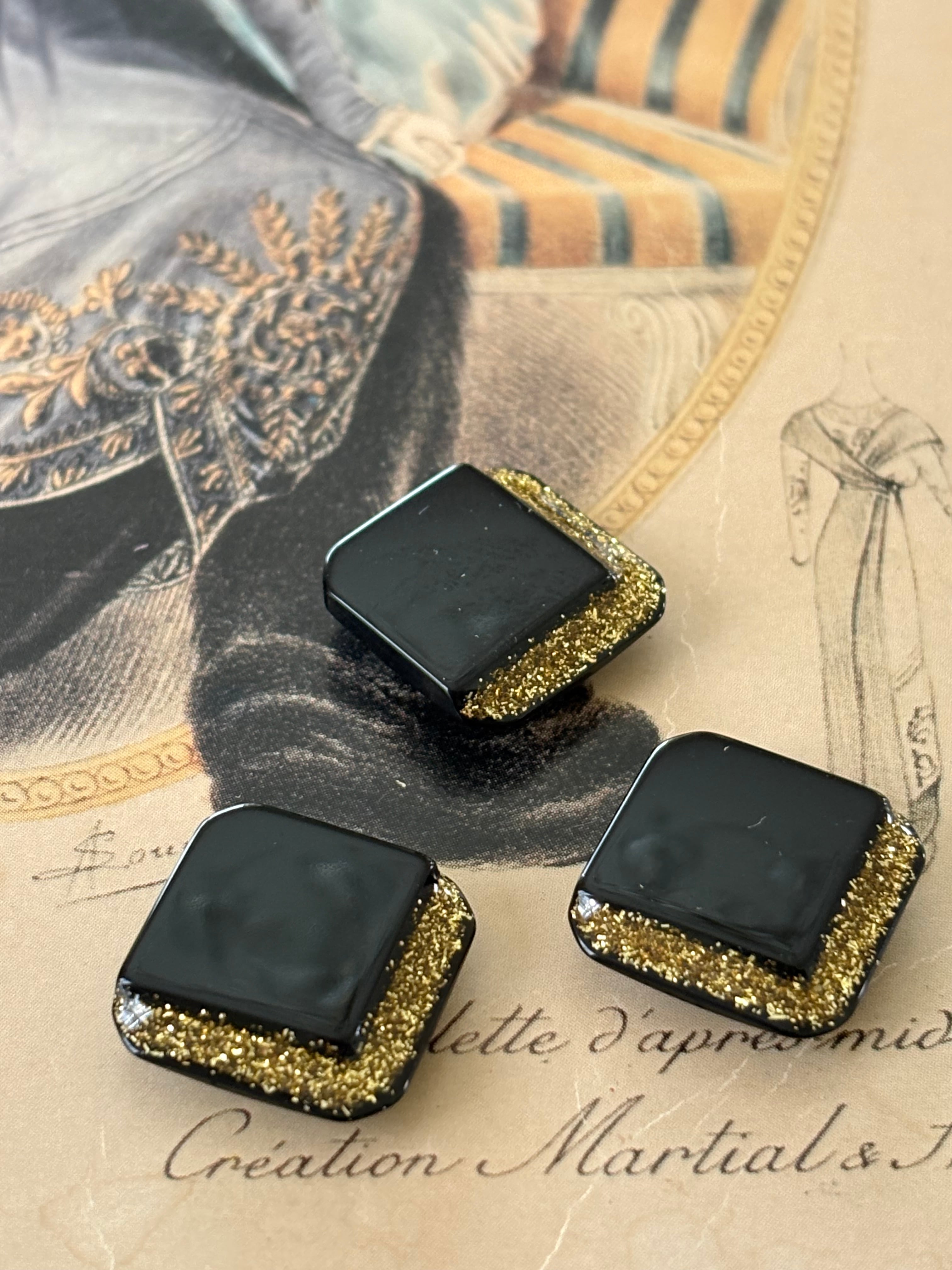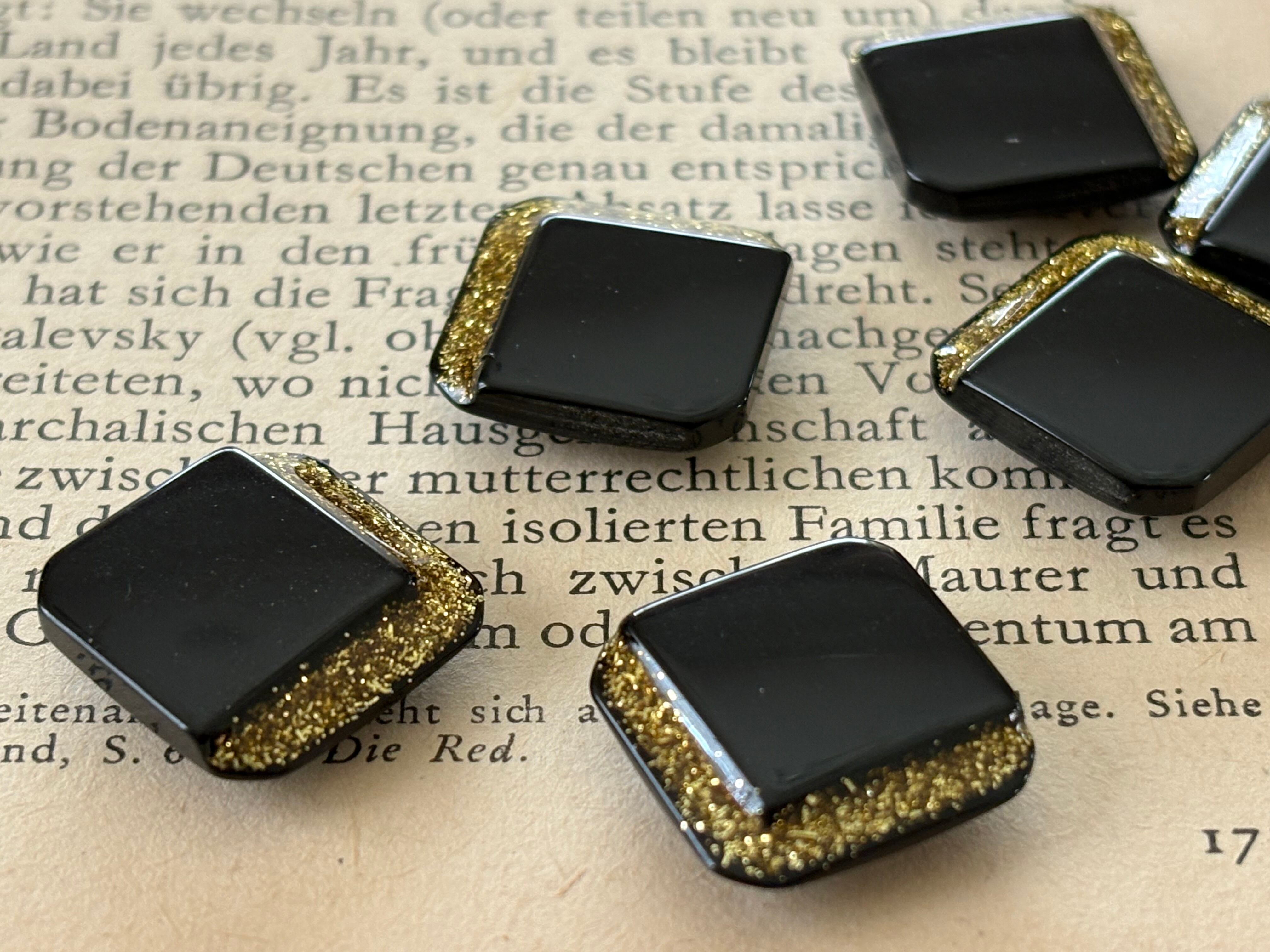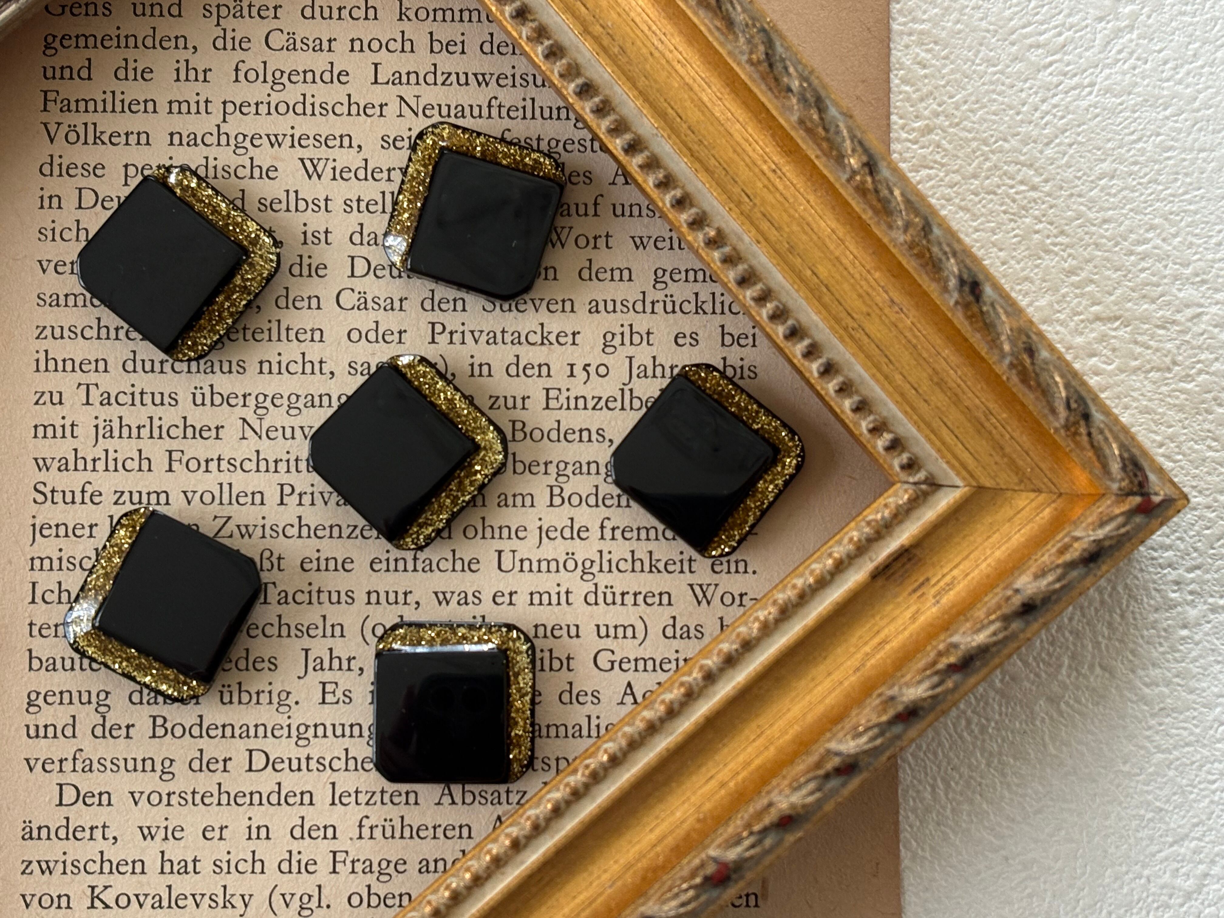 16mm Japanese ヴィンテージボタン ブラック×ゴールド グリッター スクウェア アクセサリーパーツ 装飾材 カルトナージュ